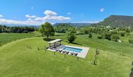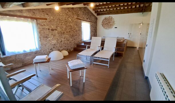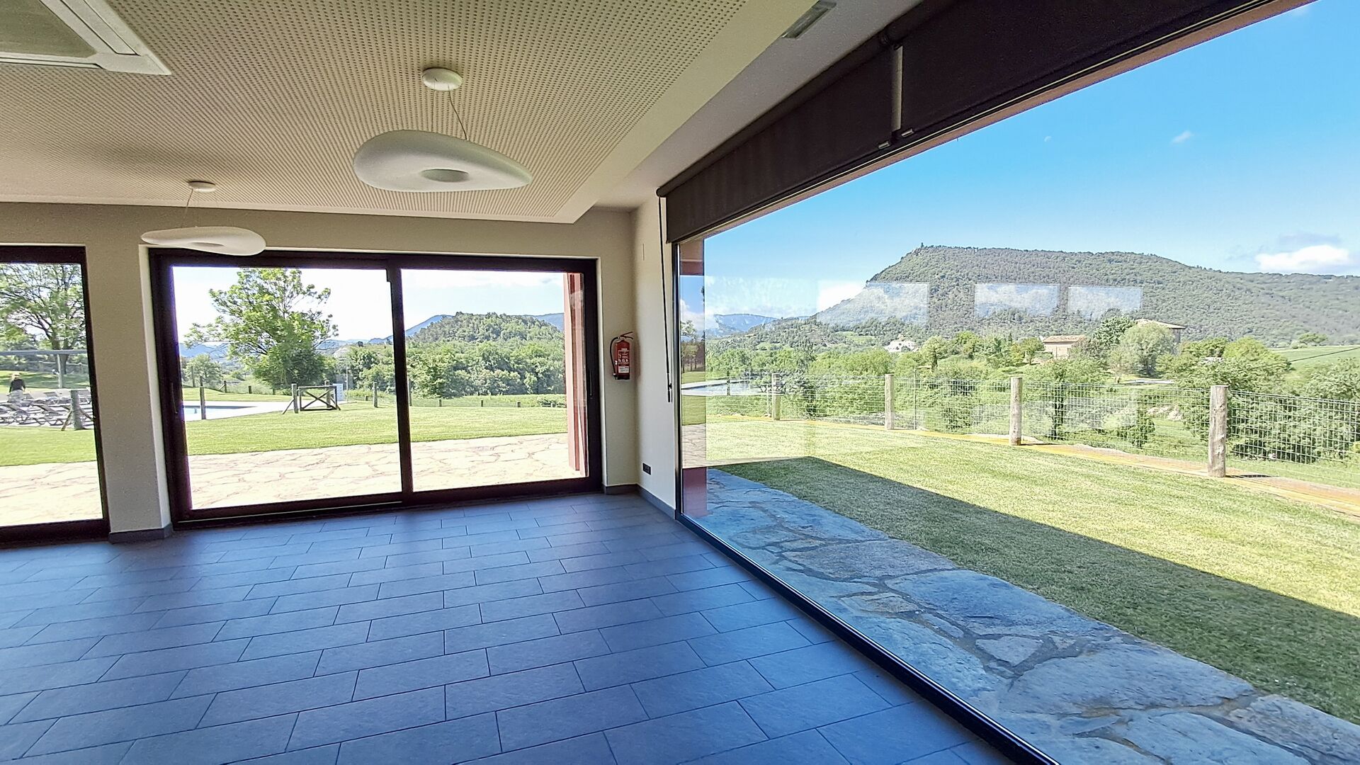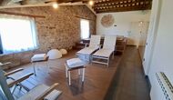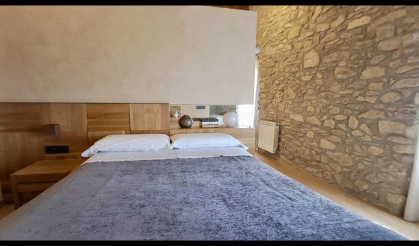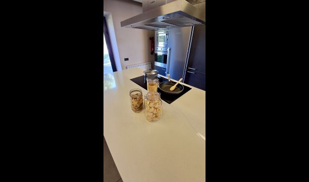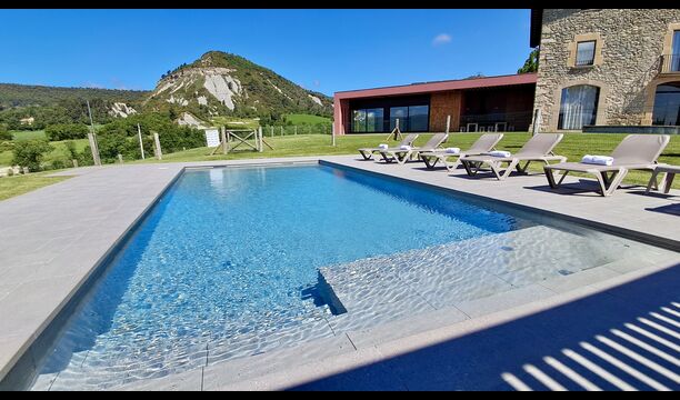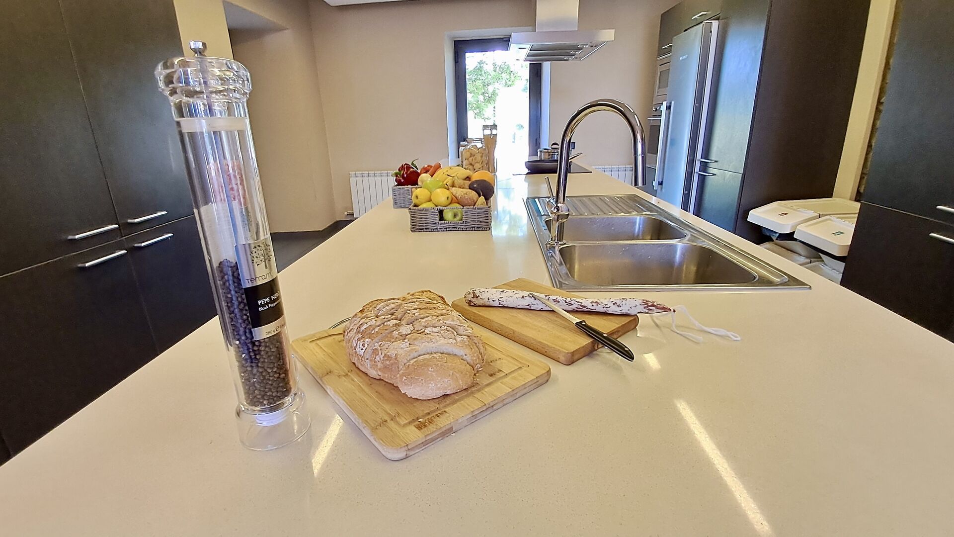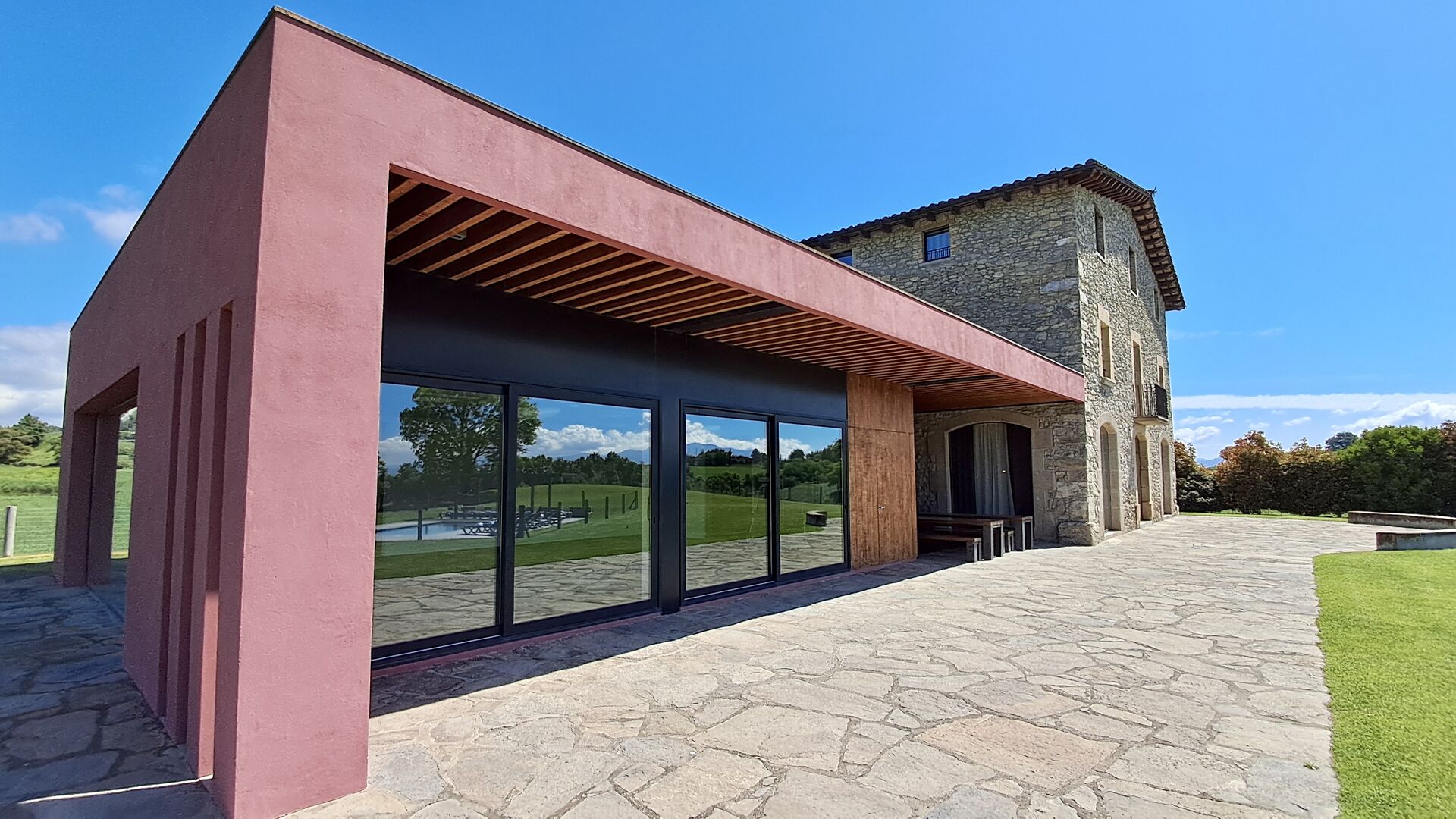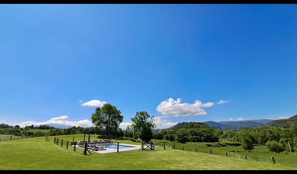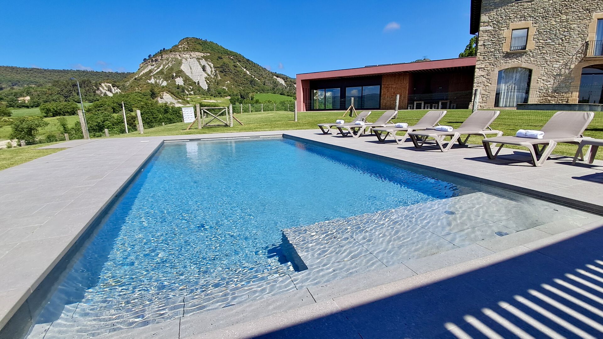 Els 2000 m2 de jardí que la rodegen tenen la seva pròpia piscina privada amb hamaques. A més a més, també te una terrassa coberta amb BBQ, una pica i aigua, on pots gaudir de les càlides i encantadores tardes. La cuina, que està situada amb un accés fàcil a la terrassa, té totes les facilitats modernes que un pot necessitar – cafetera nespresso, forn, microones, dues neveres i una preciosa taula llarga a l’estil tradicional. En resum, aquesta casa rural és la perfecte pels convidats, que busquen el millor confort.