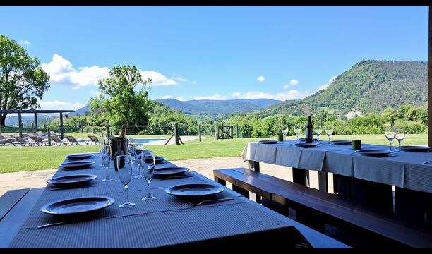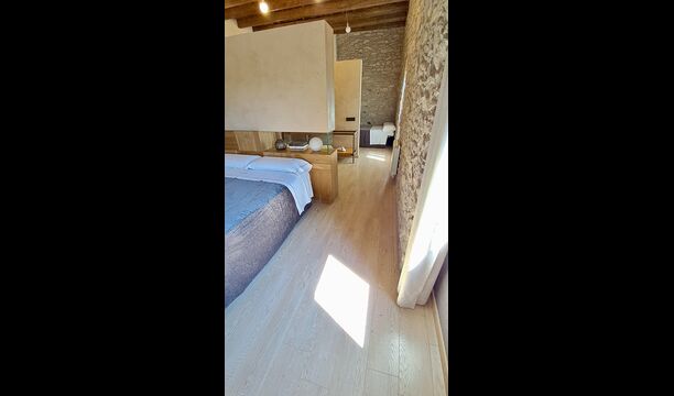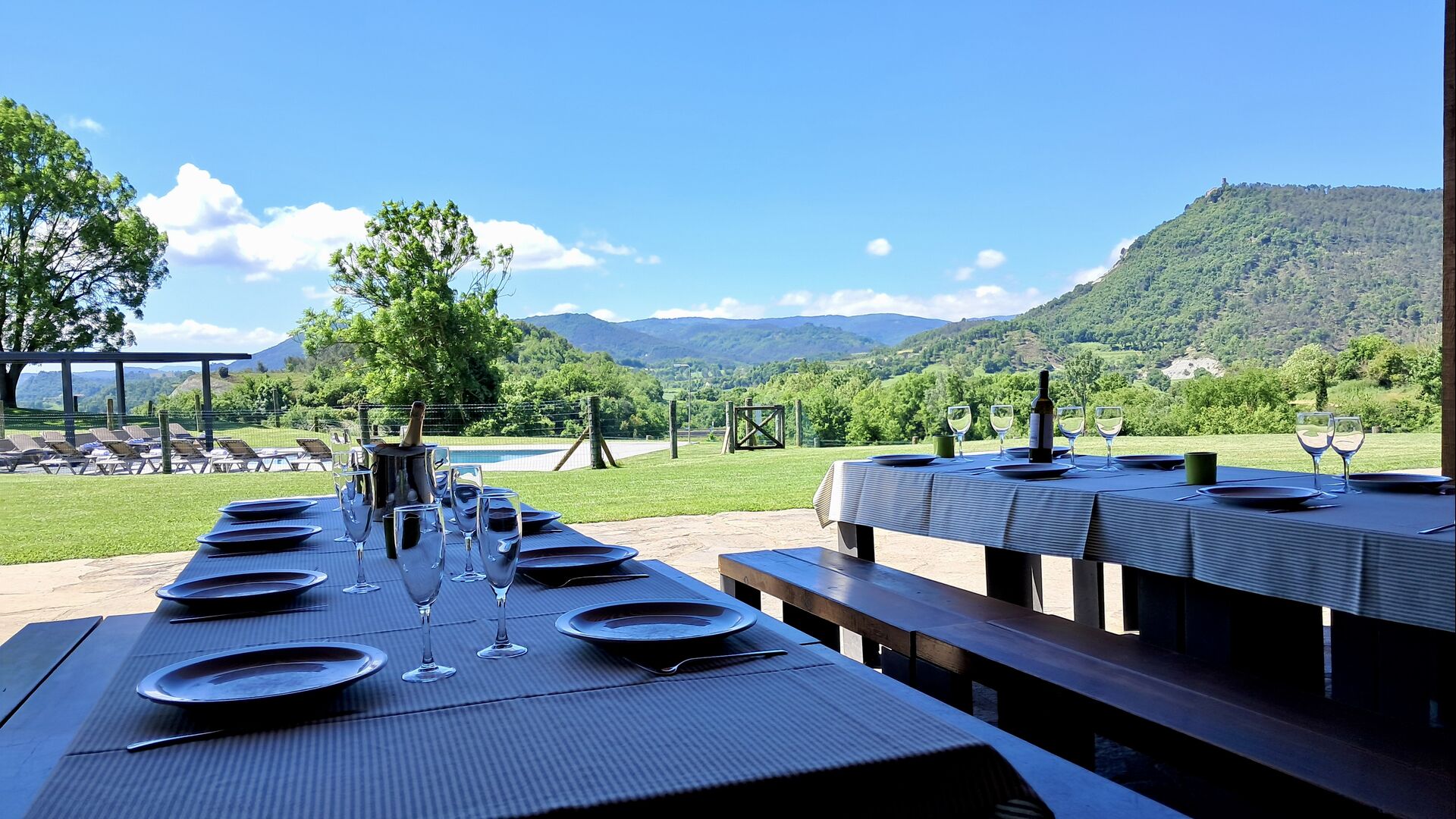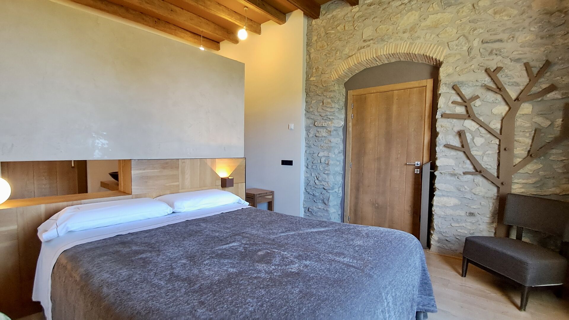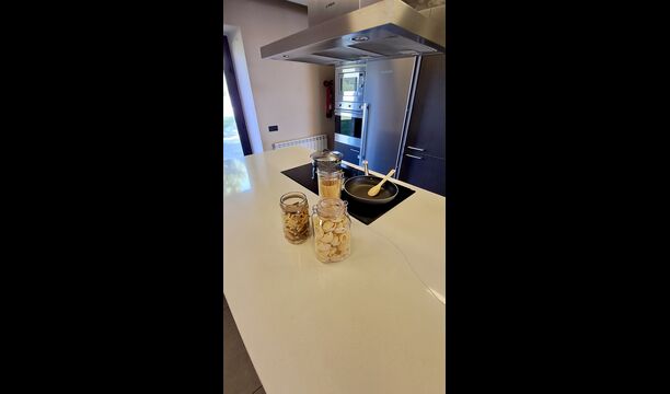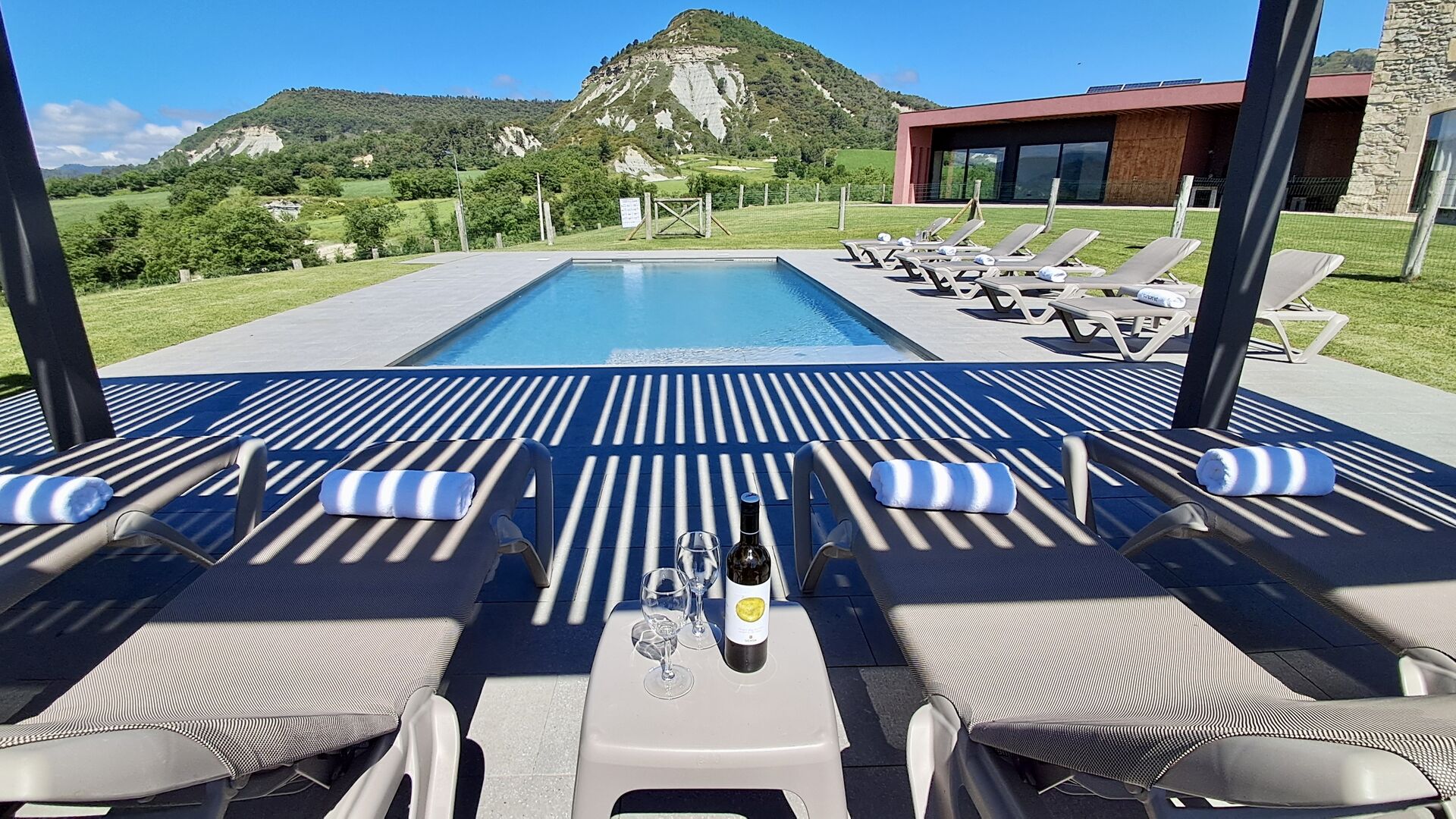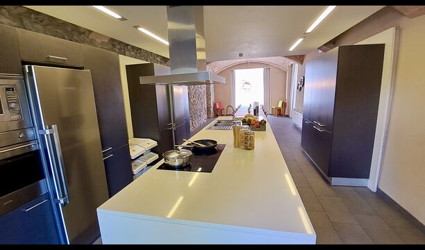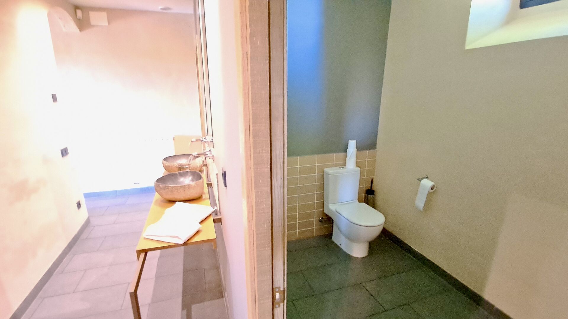 Els 2000 m2 de jardí que la rodegen tenen la seva pròpia piscina privada amb hamaques. A més a més, també te una terrassa coberta amb BBQ, una pica i aigua, on pots gaudir de les càlides i encantadores tardes. La cuina, que està situada amb un accés fàcil a la terrassa, té totes les facilitats modernes que un pot necessitar – cafetera nespresso, forn, microones, dues neveres i una preciosa taula llarga a l’estil tradicional. En resum, aquesta casa rural és la perfecte pels convidats, que busquen el millor confort.