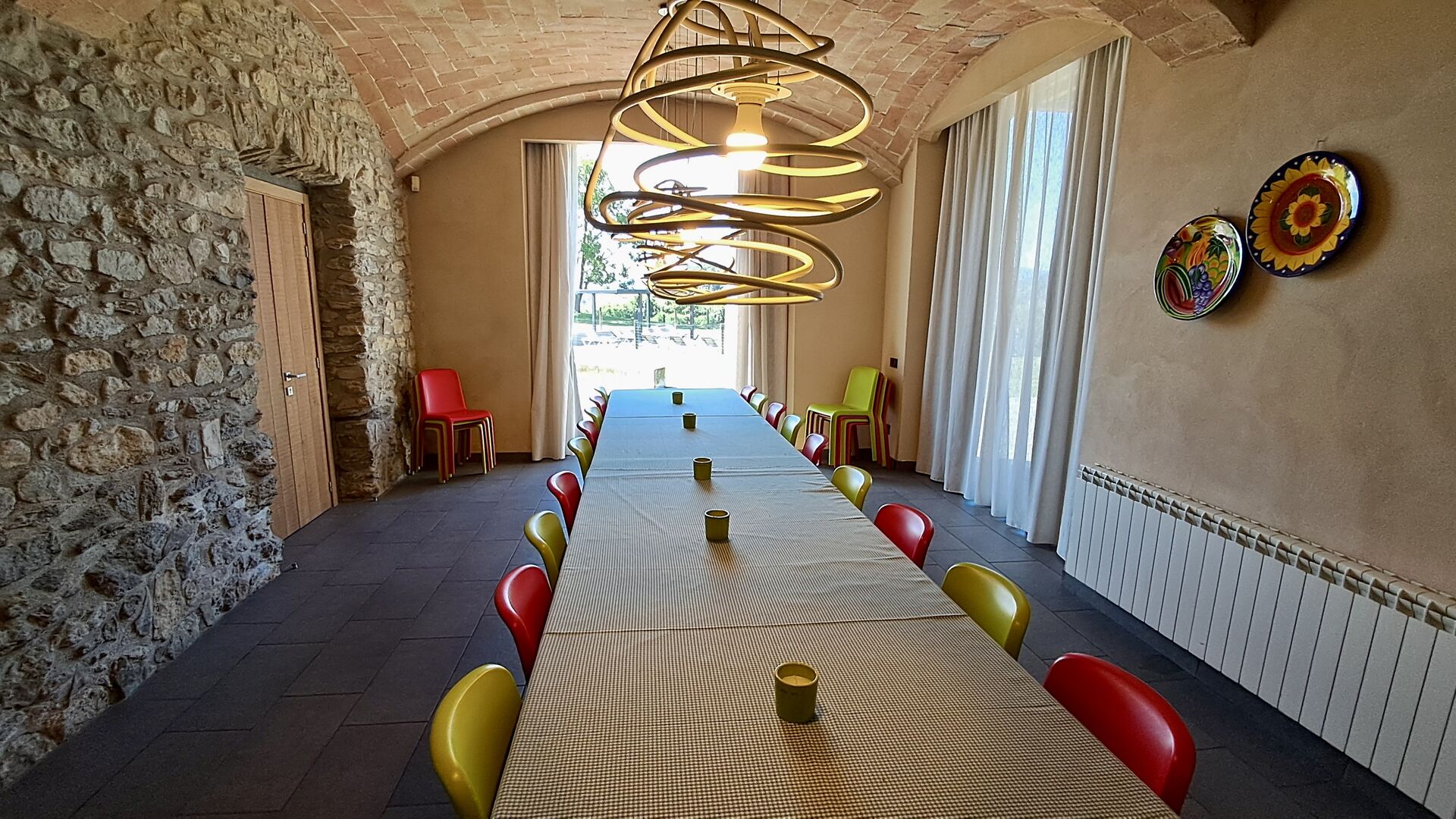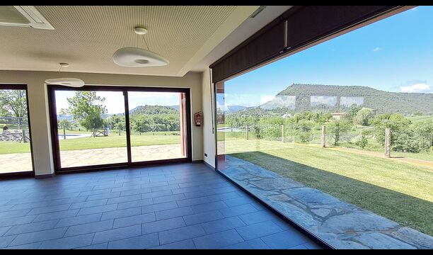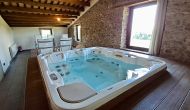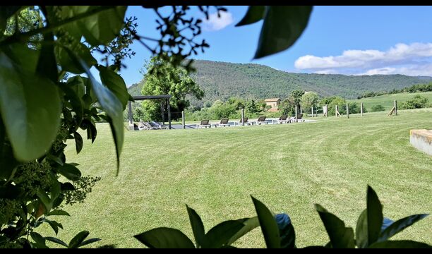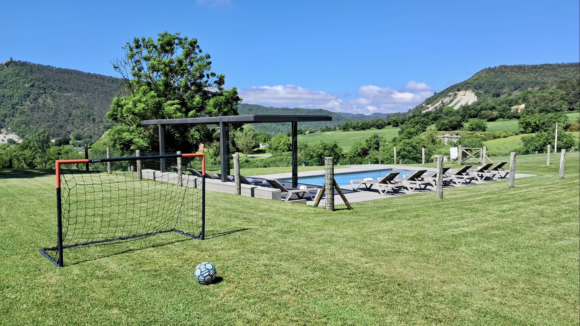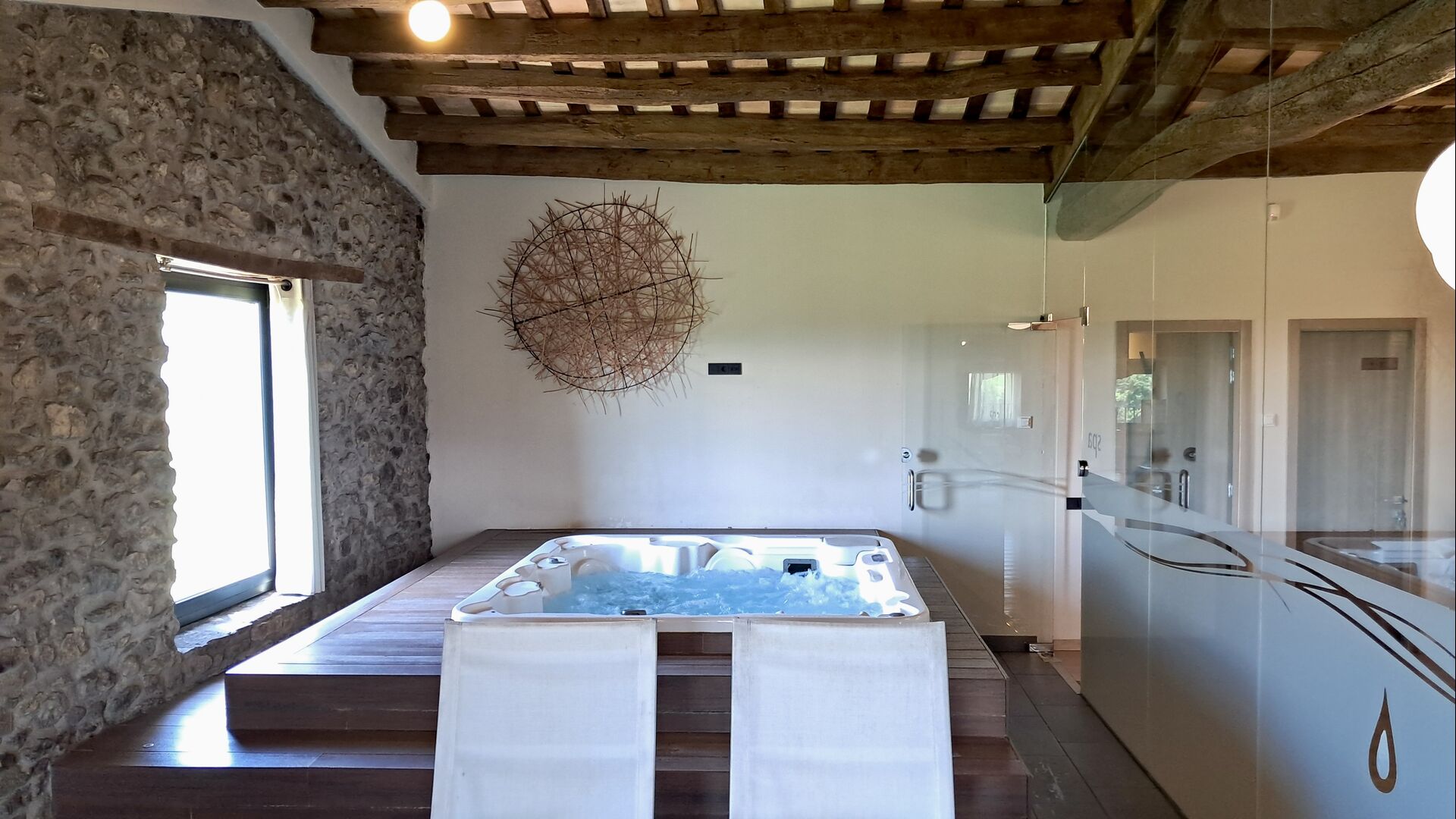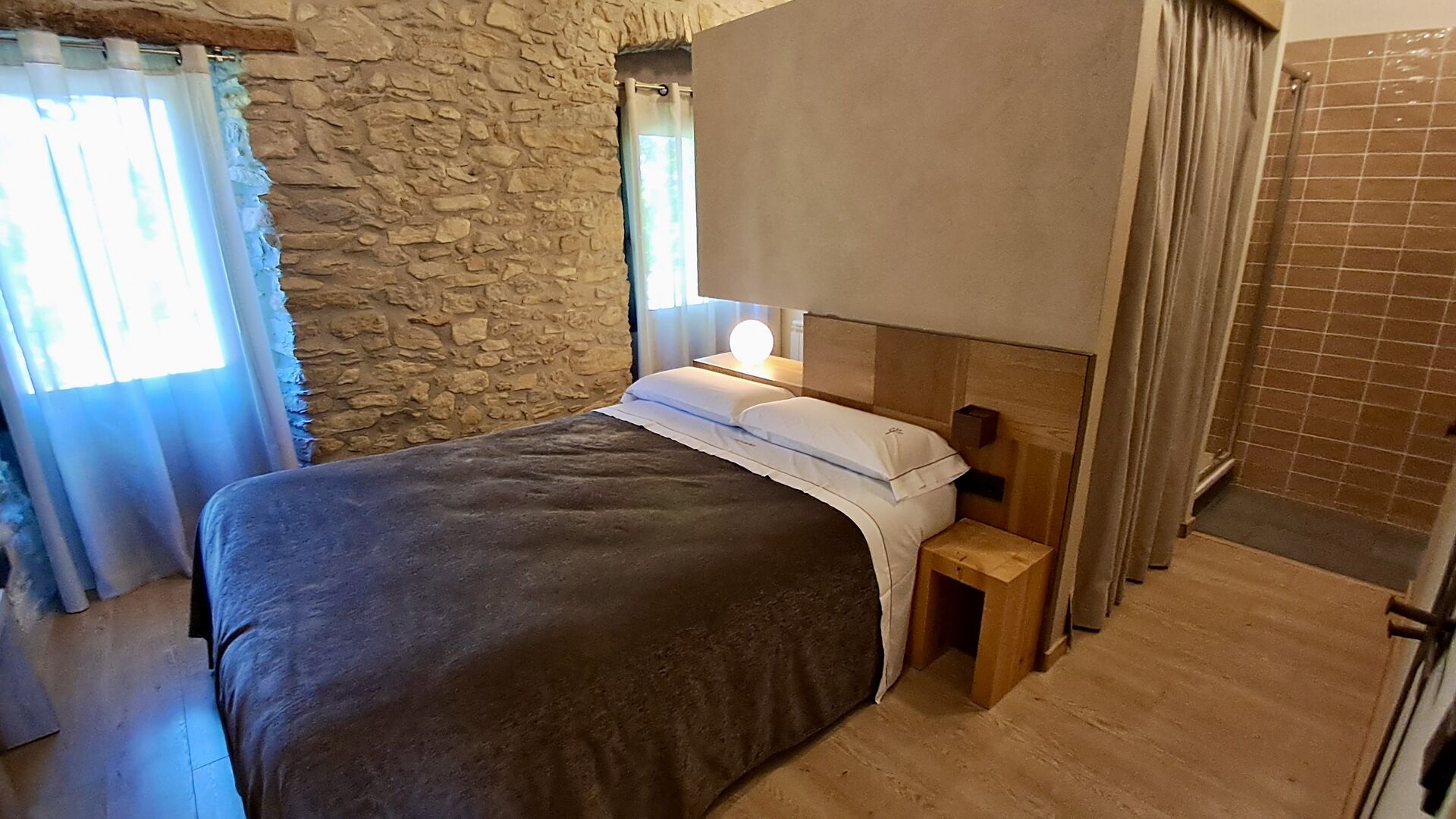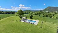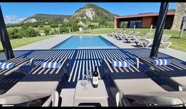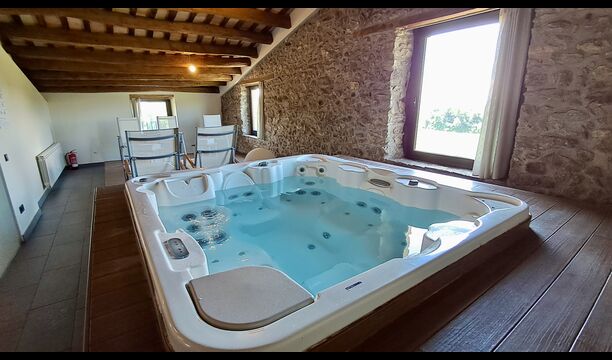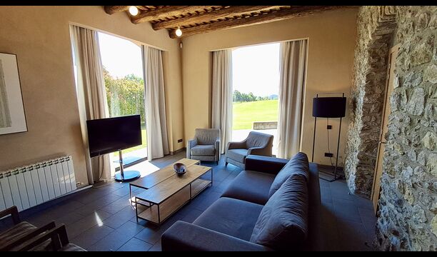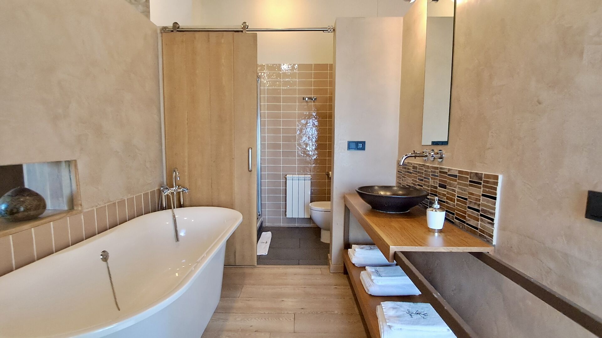 Els 2000 m2 de jardí que la rodegen tenen la seva pròpia piscina privada amb hamaques. A més a més, també te una terrassa coberta amb BBQ, una pica i aigua, on pots gaudir de les càlides i encantadores tardes. La cuina, que està situada amb un accés fàcil a la terrassa, té totes les facilitats modernes que un pot necessitar – cafetera nespresso, forn, microones, dues neveres i una preciosa taula llarga a l’estil tradicional. En resum, aquesta casa rural és la perfecte pels convidats, que busquen el millor confort.
