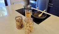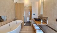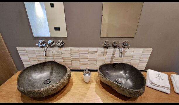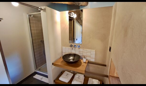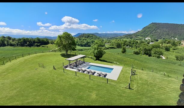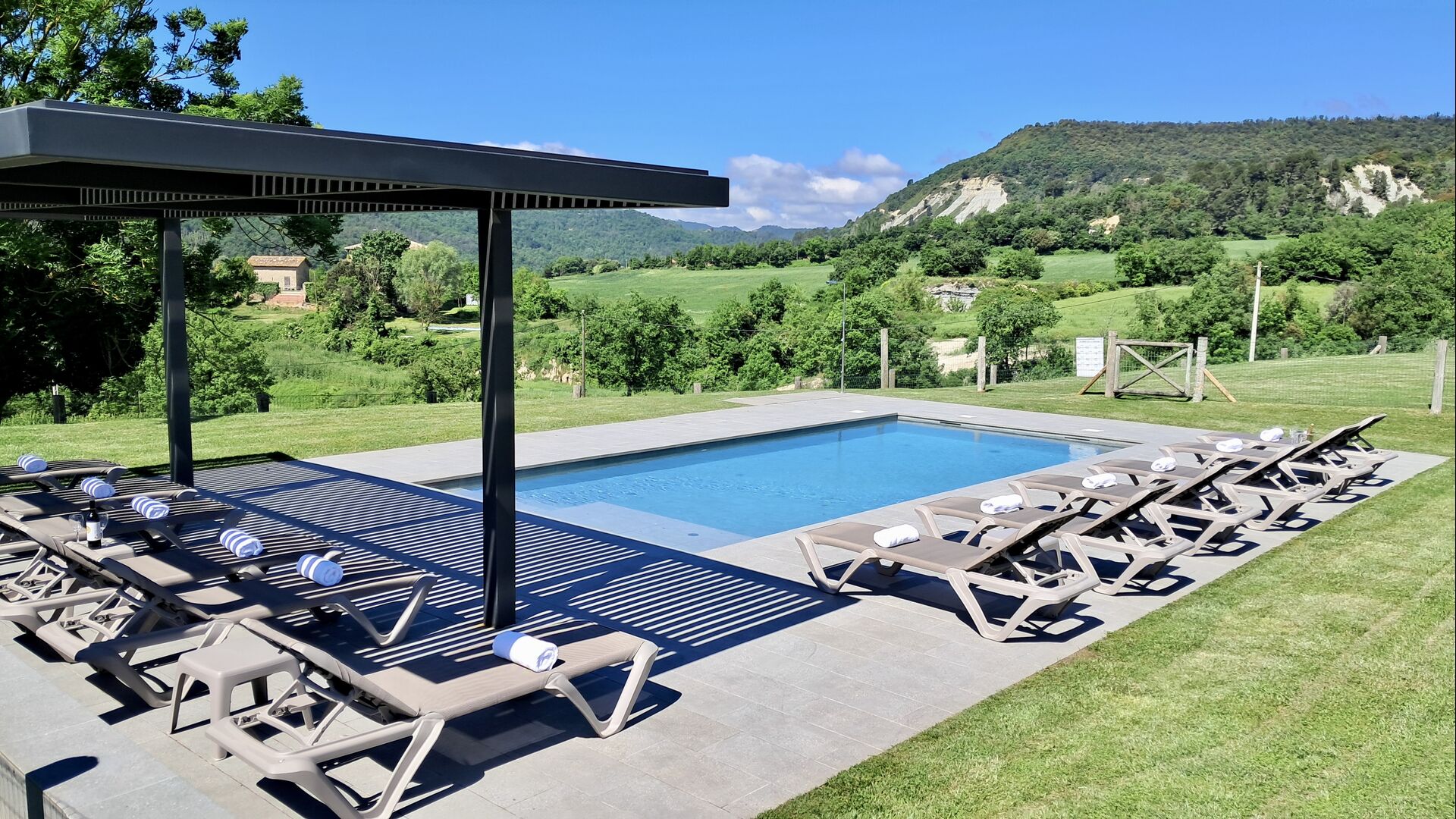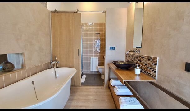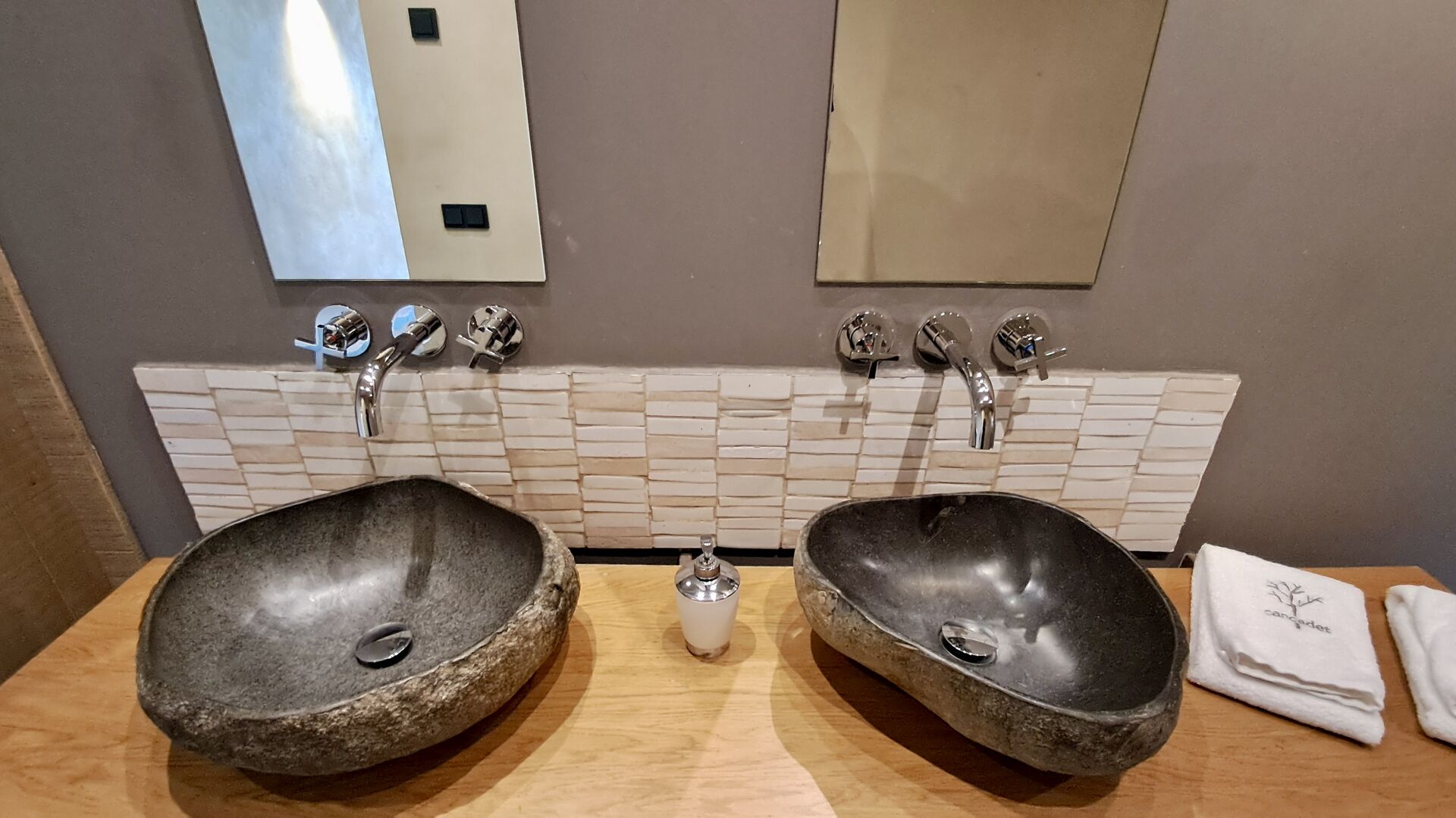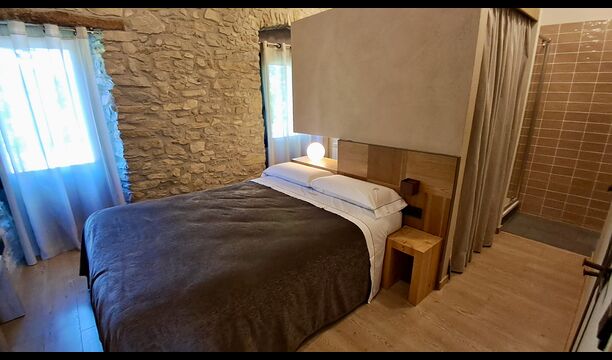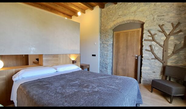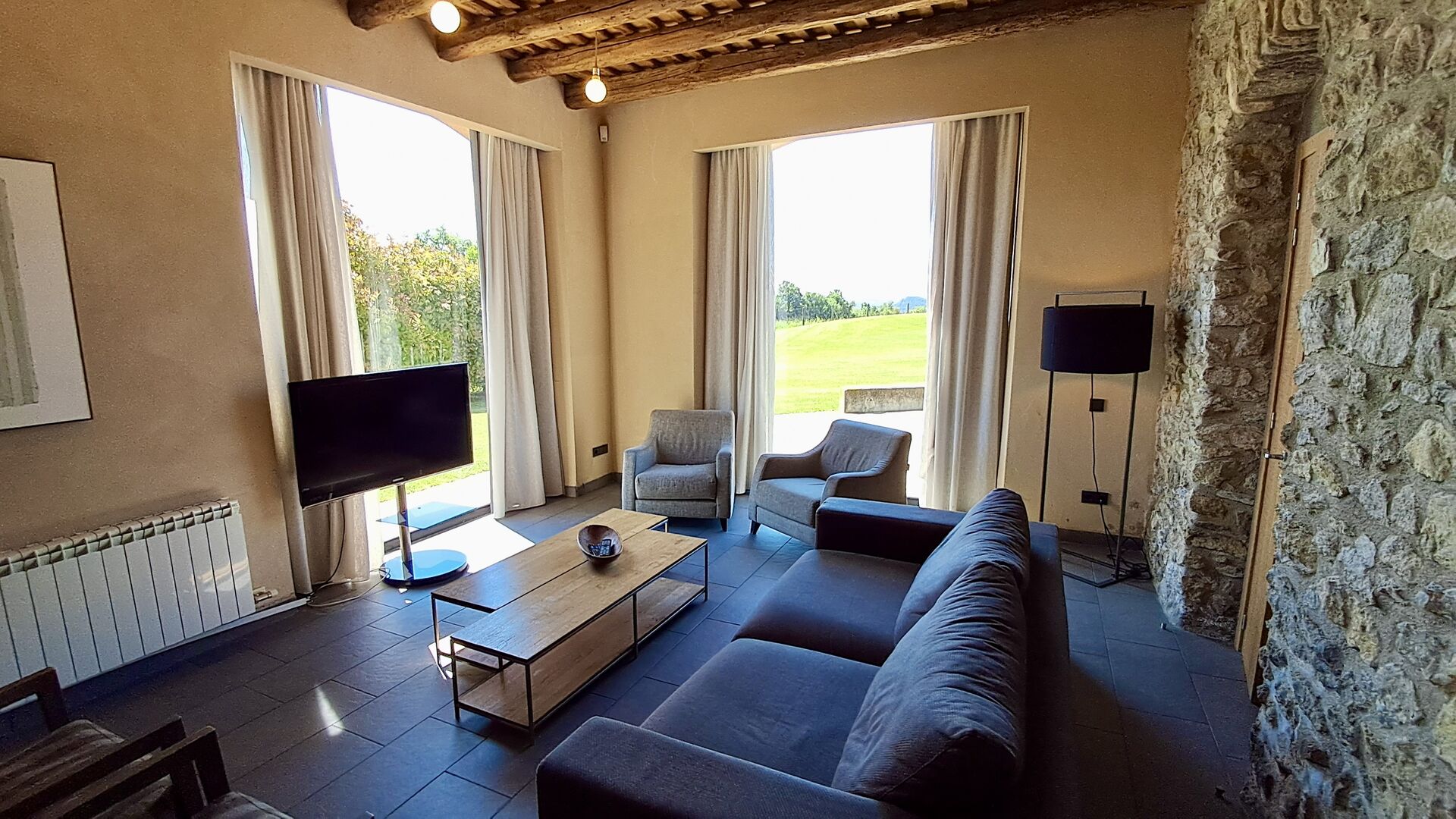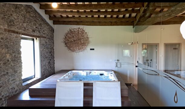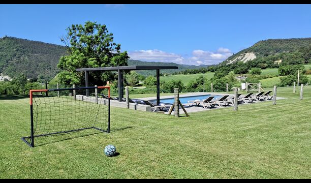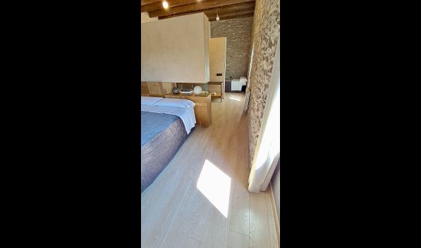 Els 2000 m2 de jardí que la rodegen tenen la seva pròpia piscina privada amb hamaques. A més a més, també te una terrassa coberta amb BBQ, una pica i aigua, on pots gaudir de les càlides i encantadores tardes. La cuina, que està situada amb un accés fàcil a la terrassa, té totes les facilitats modernes que un pot necessitar – cafetera nespresso, forn, microones, dues neveres i una preciosa taula llarga a l’estil tradicional. En resum, aquesta casa rural és la perfecte pels convidats, que busquen el millor confort.