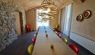 Casa Cané de Vic ofereix una única casa de vacances de 650 m2 amb espai per 22(+7). En la primera planta està situat un bonic hall amb dues butaques confortables. En aquesta mateixa planta és on es troba l’enorme cuina – plena de totes les facilitats modernes que un pot necessitar per cuinar un bon àpat. A més a més, presenta un accés directe al pàrquing des de la cuina, de manera que resulta molt més còmode traslladar les bosses de la compra directe al a cuina. També es troba una acollidora sala d’estar amb una llar de foc i lavabos. Finalment, també hi ha una sala de jocs amb un futbolí en la planta baixa.