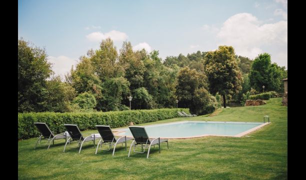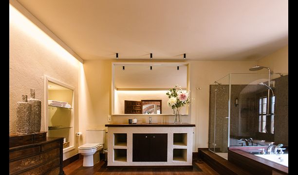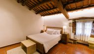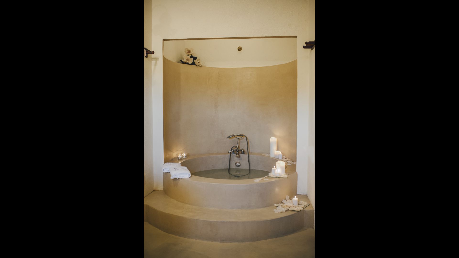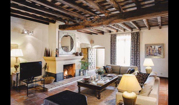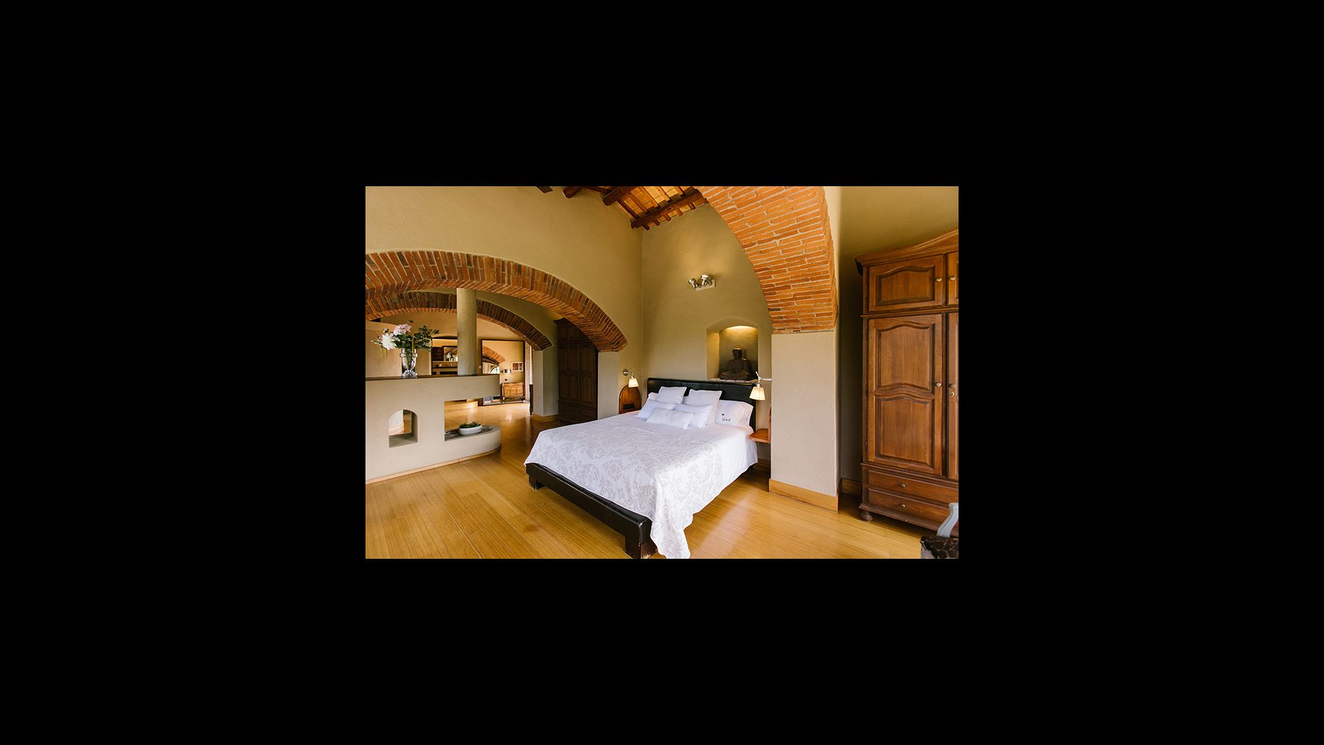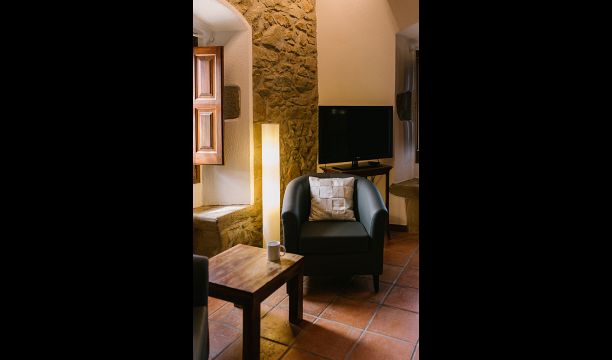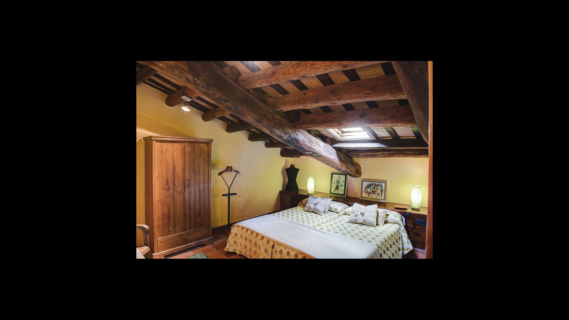 En el primer pis hi trobareu una gran sala d'estar amb una llar de foc i televisió. Com també quatre habitacions dobles amb bany privat (3 amb llits dobles, 1 amb dos llits individuals) i una master suite de 65m2 amb televisió i bany privat amb hidromassatge. Des d'aquesta suite hi ha unes escales privades que van directament a la zona de la piscina climatitzada.