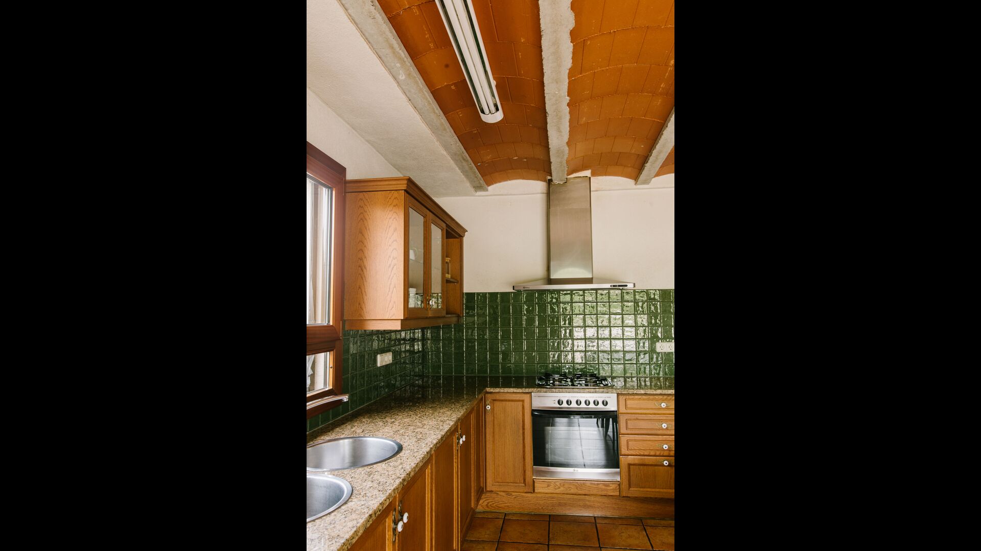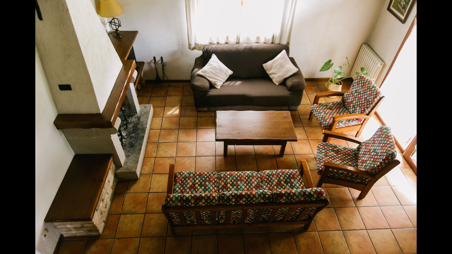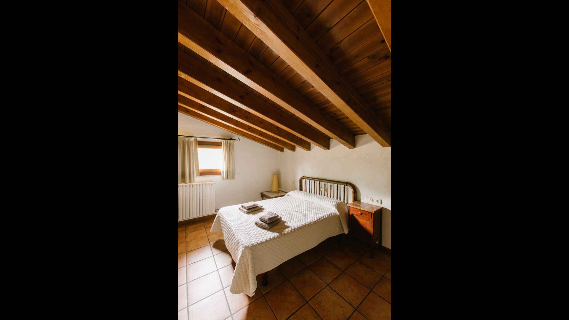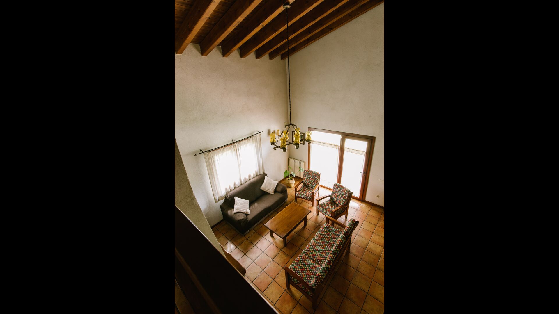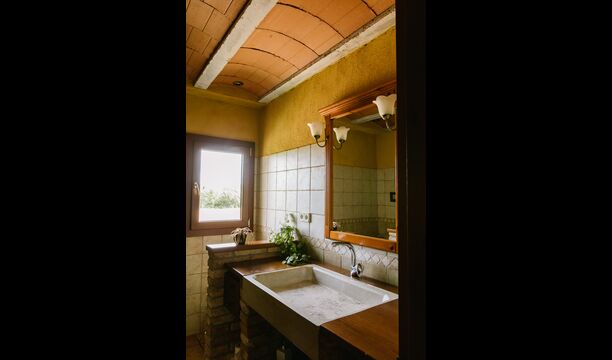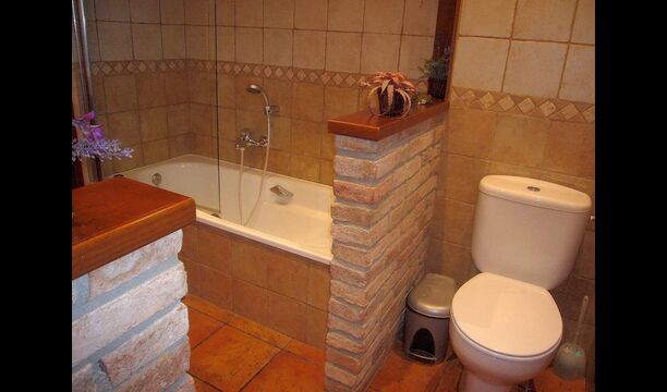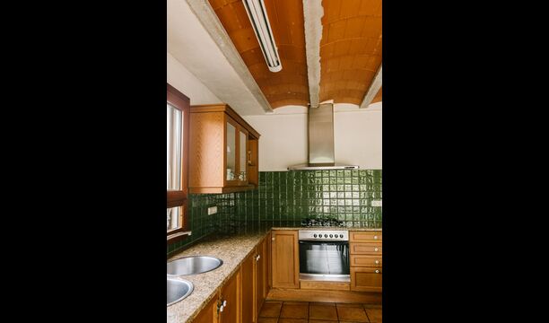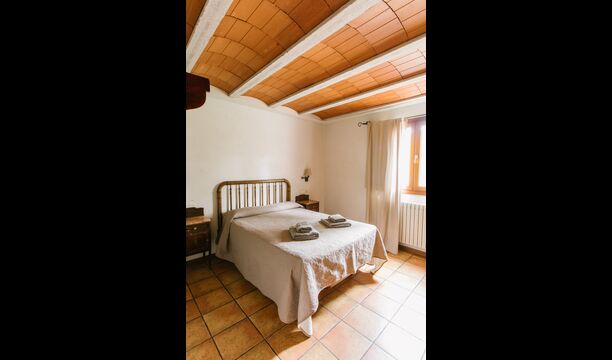 The house is perfect for a group or large family, as the house has 5 double rooms and two bathrooms distributed on the two floors. At the lower floor, there is a living room with a dining area and access to the kitchen. In the warm Catalan summers, one will often prefer to have the meals at the terrace with direct access from the kitchen, equipped with beautiful furniture of dark woods.