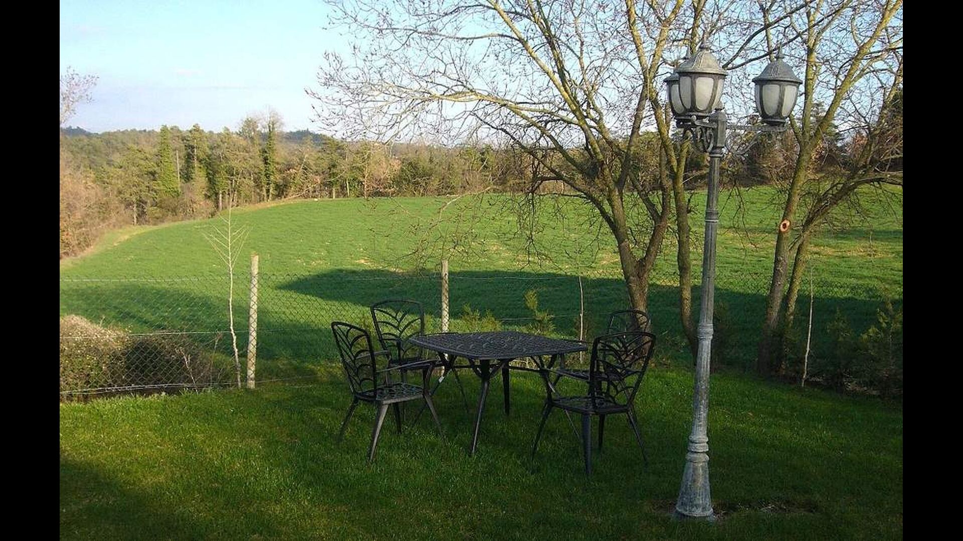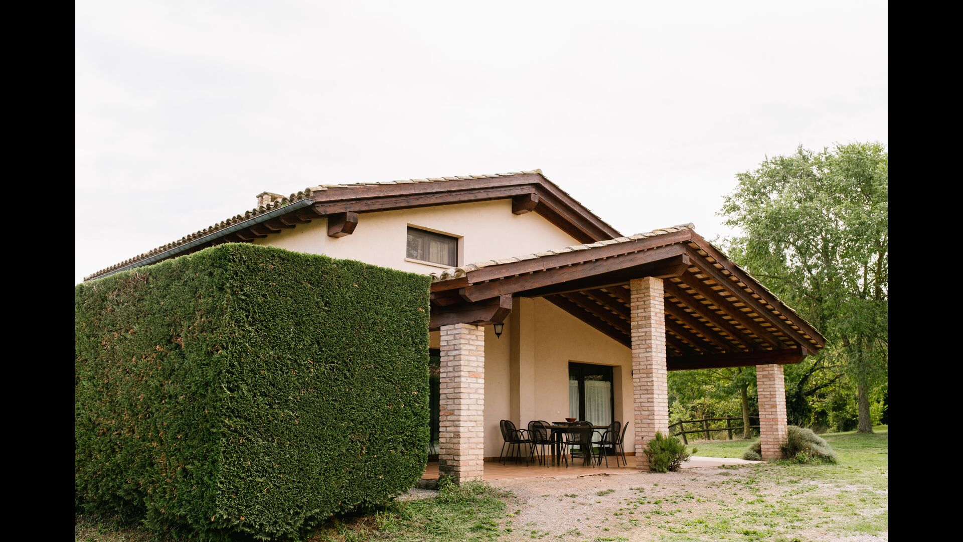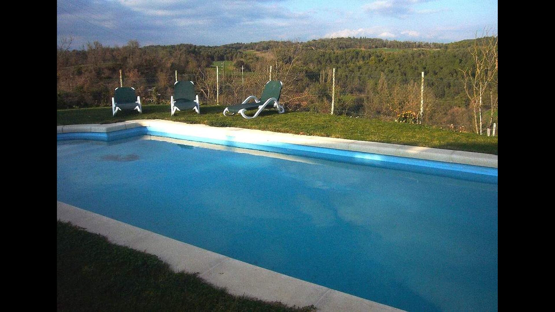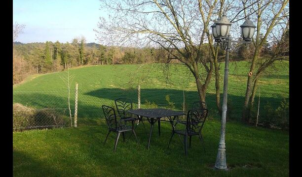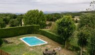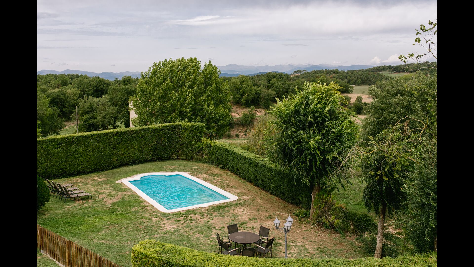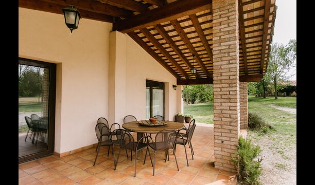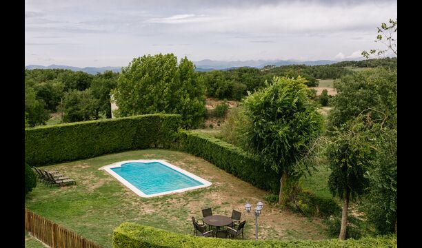 Below the house, there is a fenced garden with swimming pool and beach chairs. The garden and the swimming pool is at the moment shared between the two holiday homes. There is a stunning view over the fields below, an in the horizon the Pyrenees. The house is surrounded by nature, a farm and with long distance to the nearest neighbour.
