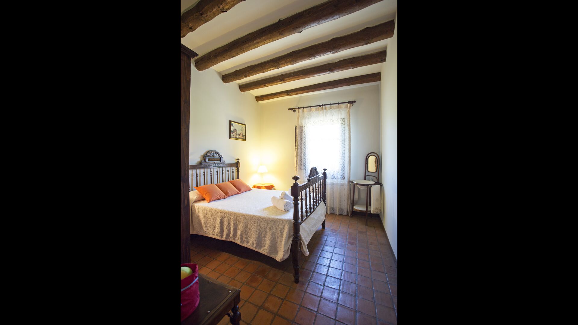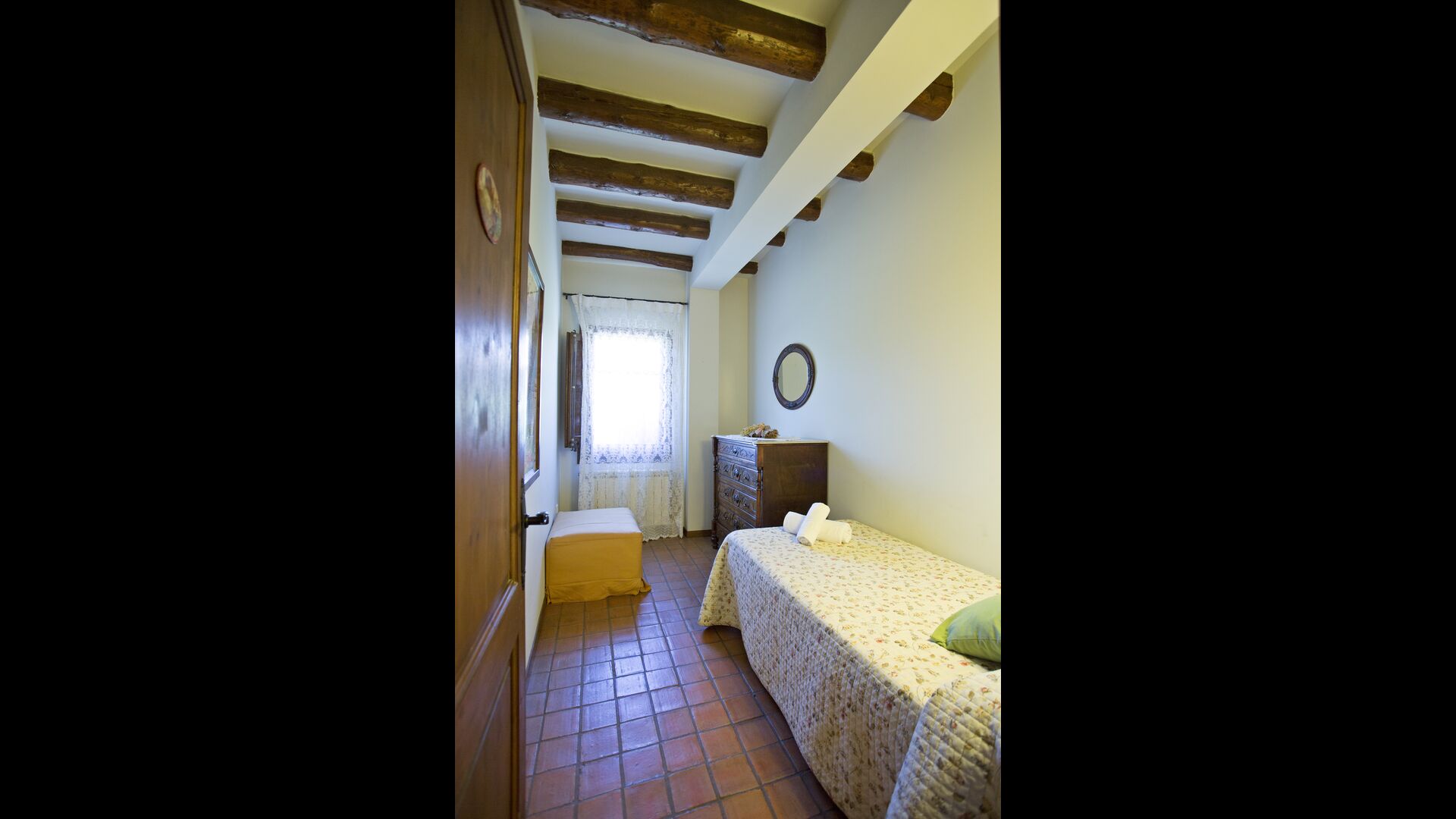 La casa Bosque A és d'estil clàssic amb mobles antics restaurats. Des de l'entrada principal s'accedeix a una sala comú àmplia amb sofàs, taula de menjador i cuina oberta amb vitroceràmica, nevera/congelador i microones. L'apartament té dues habitacions dobles (una amb 2 llits individuals i l'altra amb 1 llit doble) i una habitació individual amb possibilitat de posar-hi un llit supletori. Hi ha connexió Wi-Fi excel·lent.