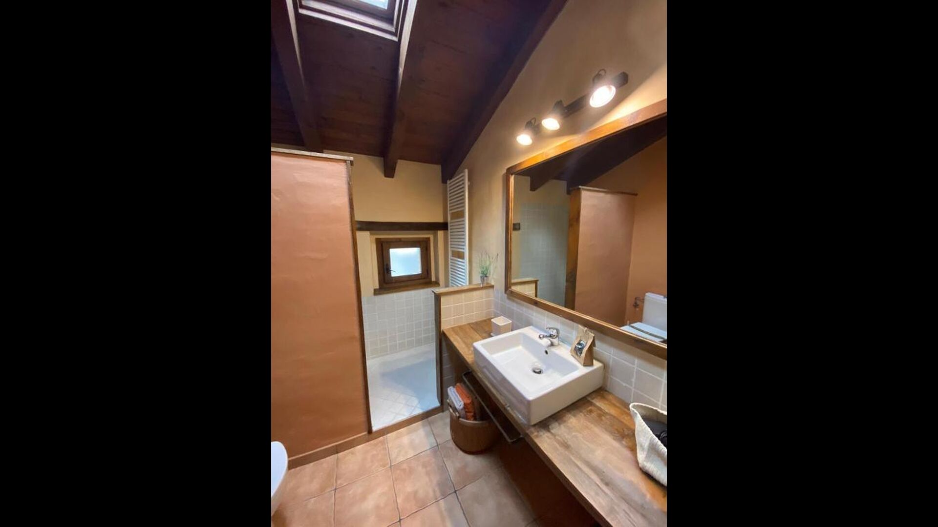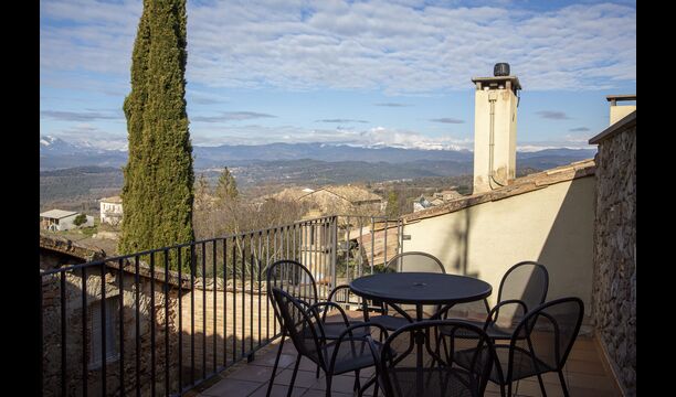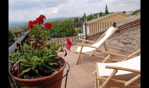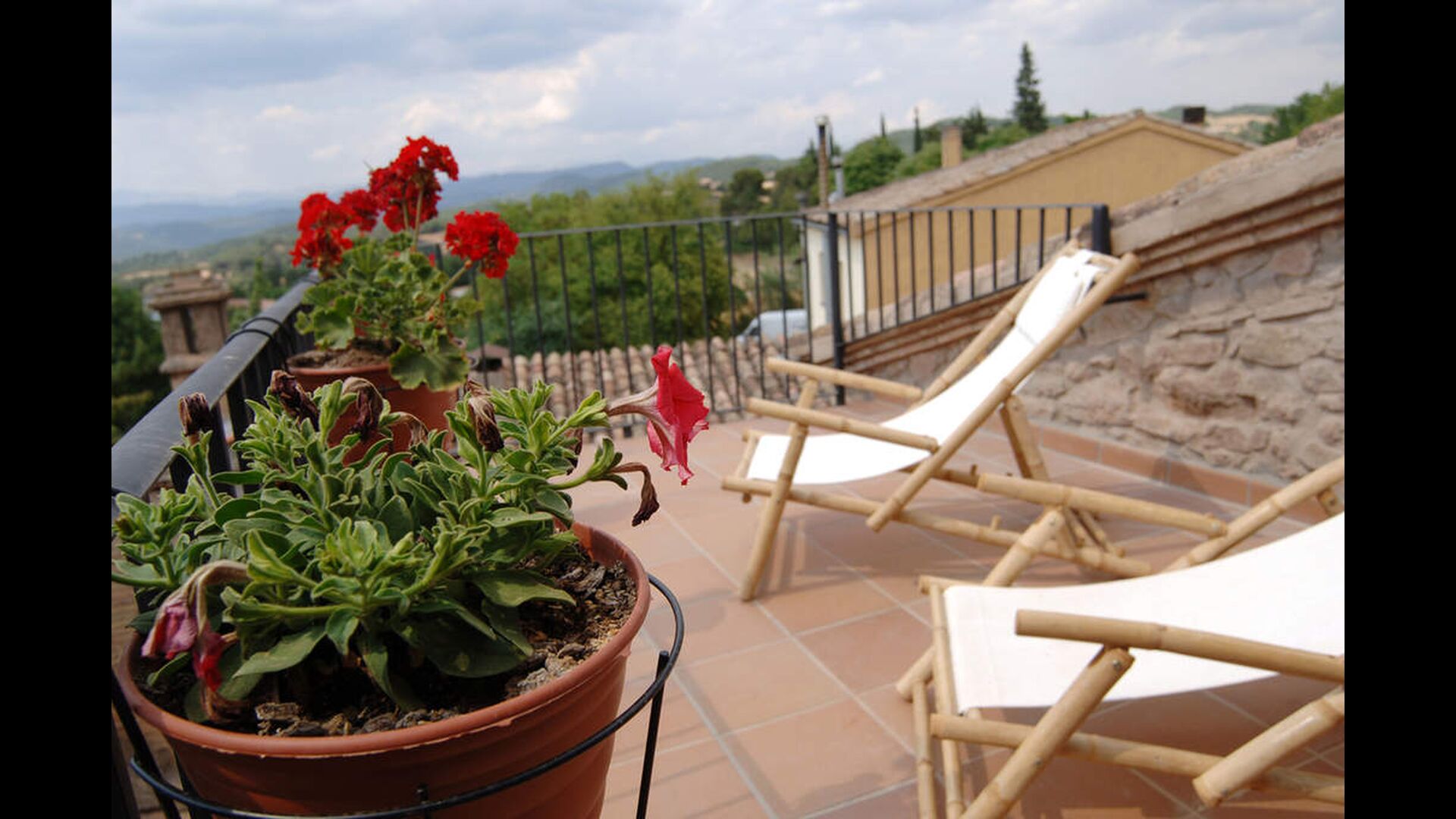 A la 2a planta hi ha dues habitacions dobles i una habitació per a quatre persones (llits individuals). Des d'una habitació doble s'accedeix a una encantadora terrassa al terrat amb una excel·lent vista sobre el camp català. . A més, hi ha un segon bany amb dutxa.