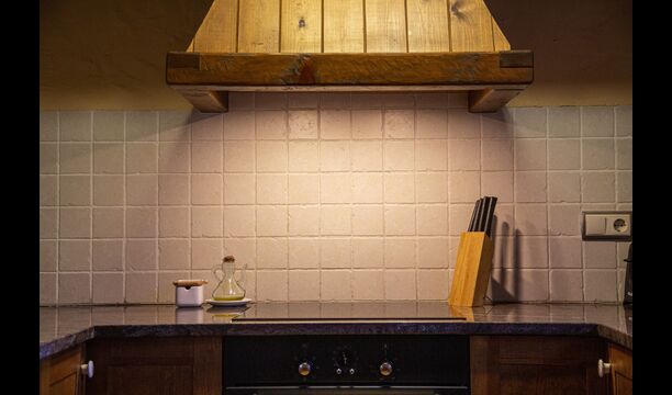 A la 1a planta hi ha una cuina oberta amb totes les instal·lacions modernes, com ara una rentadora, rentavaixelles, microones i cafetera. També hi ha un bany i una sala d'estar gran i de bon gust. Des del saló hi ha un balcó amb vistes al centre del poble.