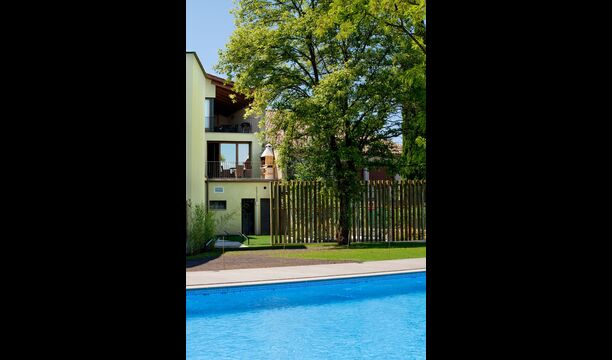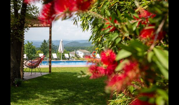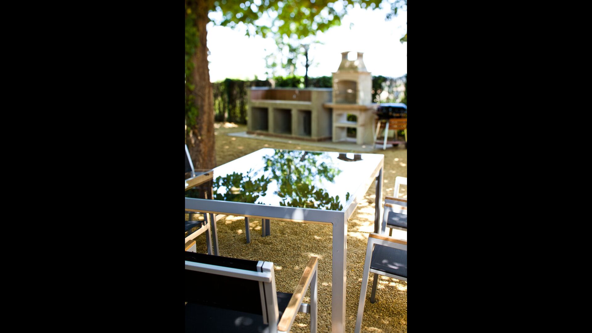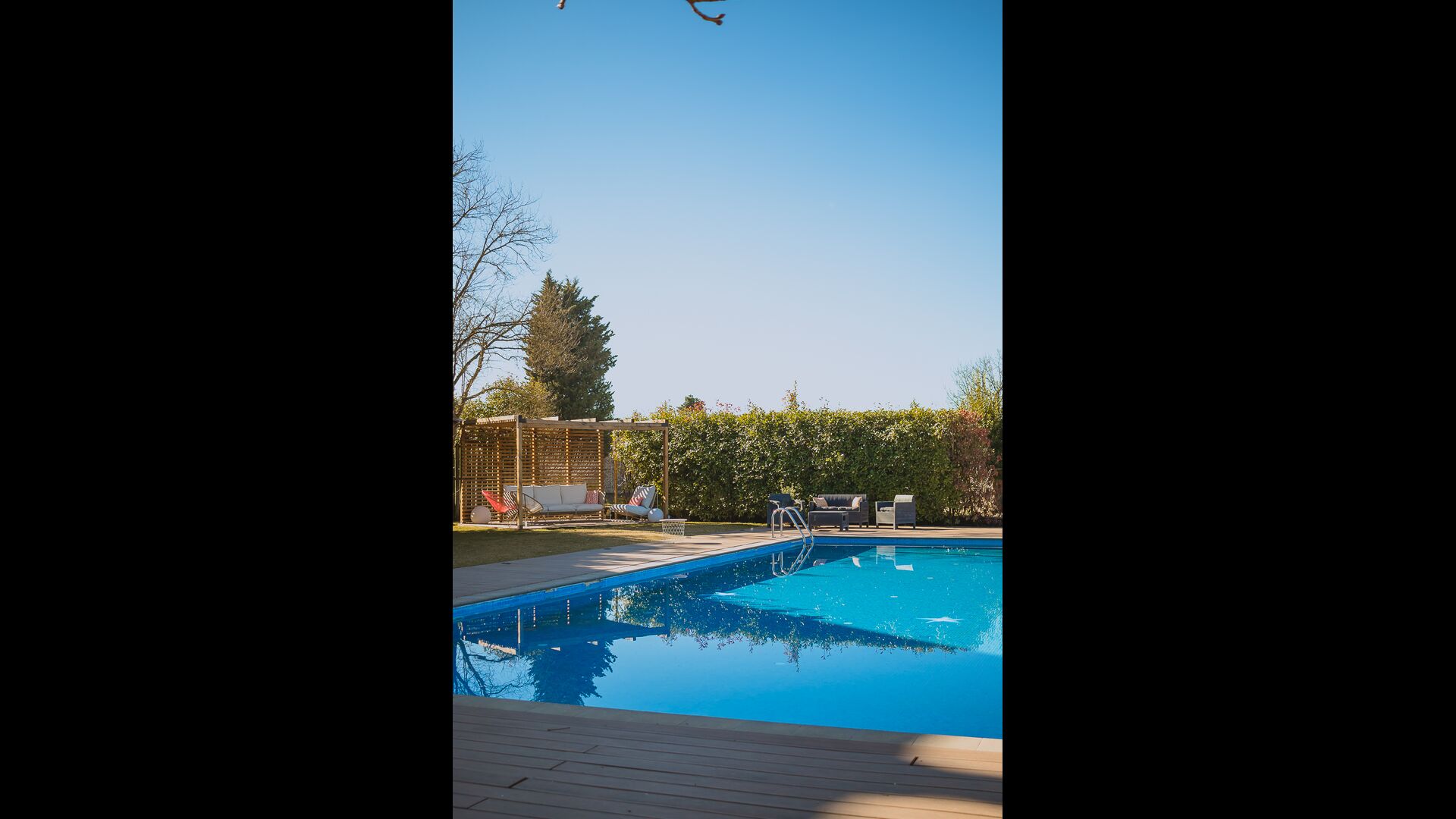 A més, la part posterior de la casa es va convertir en la fantàstica zona de la piscina amb la gran piscina (17 x 5 metres), café taules, lavabos i vestidors, i racons ombrívols i llocs assolellats. La vista és impressionant, directament als Pirineus.