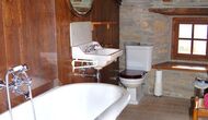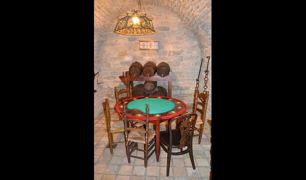 You enter the tower via a beautiful entrance, which almost resembles a hanging bridge. From here you enter a kitchen that is equipped with fridge, oven and microwave and dishwasher. There is also a seating area whith a TV. From here there is access to a superb terrace where you can sit and enjoy your morning coffee. On this floor is also a bathroom. From the opend dining & living area, you can move two steps down, where there are two bedrooms (one triple room and one double room). Back on main floor there is also a room with an antique game table and the room is decorated in a good old knight style (the knight of the round table).
