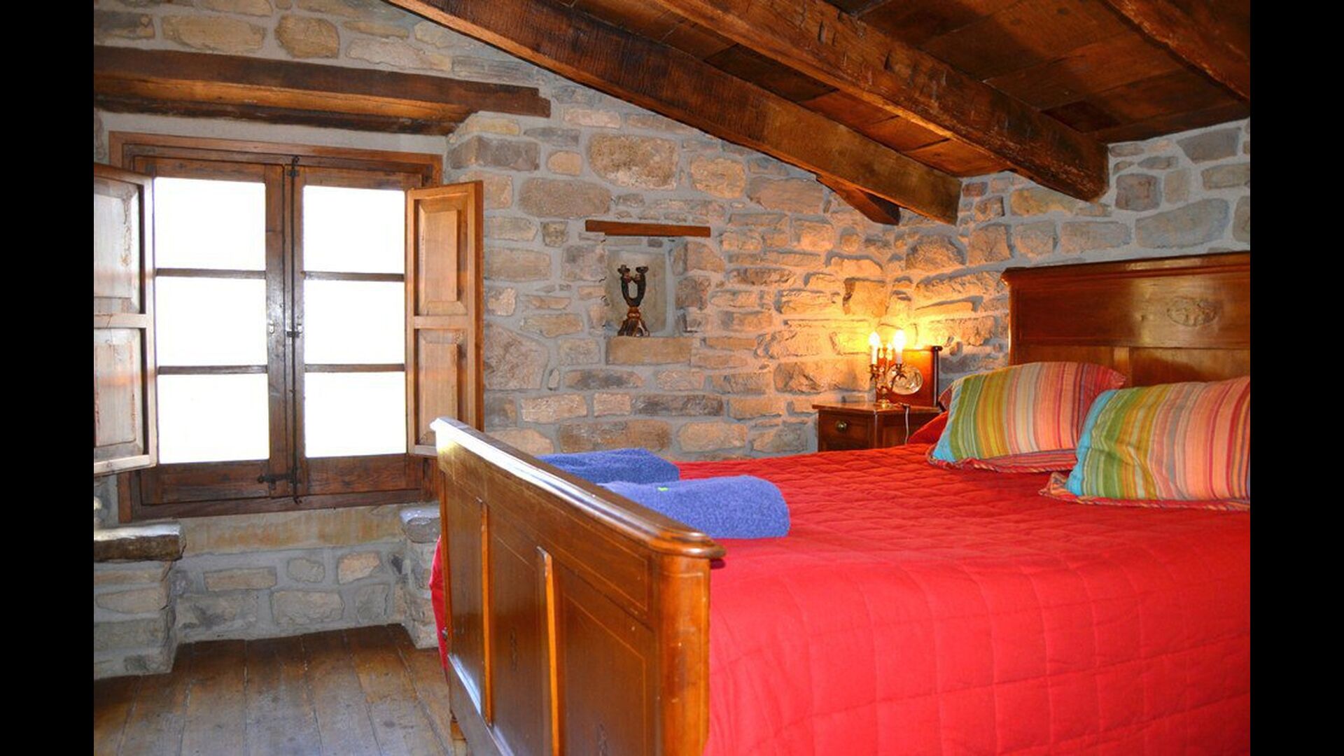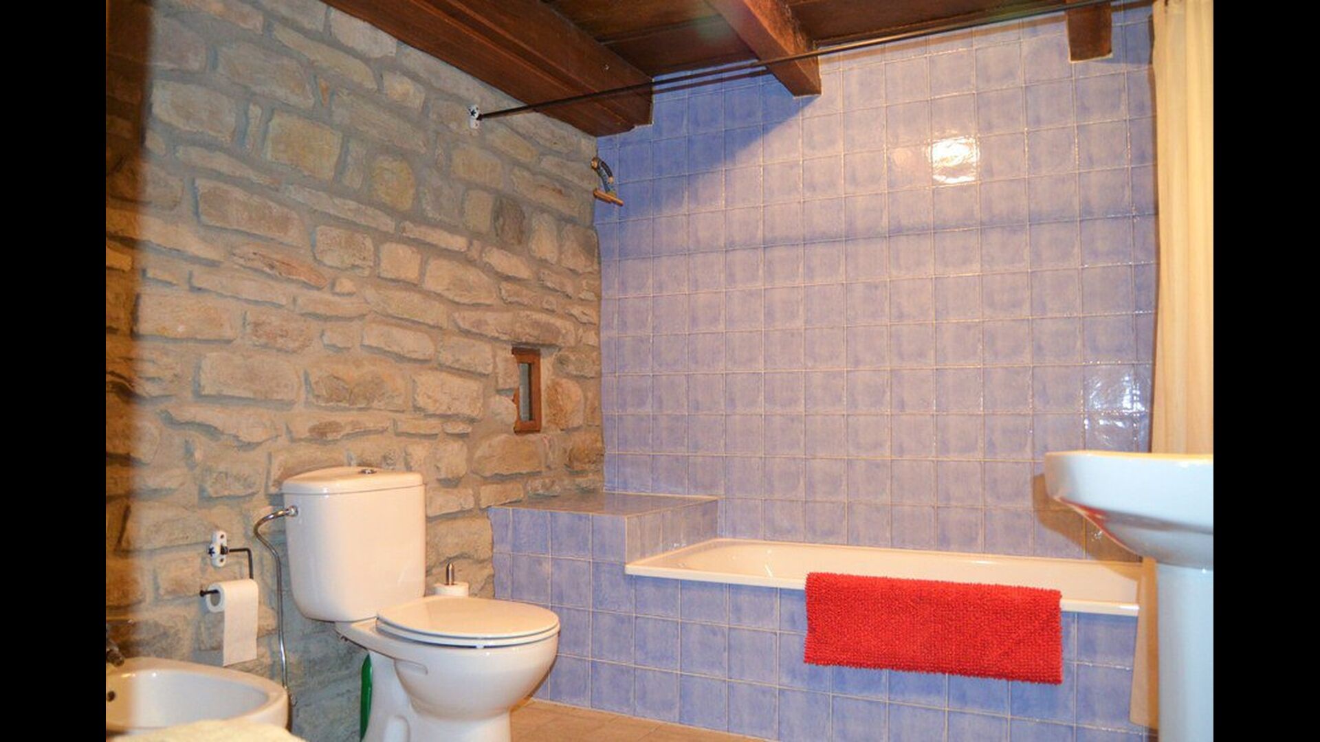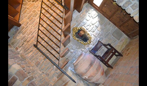 From this plateau you move up through a more narrow staircase. On top of the tower there are plateaus with a bathrooms with bathtub, a double bedroom, another bathroom with bath, one bedroom with bunk bed and at the very top is another double room, witch has what may be the most beautiful view in the area. At the top you will come up to the terrace of the tower. From here you can sunbathe or sit on the benches and think of the ancient…. or simply fully enjoy the excellent views.