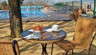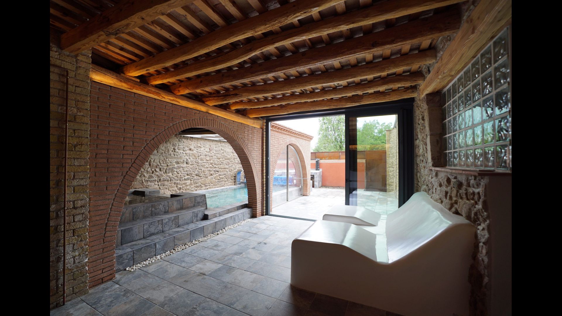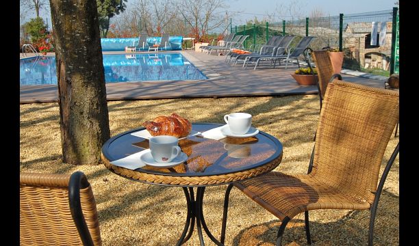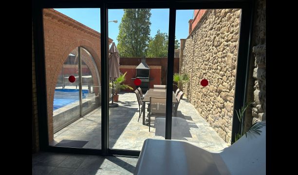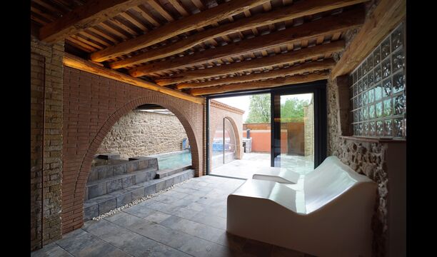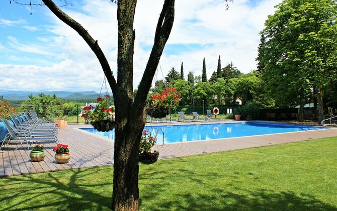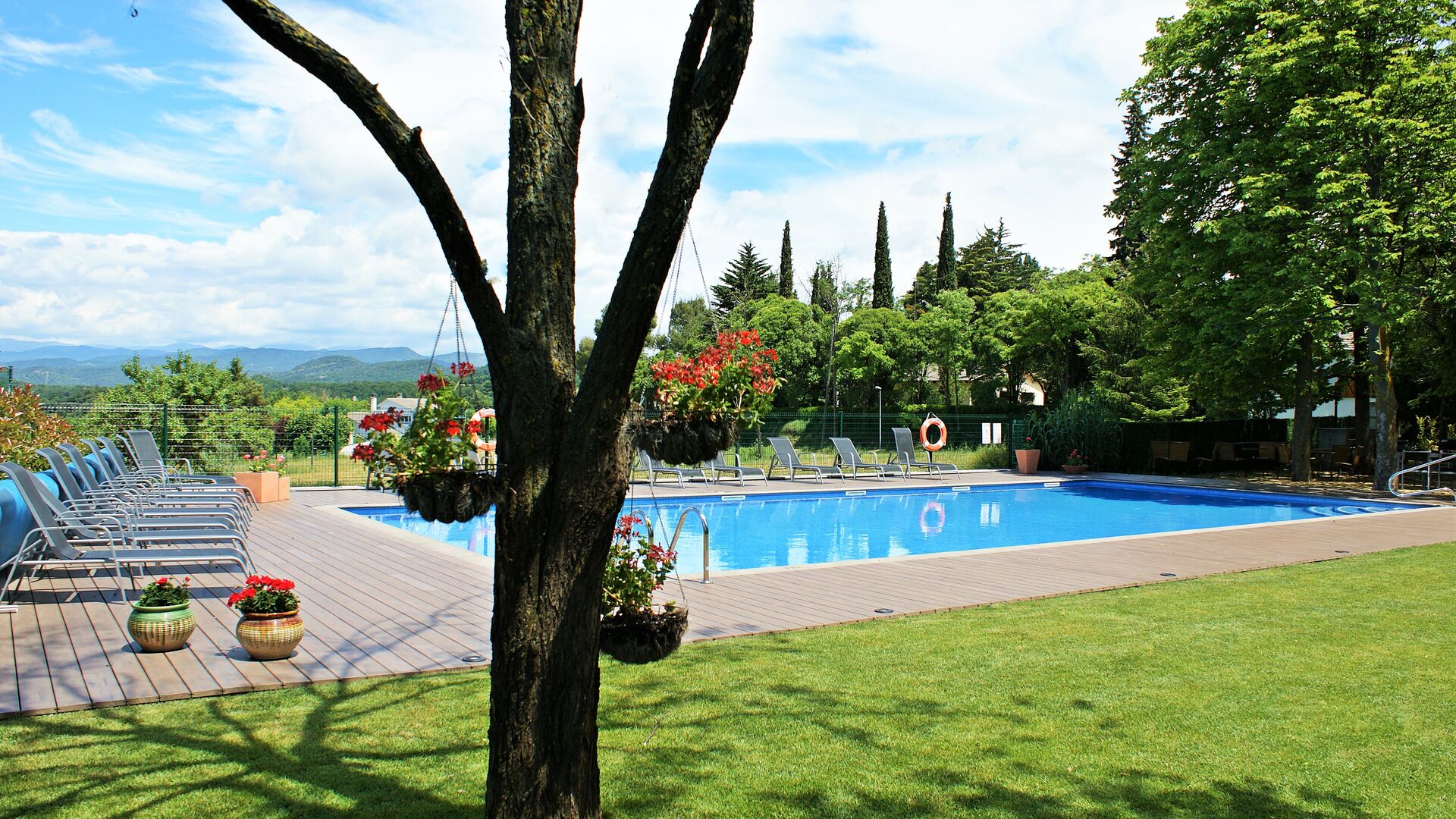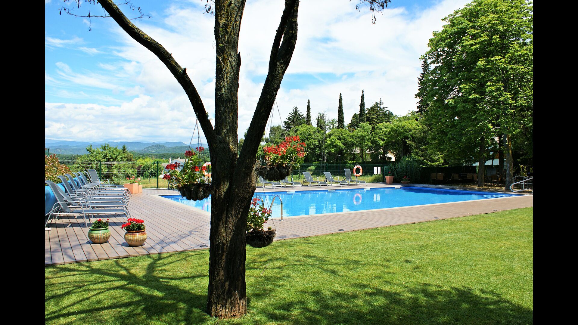 A més, la part posterior de la casa es va convertir enla fantàstica zona de piscina amb la gran piscina (17 x 5 metres), café taules, lavabos i vestidorsi racons ombrívols i assolellats. La vista és impressionant, directament al Pirineu. Com que reserveu tots els apartaments, aquesta zona serà, per descomptat, només per al vostre ús privat.