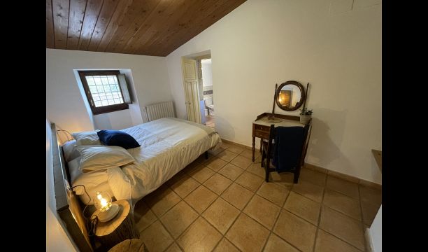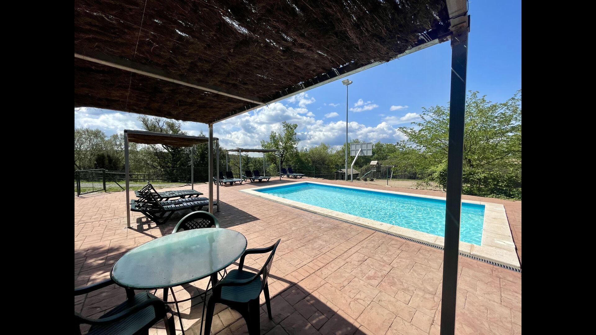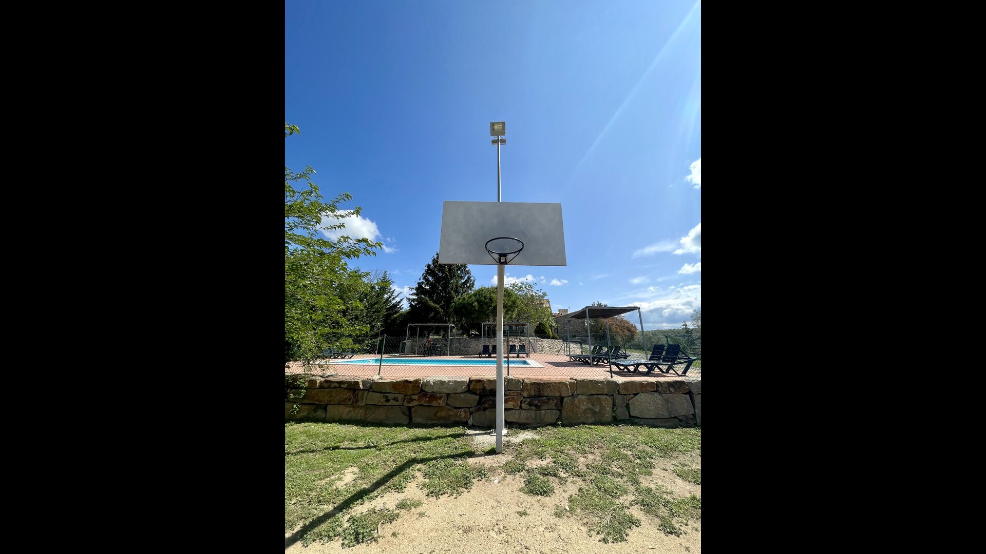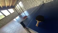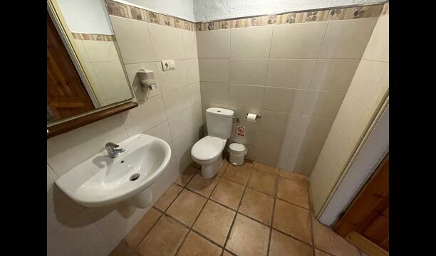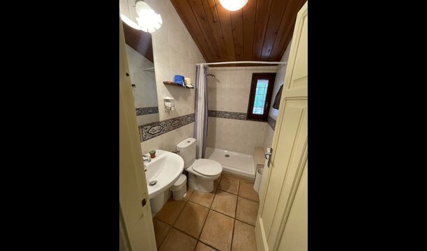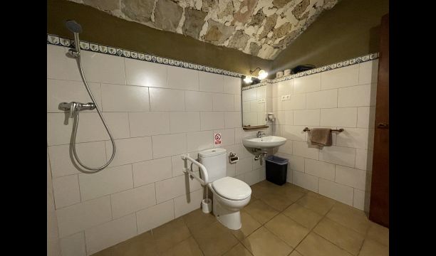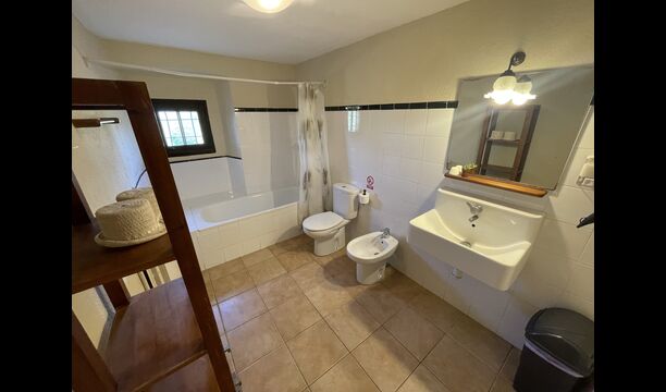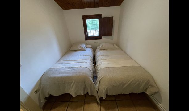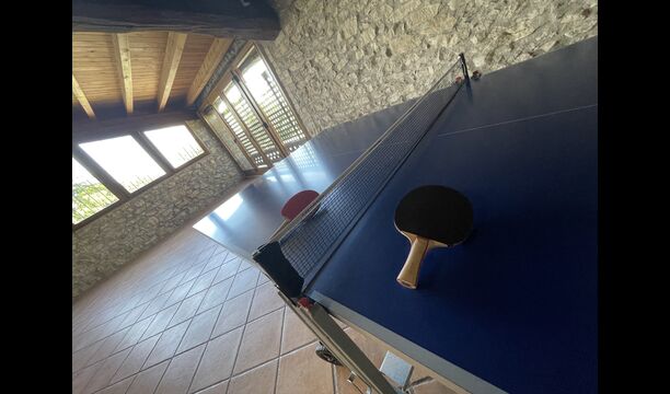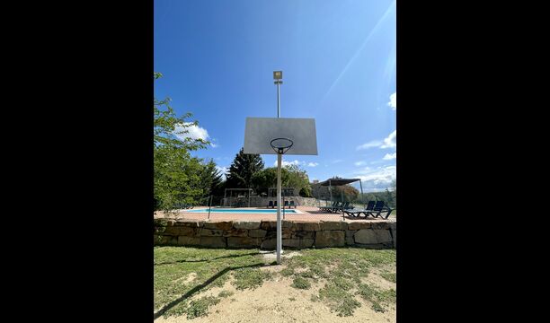 A la planta baixa trobareu el pati gran amb terrassa coberta, barbacoa i una bonica mirada al paisatge. També hi ha el saló amb TV i una acollidora llar de foc, una cuina totalment equipada, amb una gran taula i cadires, així com el menjador amb una taula llarga tradicional. Hi ha una habitació doble a la planta baixa, accessible per a minusvàlids. L'habitació té un bany privat. La sala de jocs de la casa també es troba a la planta baixa i al jardí hi ha un parc infantil amb gronxadors, la piscina i una < strong>pista polivalent (bàsquet i futbol). Tota la zona exterior està situada en un entorn excel·lent.