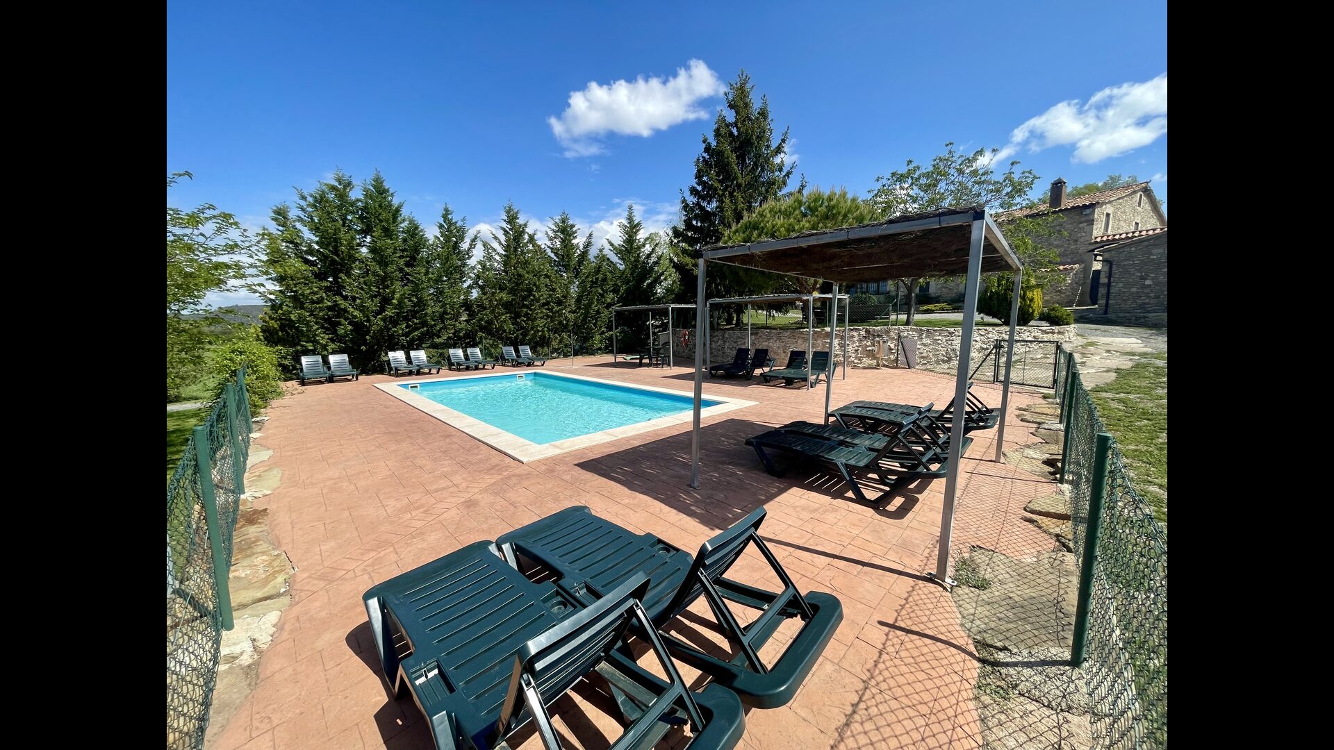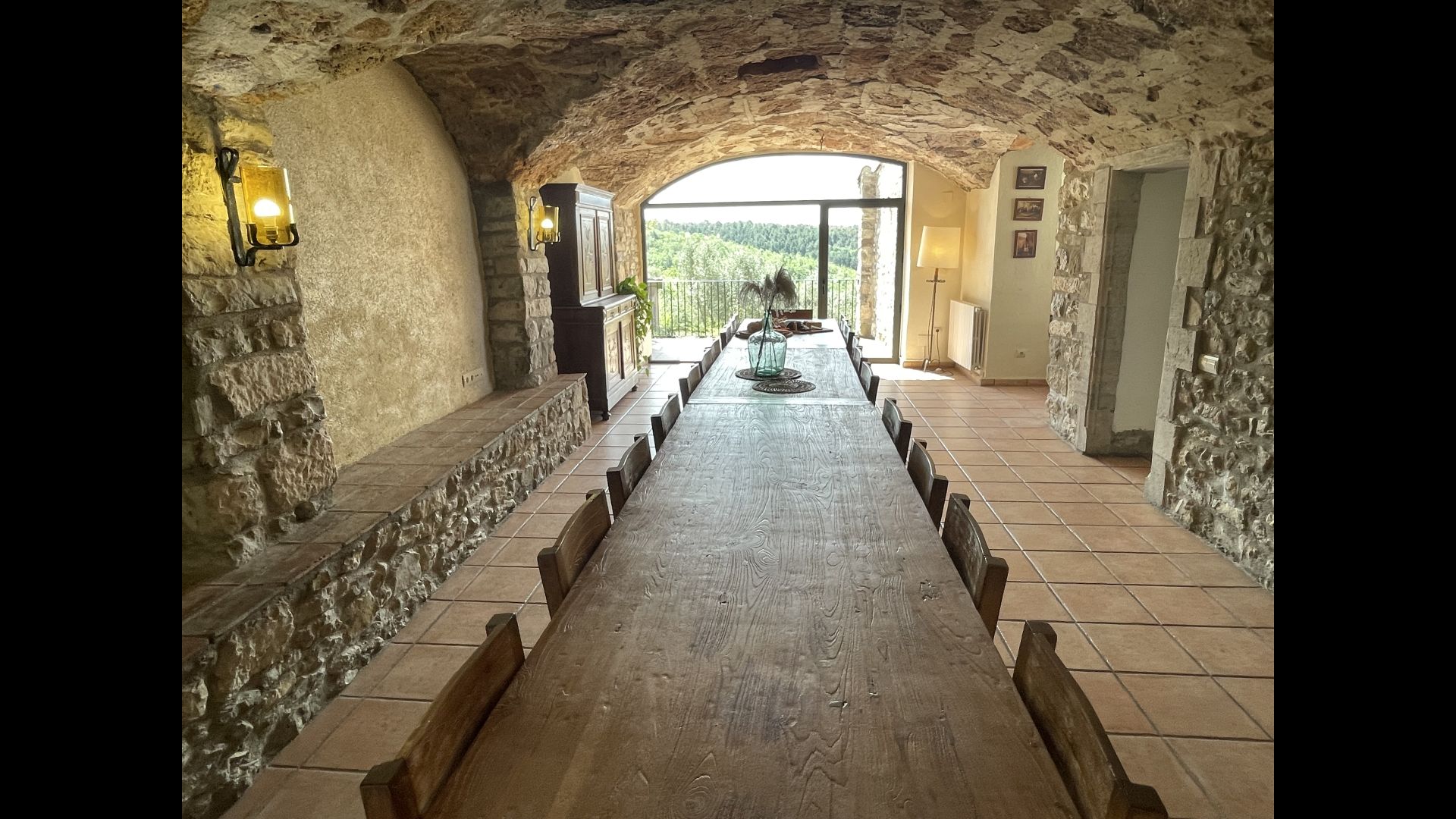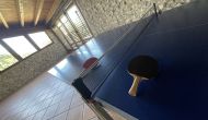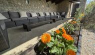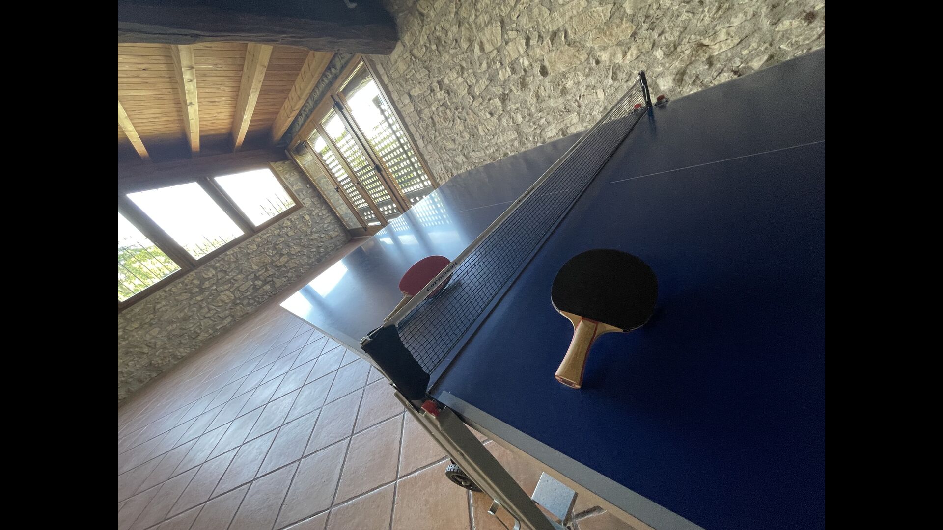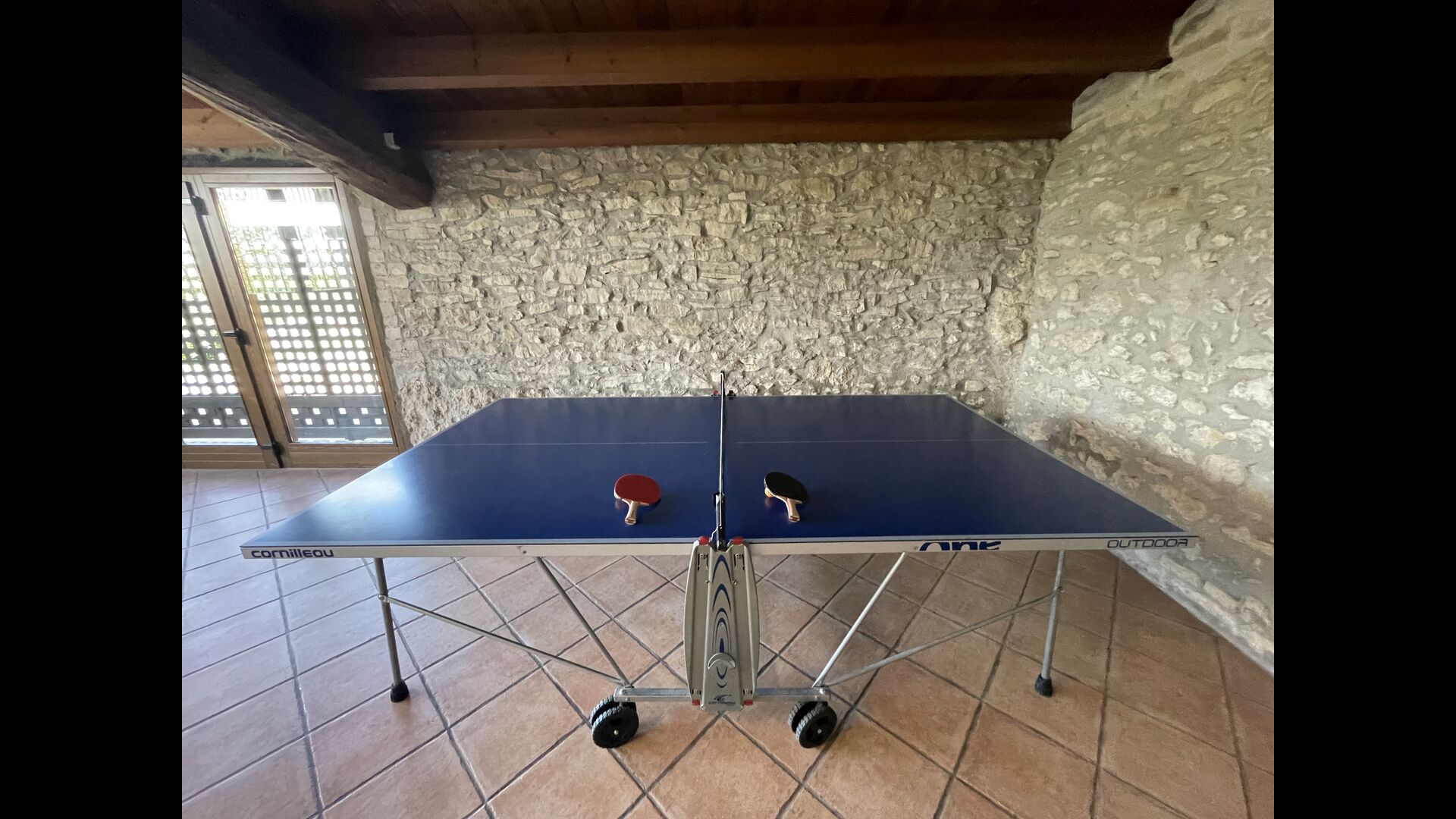 A la planta baixa trobareu el pati gran amb terrassa coberta, barbacoa i una bonica mirada al paisatge. També hi ha el saló amb TV i una acollidora llar de foc, una cuina totalment equipada, amb una gran taula i cadires, així com el menjador amb una taula llarga tradicional. Hi ha una habitació doble a la planta baixa, accessible per a minusvàlids. L'habitació té un bany privat. La sala de jocs de la casa també es troba a la planta baixa i al jardí hi ha un parc infantil amb gronxadors, la piscina i una < strong>pista polivalent (bàsquet i futbol). Tota la zona exterior està situada en un entorn excel·lent.