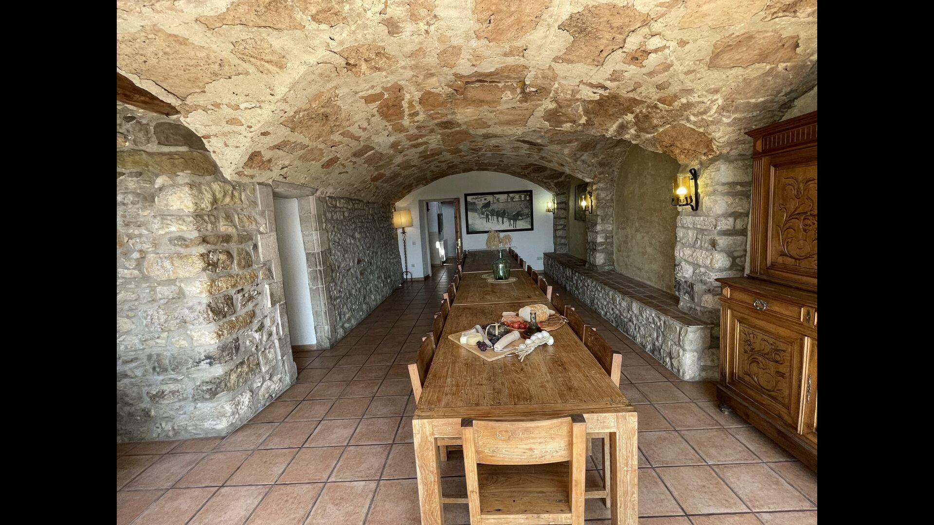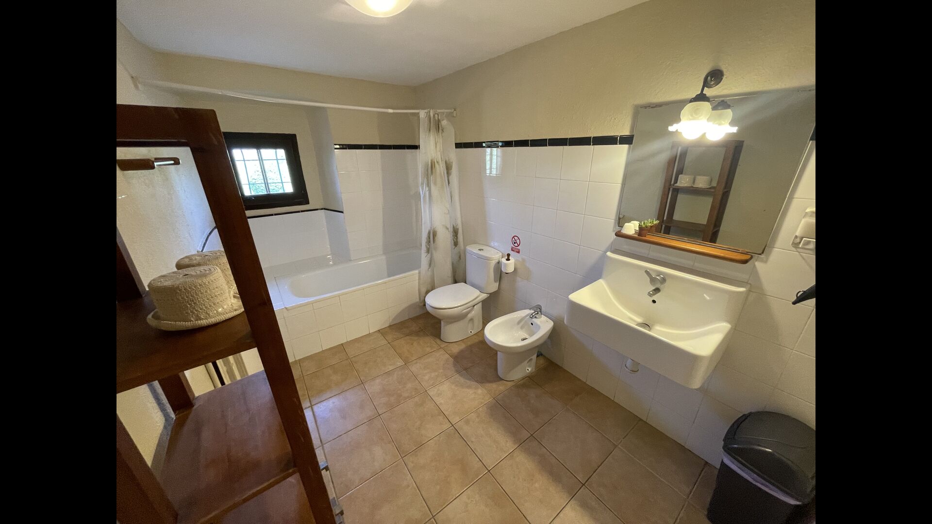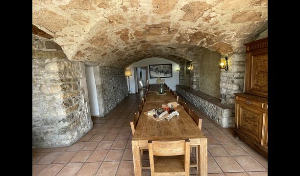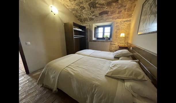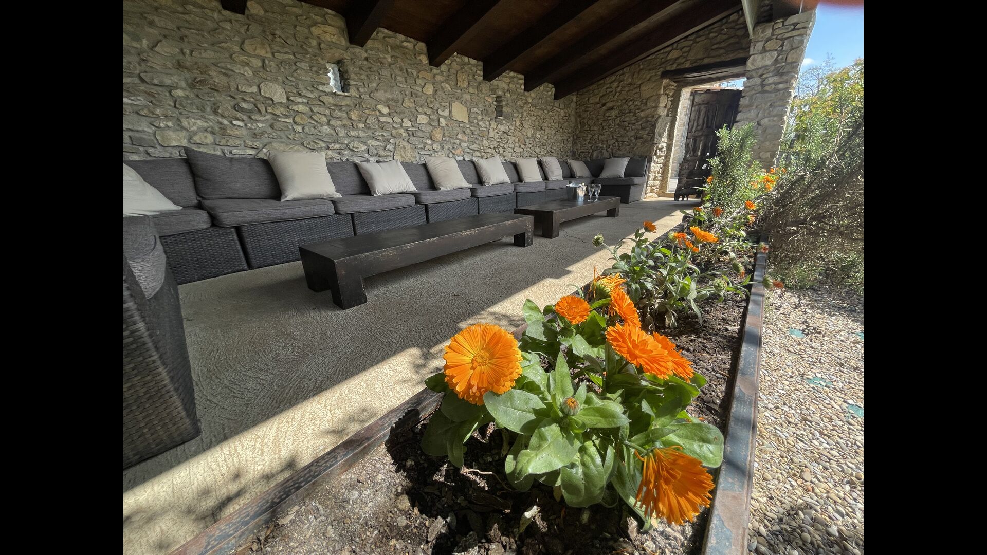 A la planta baixa trobareu el pati gran amb terrassa coberta, barbacoa i una bonica mirada al paisatge. També hi ha el saló amb TV i una acollidora llar de foc, una cuina totalment equipada, amb una gran taula i cadires, així com el menjador amb una taula llarga tradicional. Hi ha una habitació doble a la planta baixa, accessible per a minusvàlids. L'habitació té un bany privat. La sala de jocs de la casa també es troba a la planta baixa i al jardí hi ha un parc infantil amb gronxadors, la piscina i una < strong>pista polivalent (bàsquet i futbol). Tota la zona exterior està situada en un entorn excel·lent.