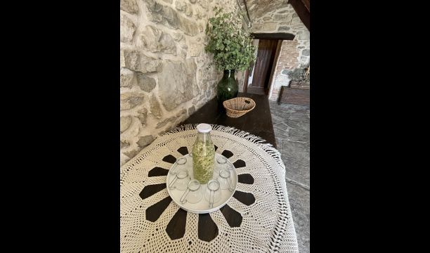 La casa té capacitat per a 20 (+3) persones i està envoltada de jardí i arbres fruiters i situada en un entorn natural magnífic i a només cinc minuts caminant de les coves prehistòriques del Toll. A 800 metres d'altitud, podreu gaudir d'un paisatge esplèndid amb una vista de totes les serralades de la Catalunya central i del Prepirineu.