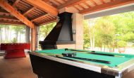 There is a large living room with sofa area and flat-screen TV, billiards and table football. There is also a small bedroom with bunk beds and a bathroom with shower on the ground floor.
