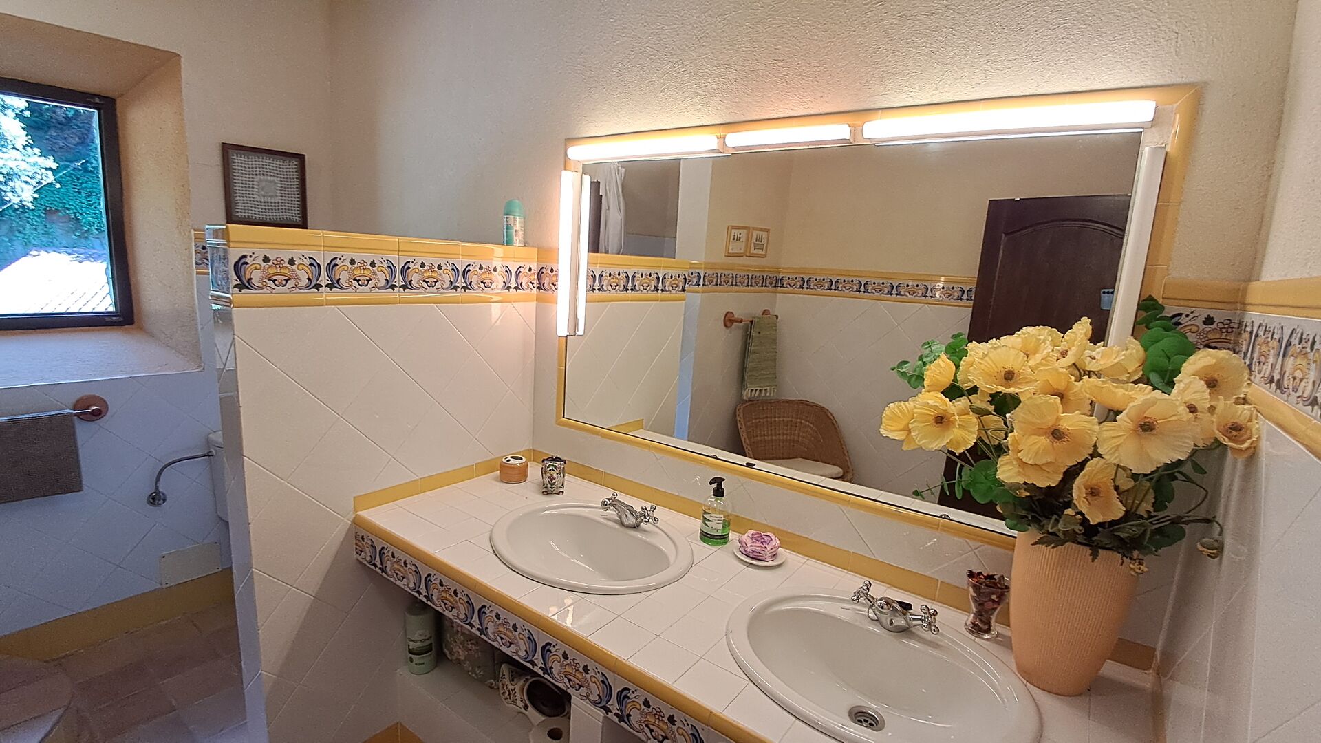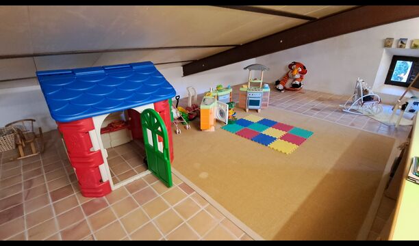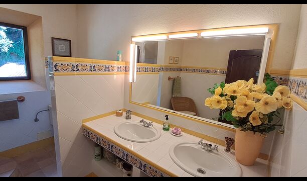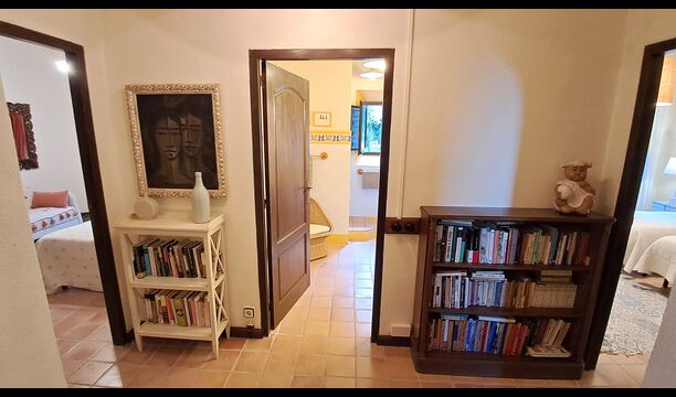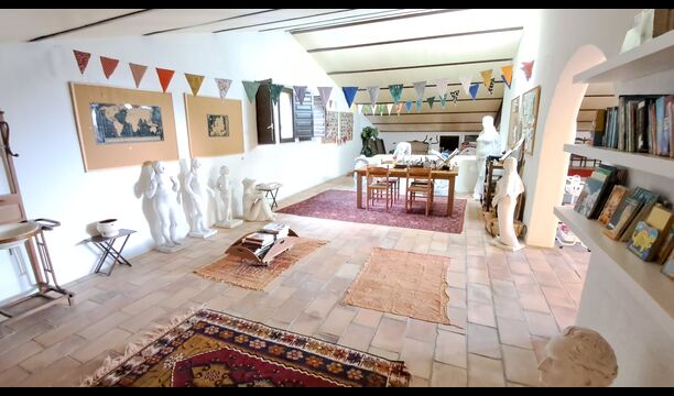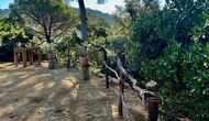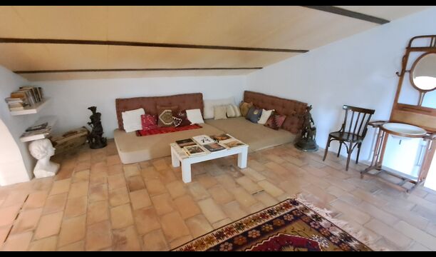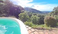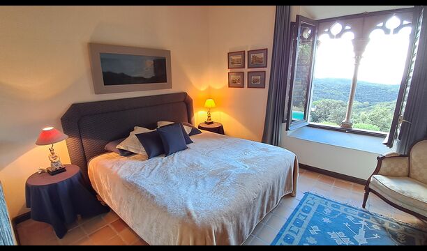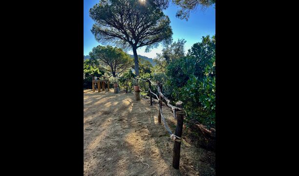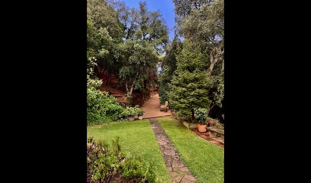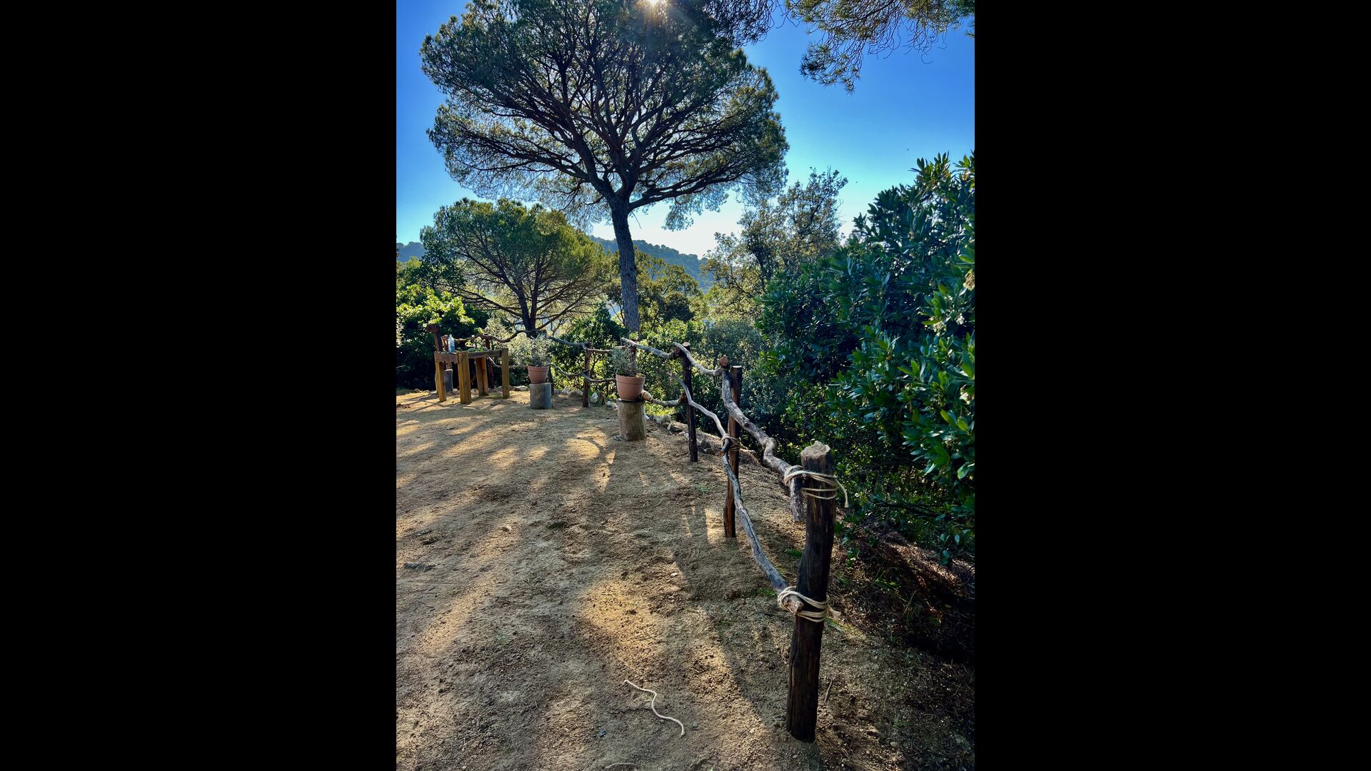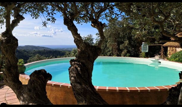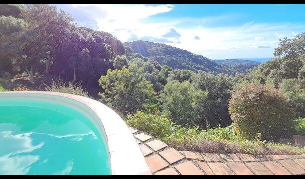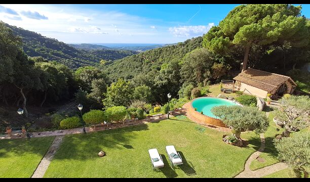 La casa està situada a uns 200 metres d'altitud i davant s'obre la vall fins al mar Mediterrani, que podeu contemplar, i sobretot en dies clars, és una vista increïble, amb el color tan especial que té aquest mar. La vall està coberta de bosc verd, ja que la propietat de la casa s'estén més de 2 quilòmetres vall avall amb bosc protegit. Hi ha molts petits passejos diferents, acuradament marcats amb pedres, i diferents petits "jocs" per als nens. Per als adults, tenen el que anomenen "camp de petanca de fons" fent camí per un camí de grava, fent que el joc sigui desafiant, diferent i divertit!