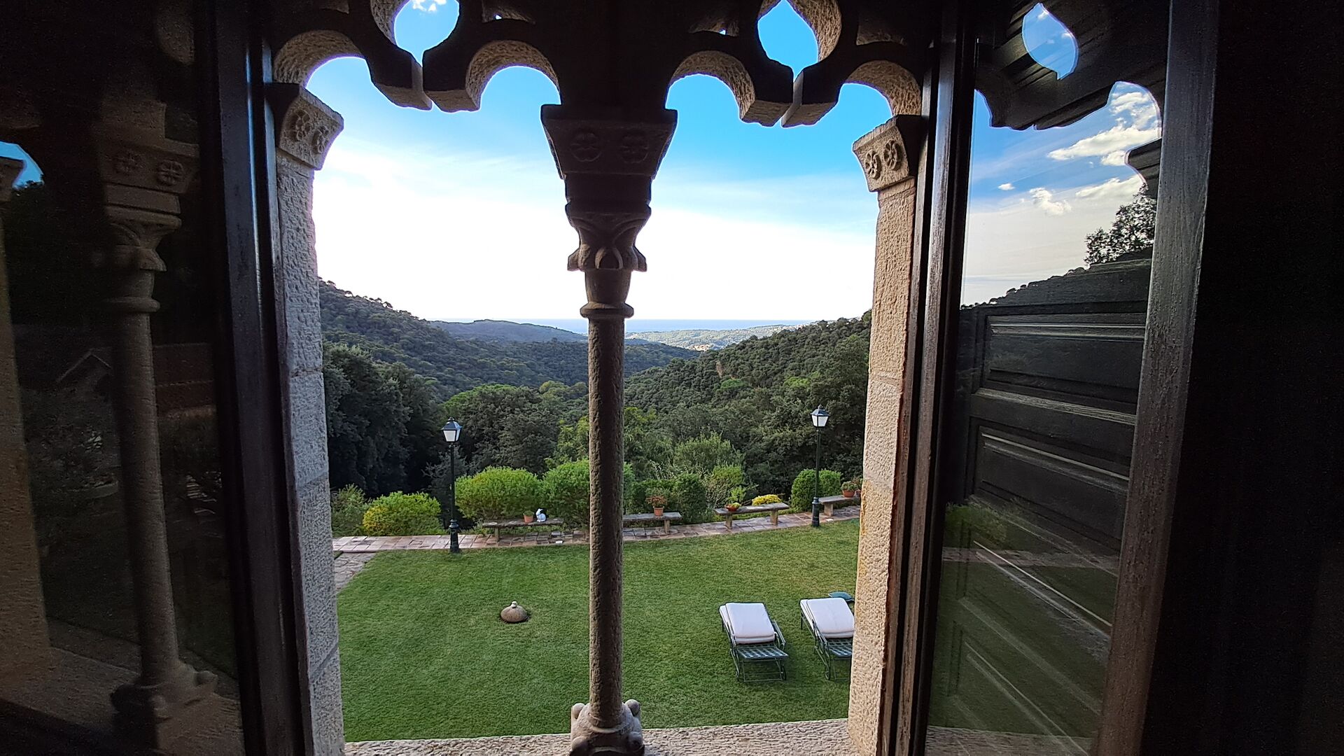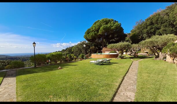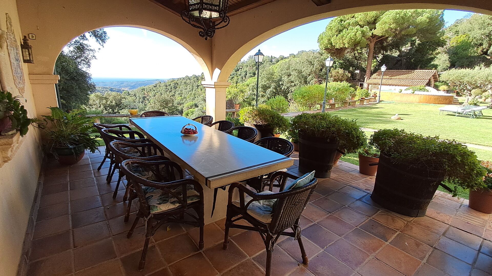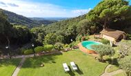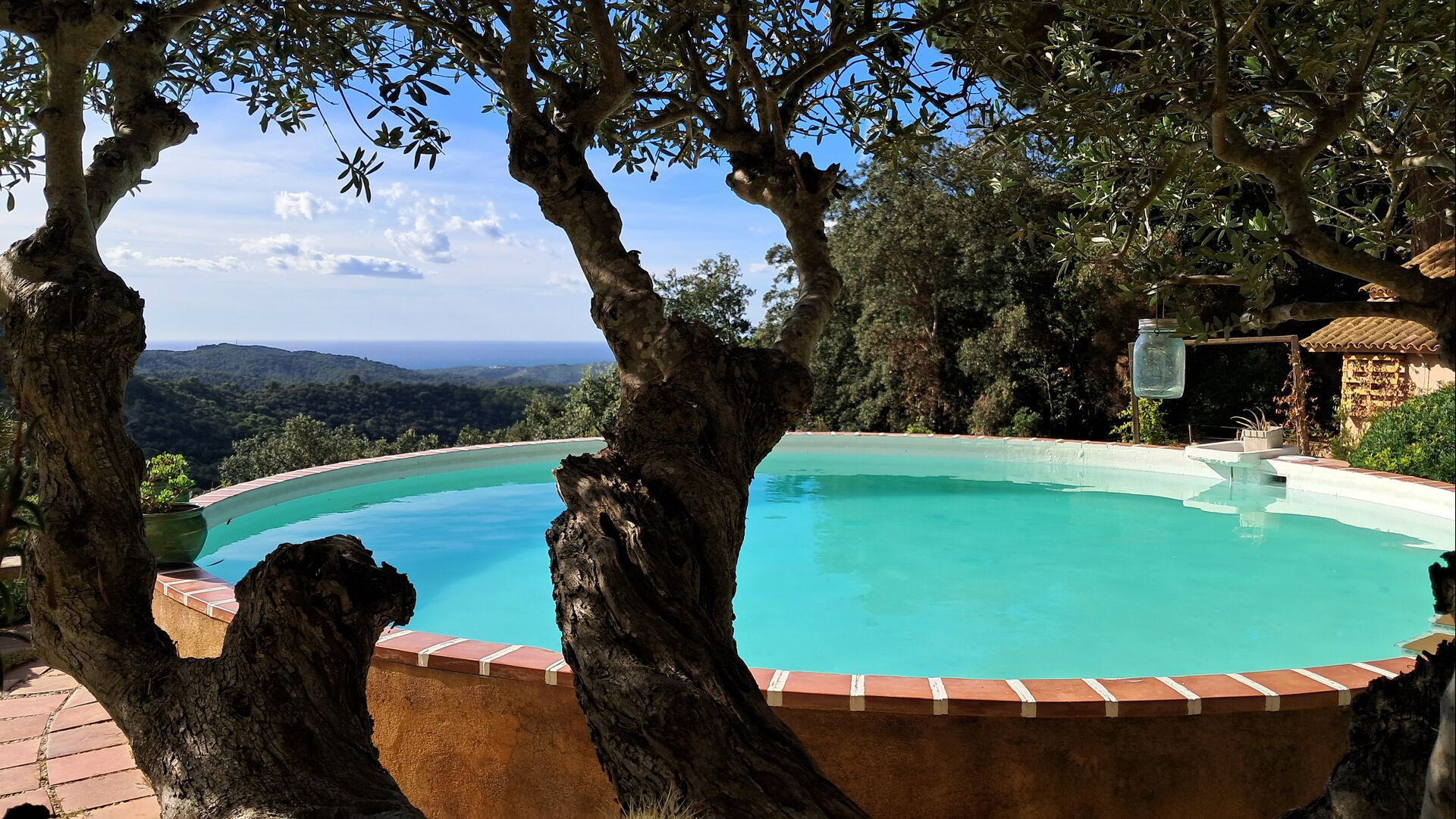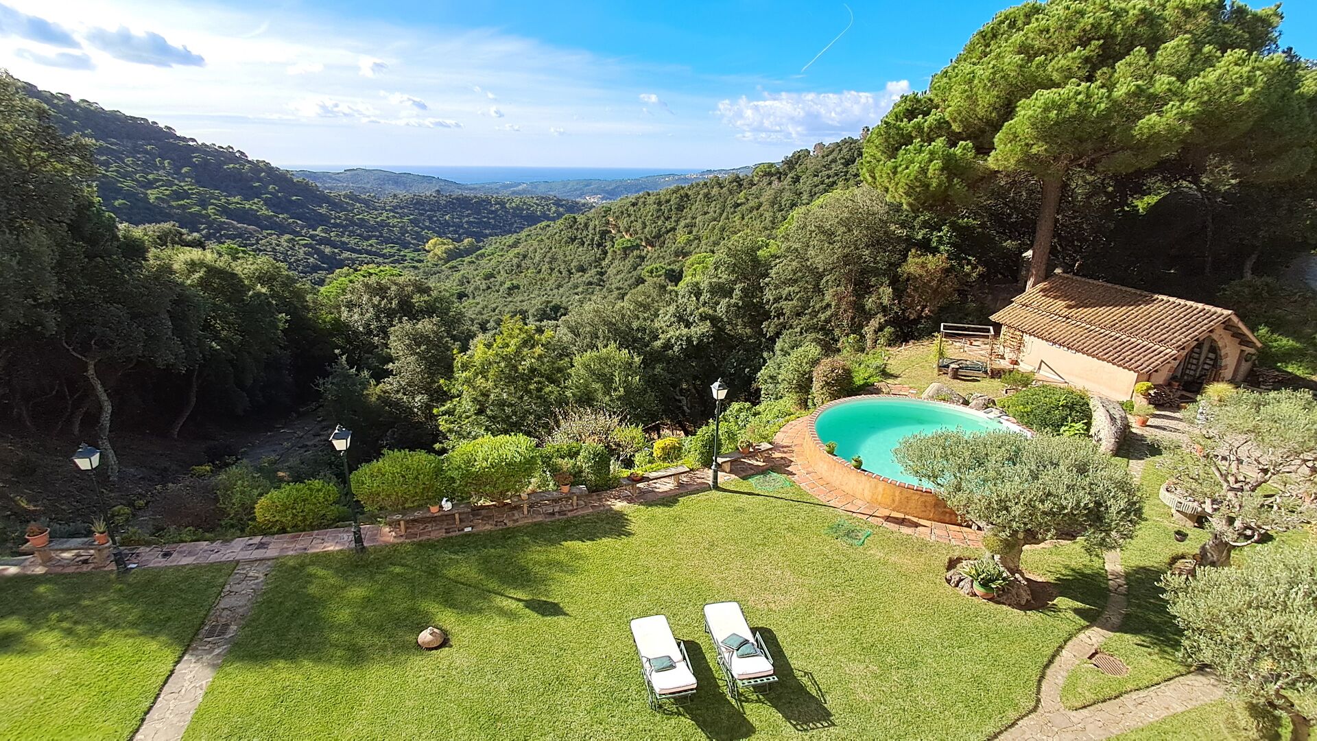 A l'exterior, la gespa amb algunes gandules, la terrassa i el racó de sofàs al costat de la piscina, la converteixen en un lloc fantàstic per estar-hi, no només per les impressionants vistes sobre el bosc i fins al mar Mediterrani.