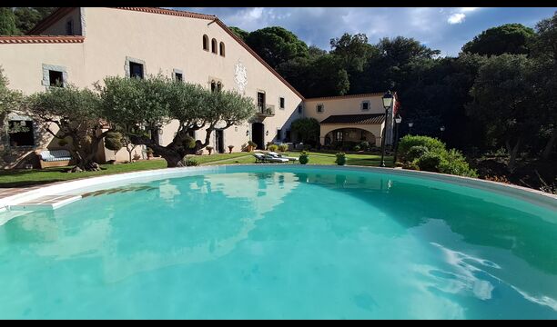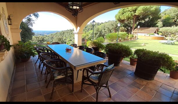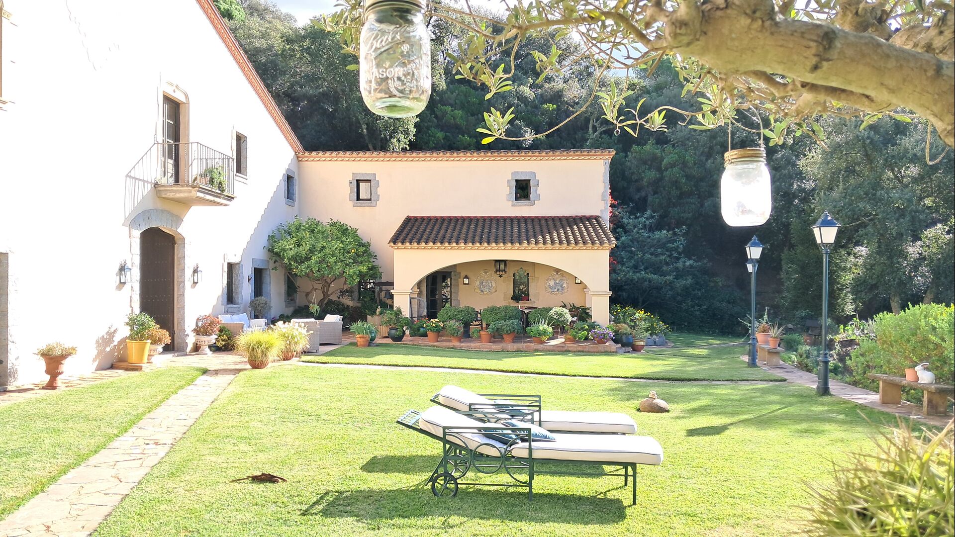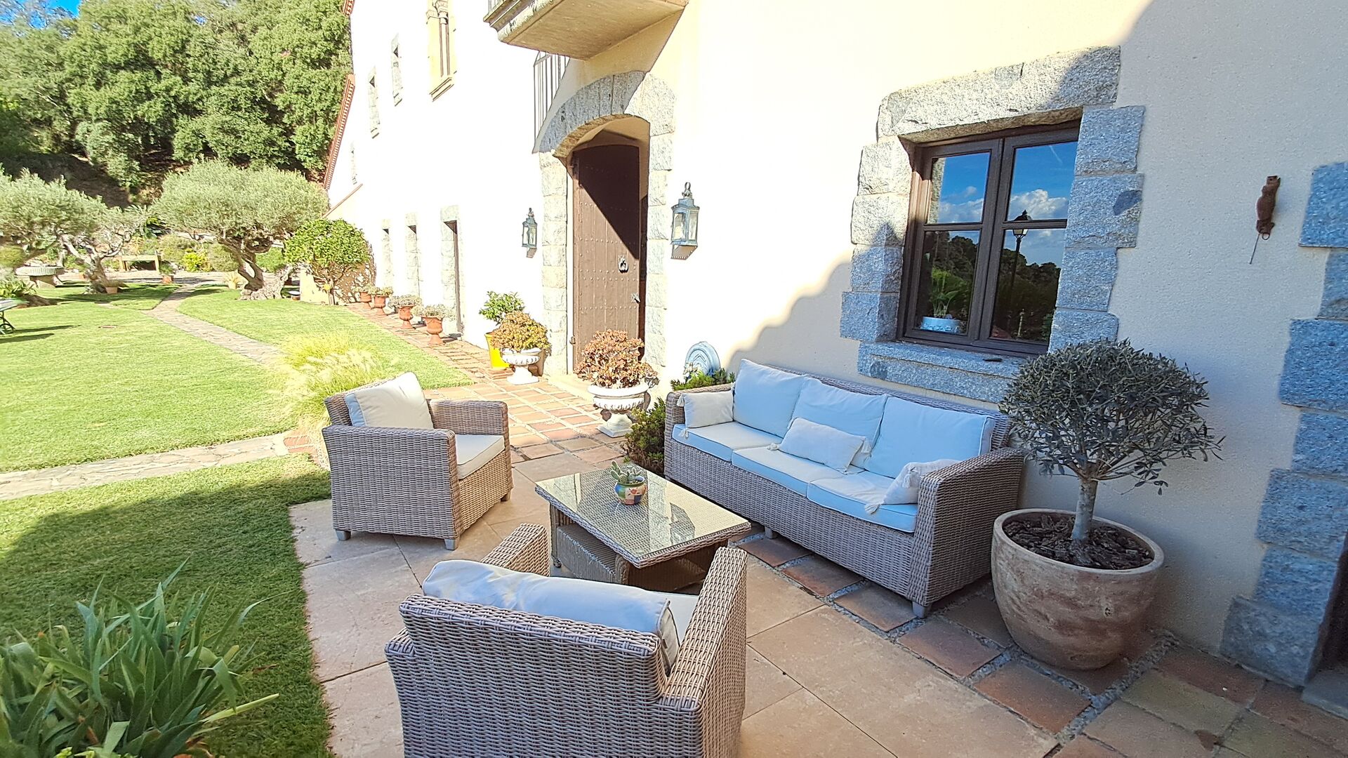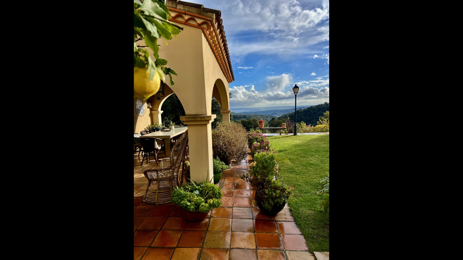 A l'exterior, la gespa amb algunes gandules, la terrassa i el racó de sofàs al costat de la piscina, la converteixen en un lloc fantàstic per estar-hi, no només per les impressionants vistes sobre el bosc i fins al mar Mediterrani.