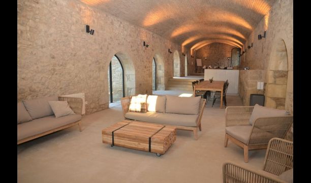 La casa està dividida en "apartaments", el que significa que les habitacions es distribueixen en unitats separades al voltant del castell, on hi ha diverses habitacions en moltes de les unitats. Hi ha un total de 6 d'aquests "apartaments" amb 9 habitacions i espai per a 26 persones en total. Amb les 9 habitacions vénen 6 banys, dels quals 4 són en suite. A més, 1 de les habitacions té accés directe a la zona de la piscina. Hi ha diverses cuines ben equipades, així com una sala d'estar amb TV de pantalla plana i diversos seients. També hi ha, en relació amb les cuines, diverses taules de menjador, perquè puguin gaudir dels àpats junts.