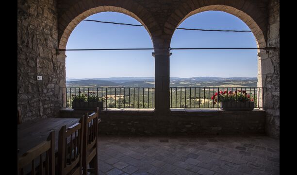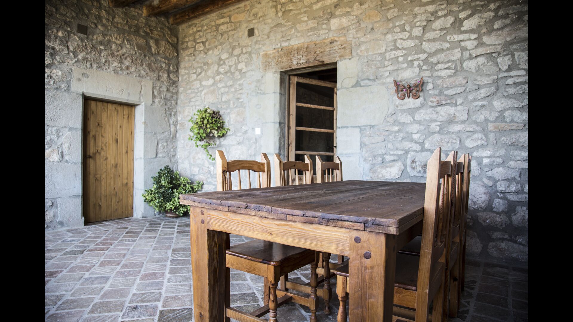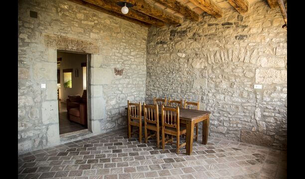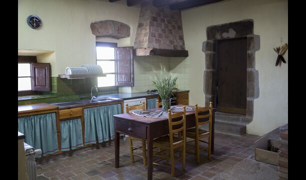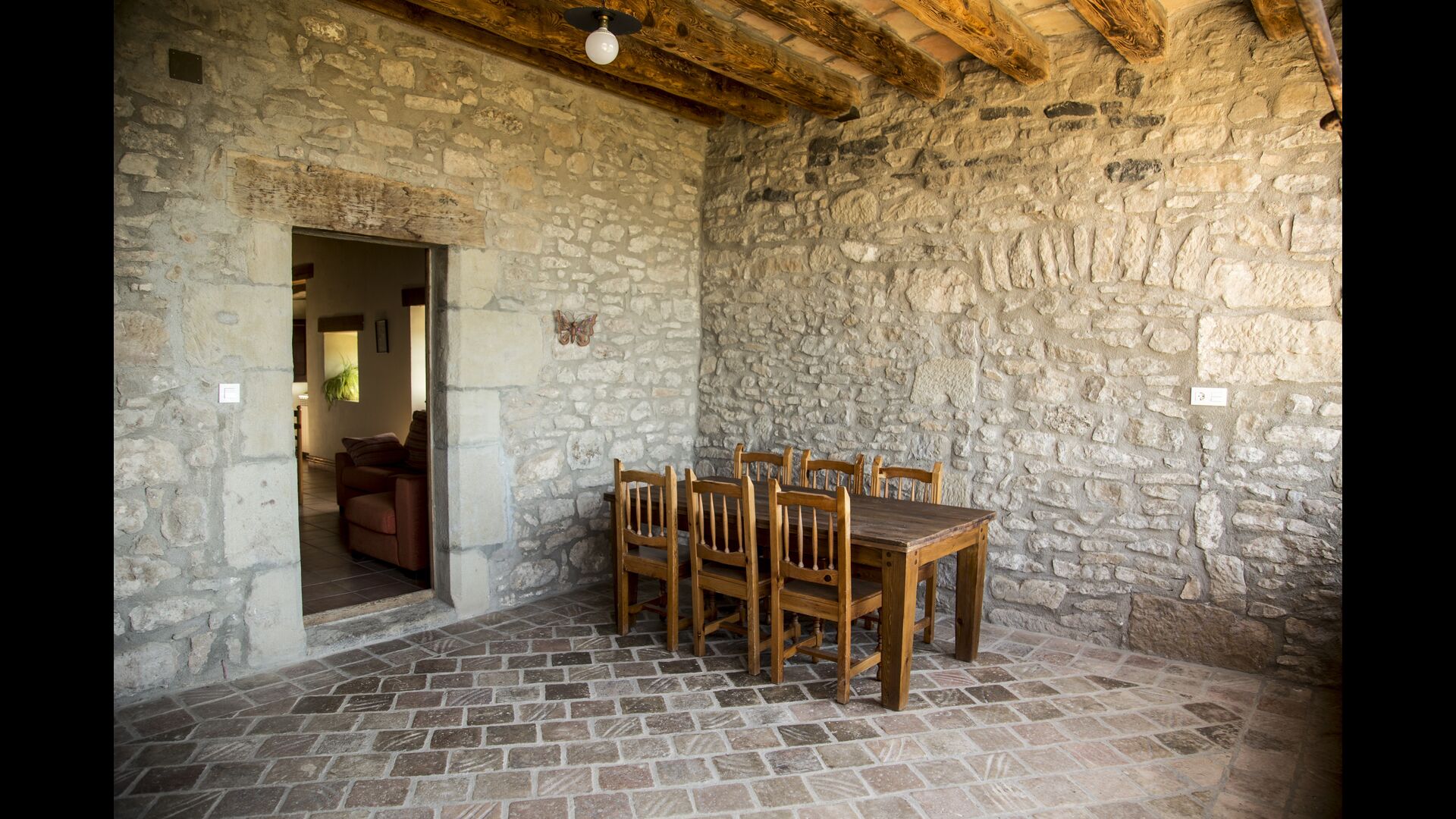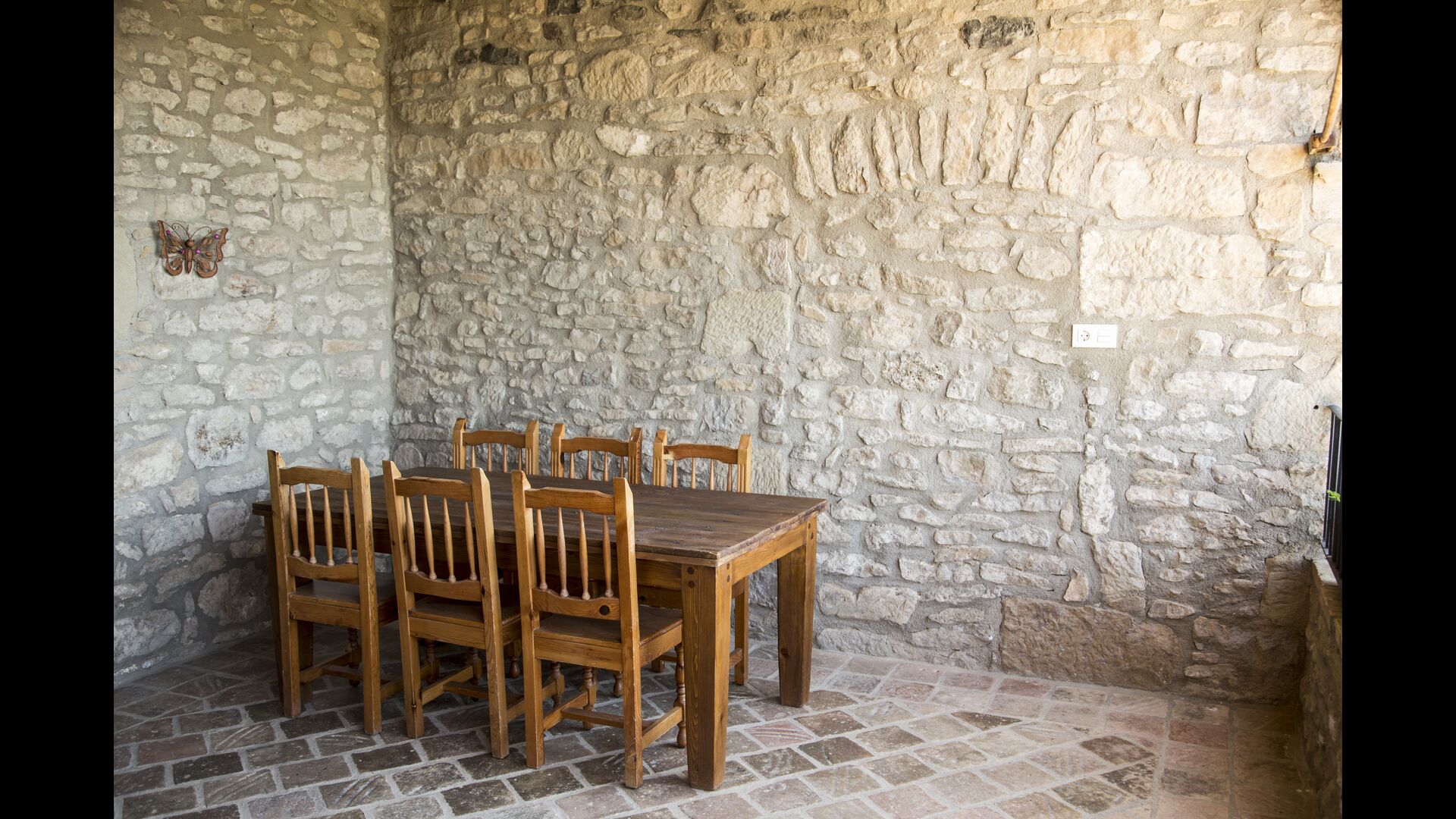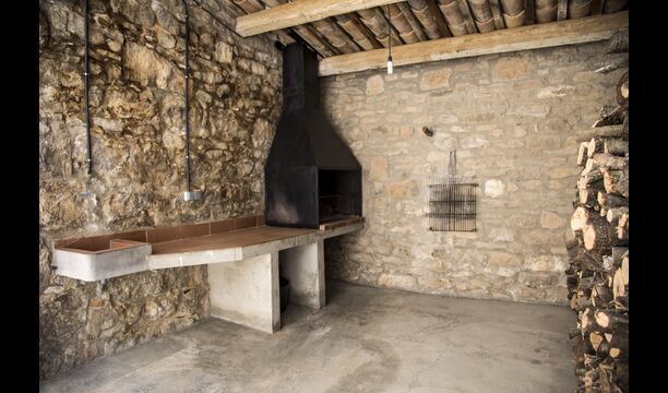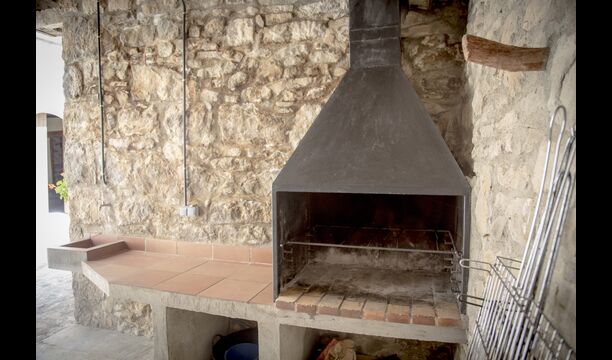 La gran terrassa coberta amb arcs de pedra calcària catalana també té una vista fenomenal. Un lloc meravellós per gaudir d’àpats a l’aire lliure, ja sigui cuinats a la zona de barbacoa o a la cuina rústica i encantadora, totalment equipada.