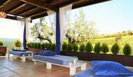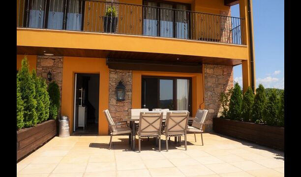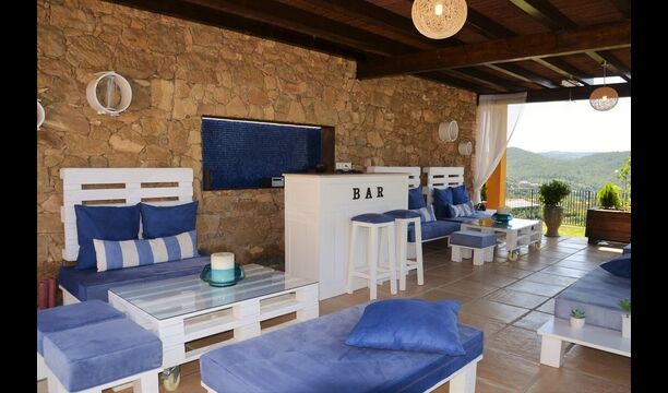 A més, hi ha un gran i gran rebedor al costat de la piscina amb barbacoa, neveres, una cuina totalment funcional amb fogons, microones, etc., així com taules de menjador. Les taules es poden moure fàcilment, de manera que sempre hi ha l'opció de moure-les fora per menjar si ho desitja. A més, hi ha una zona de sofàs i una zona de jocs juntament amb un futbolí. Els lavabos i el bany del vestíbul també s'obren per arribar abans d'hora, de manera que els propietaris poden preparar la vila mentre feu ús de les nombroses instal·lacions fins que la casa estigui a punt.