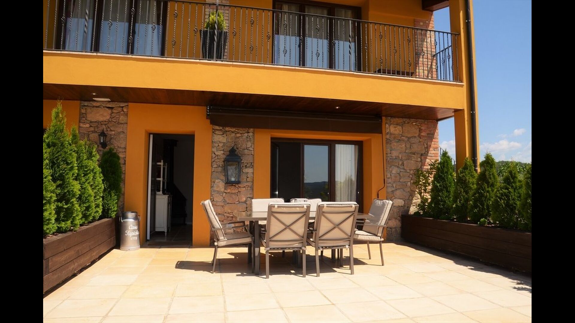 Casa Tagiales és una casa amb 330 m2 d'espai, que s'ha optimitzat per al meravellós estiu català a través d'una àmplia gamma de zones chill-out i diverses instal·lacions a l'aire lliure repartides per tot el gran terreny. Llegeix un llibre en una de les hamaques intel·ligents que pengen dels arbres, estira't en un dels matalassos de la terrassa amb música i bar a poca distància o aprofita el sol català des de les gandules. etc. – les possibilitats són infinites. Si us arriba la calor, tingueu en compte que hi ha unapiscina gran de 10x5 metres just davant vostre; per descomptat, tancat i amb una part addicional i menys profunda per als més petits del grup, perquè tothom pugui fer servir l'aigua refrescant. Parlant dels més petits, també hi ha una zona de joc amb un llit elàstic, una caixa de sorra, un tobogan i gronxadors. Al voltant i al voltant del sòl hi trobareu múltiples terrasses, des d'on podreu gaudir de la vista excepcional del camp català dels voltants, on els pagesos conreen i crien vaques. pasturar. Una part bastant gran de la vista en realitat pertany a la casa – el terreny s'estén per unes increïbles 100 hectàrees.