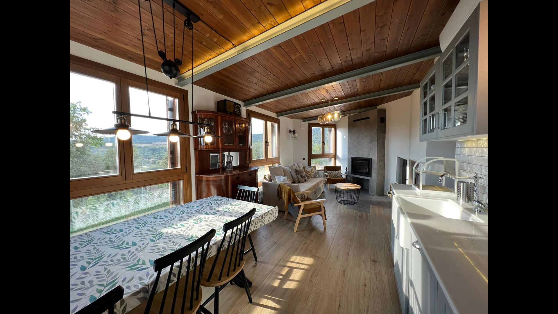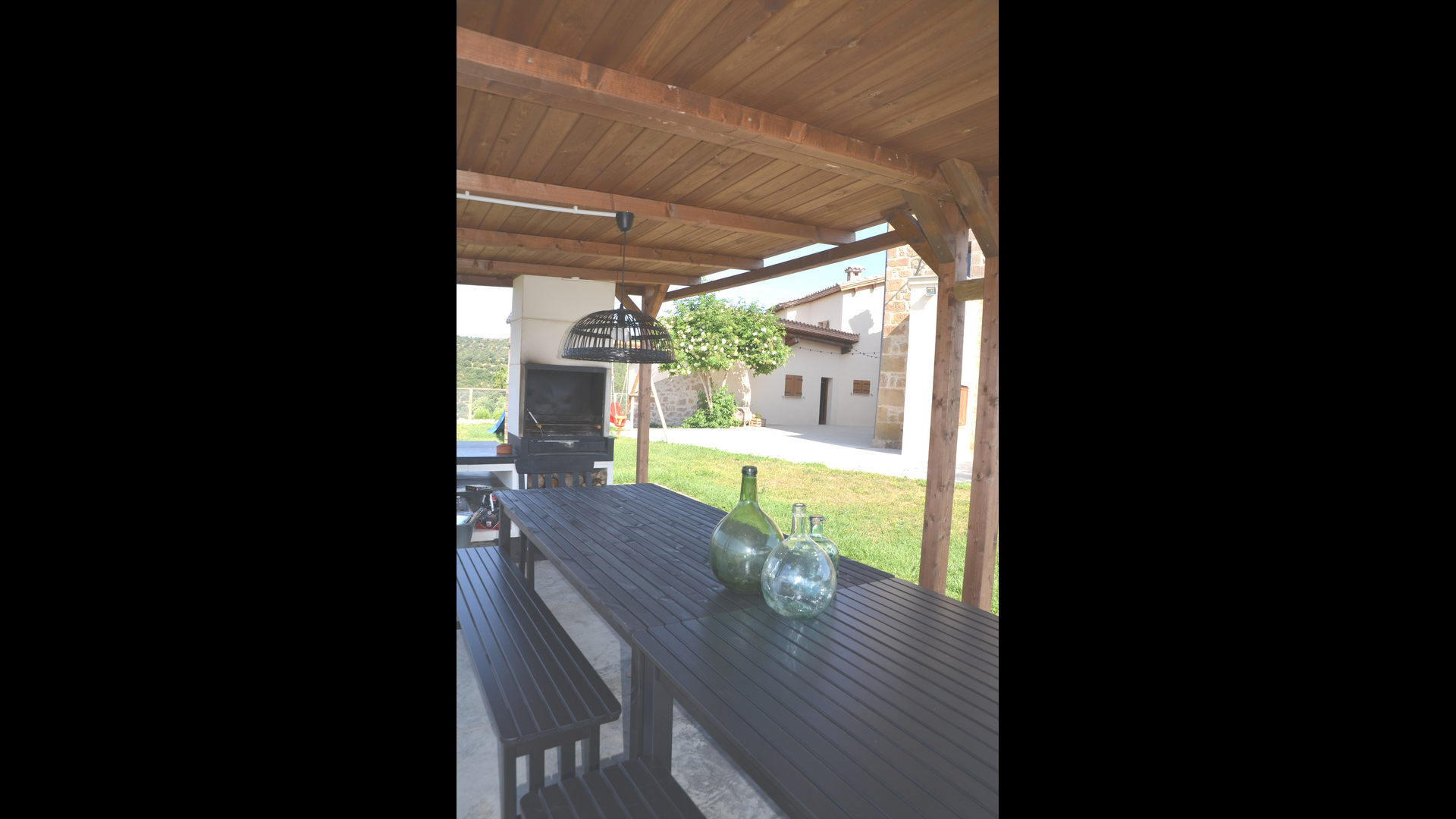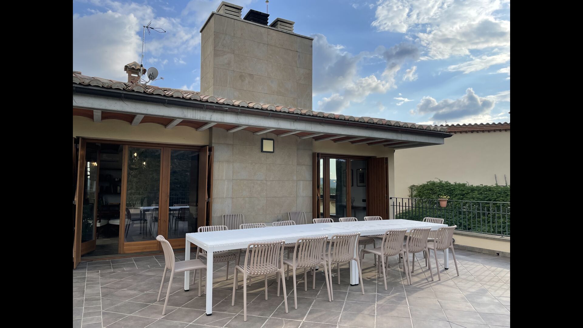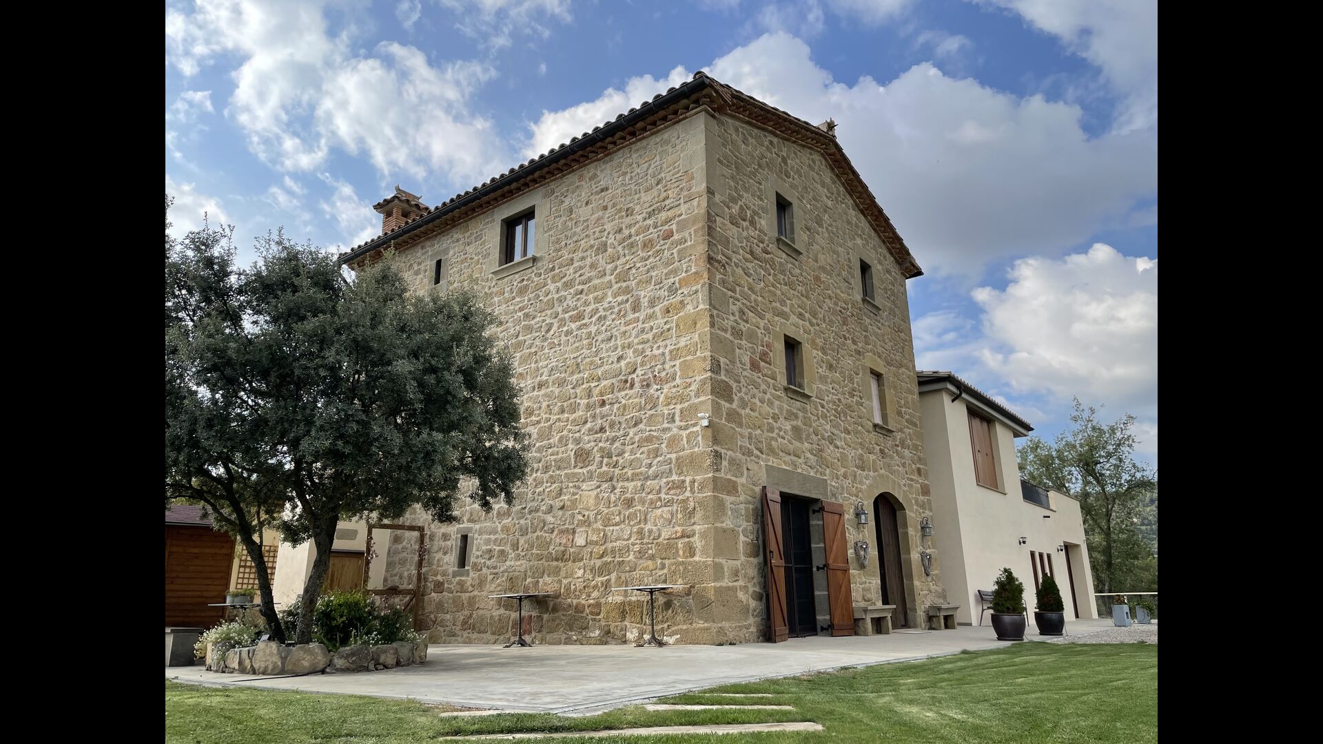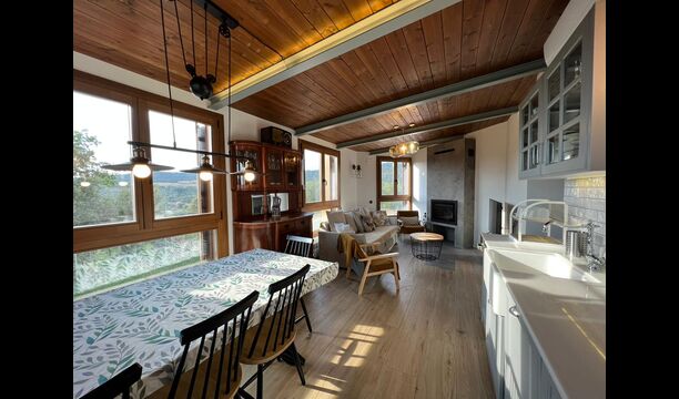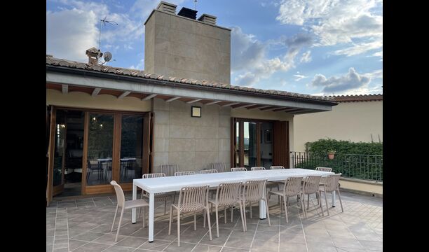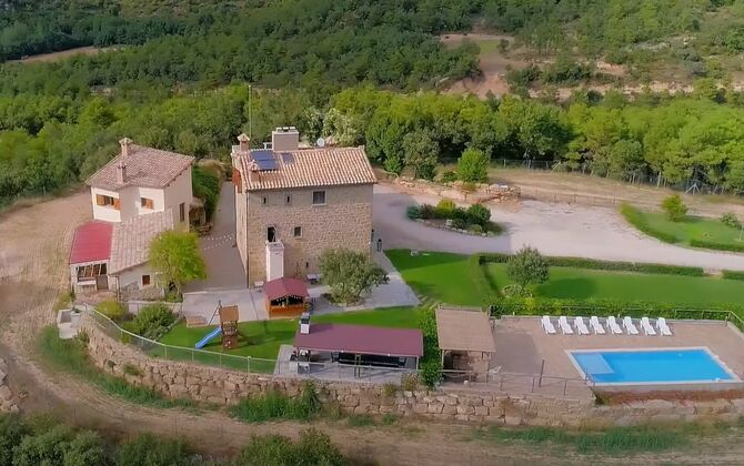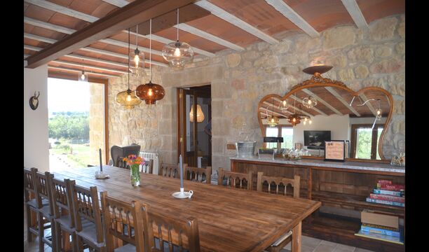 Des de la terrassa podreu gaudir de les impressionants vistes dels verds turons catalans. Els àpats a l'aire lliure es poden gaudir a la taula llarga de la gran terrassa. Només es poden recomanar menjars casolans, ja que la cuina interior blanca i moderna també es complementa amb una cuina exterior coberta i luxosa. El Oreña també és molt familiar. A la casa de vacances hi ha un petit parc infantil amb tobogan i gronxadors i podeu vigilar els nens quan neden i juguen a la piscina tancada. zona de piscina.