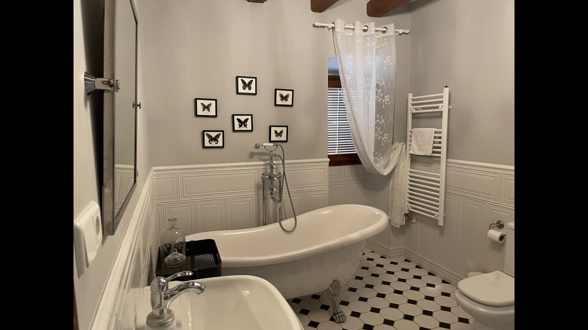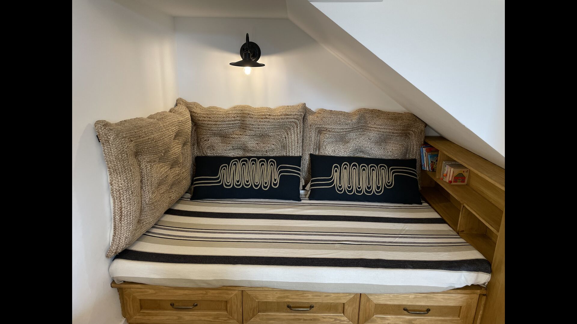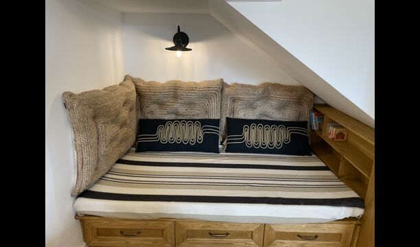 També a la planta baixa, trobeu la “habitació secreta”. És una suite, a la qual entreu lliscant la prestatgeria, és just d'una història de crims d'una mansió anglesa. . L'habitació en si és perfecta per a una família, ja que hi ha un llit doble gran i després una alcova amb un còmode sofà encastat, agradable per a un o dos nens petits o per relaxar-se. Un preciós bany amb dutxa efecte pluja.