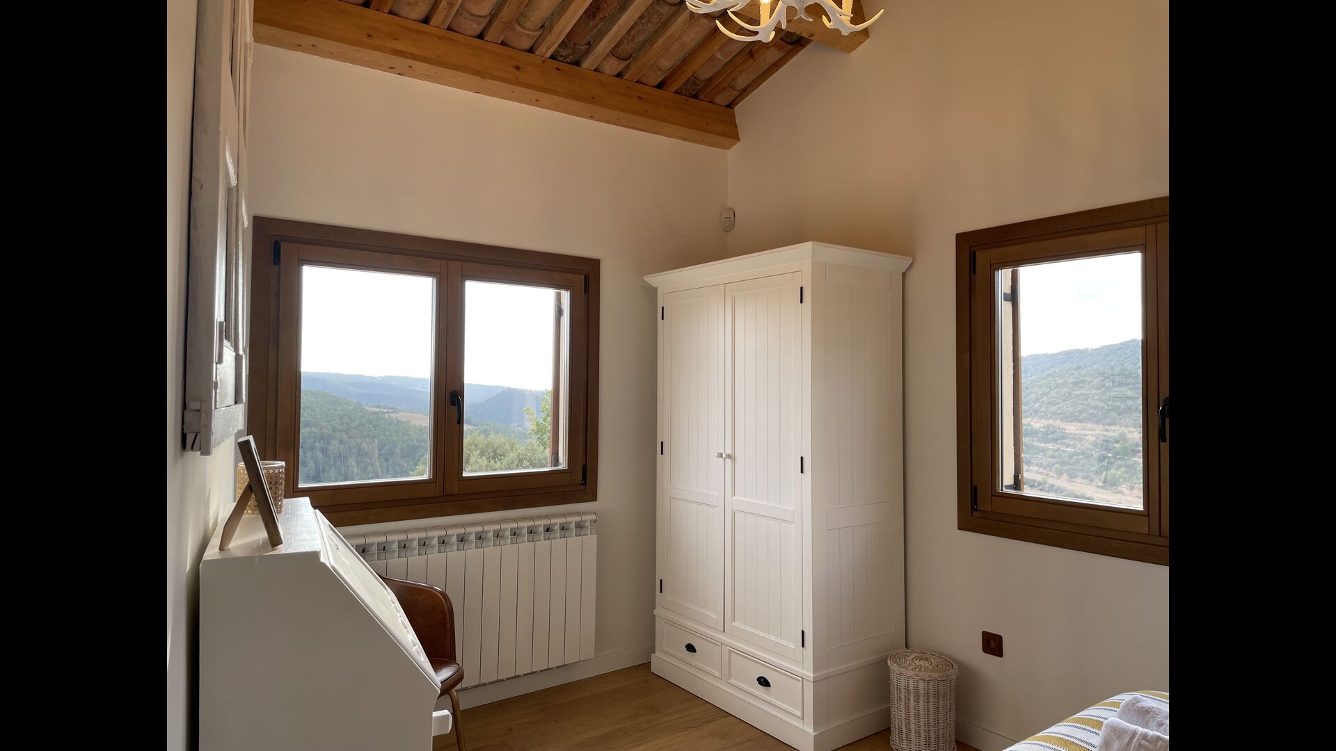 A la primera planta, un acollidor dormitori ambllit de matrimoni i vistes a dos costats. També hi ha un escriptori si necessiteu retirar-vos per escriure un parell de correus electrònics i, finalment, un bonic bany amb dutxa en suite.