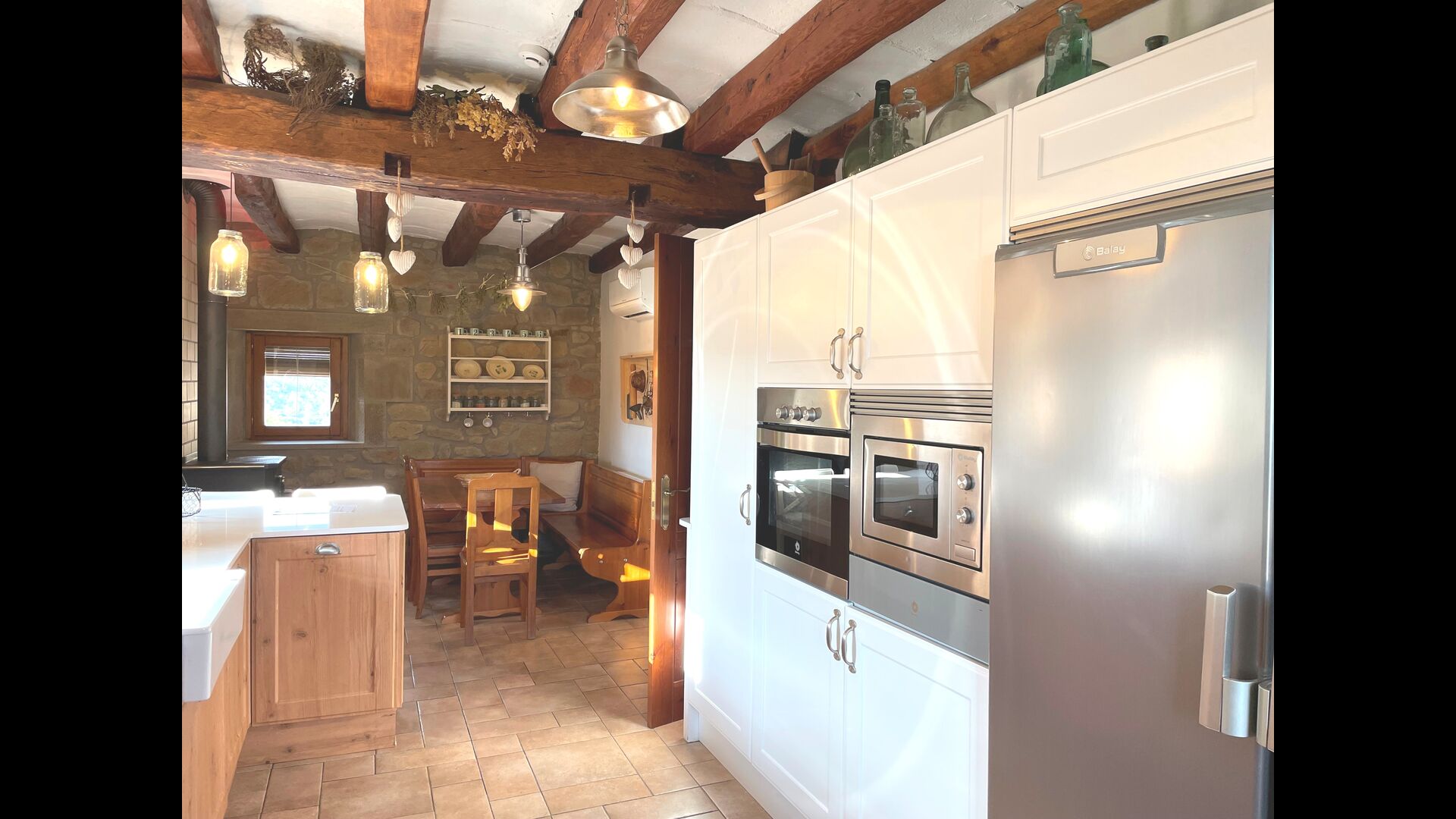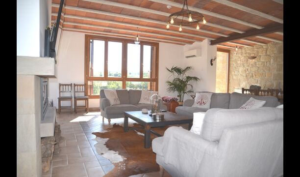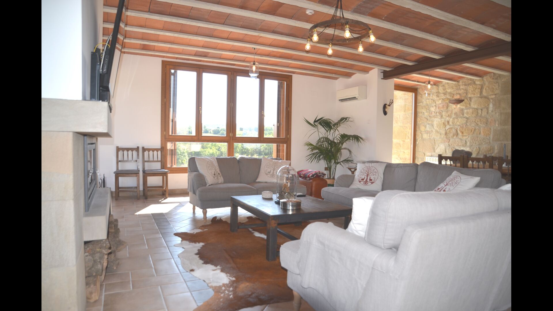 El Oreña té una bonica sala gran, amb grans finestrals que fan que l'habitació sigui lluminosa i espaiosa, i aquí es poden gaudir dels àpats interiors a la taula del menjador. A la lluminosa sala d'estar, que es pot refrescar amb l'aire condicionat, hi ha una acollidora zona de sofàs on podreu relaxar-vos i, per exemple, jugar a les nits. La sala d'estar té una sortida cap a una gran terrassa, que, entre altres coses, compta amb una llarga taula de menjador, un gronxador i unes vistes increïbles.