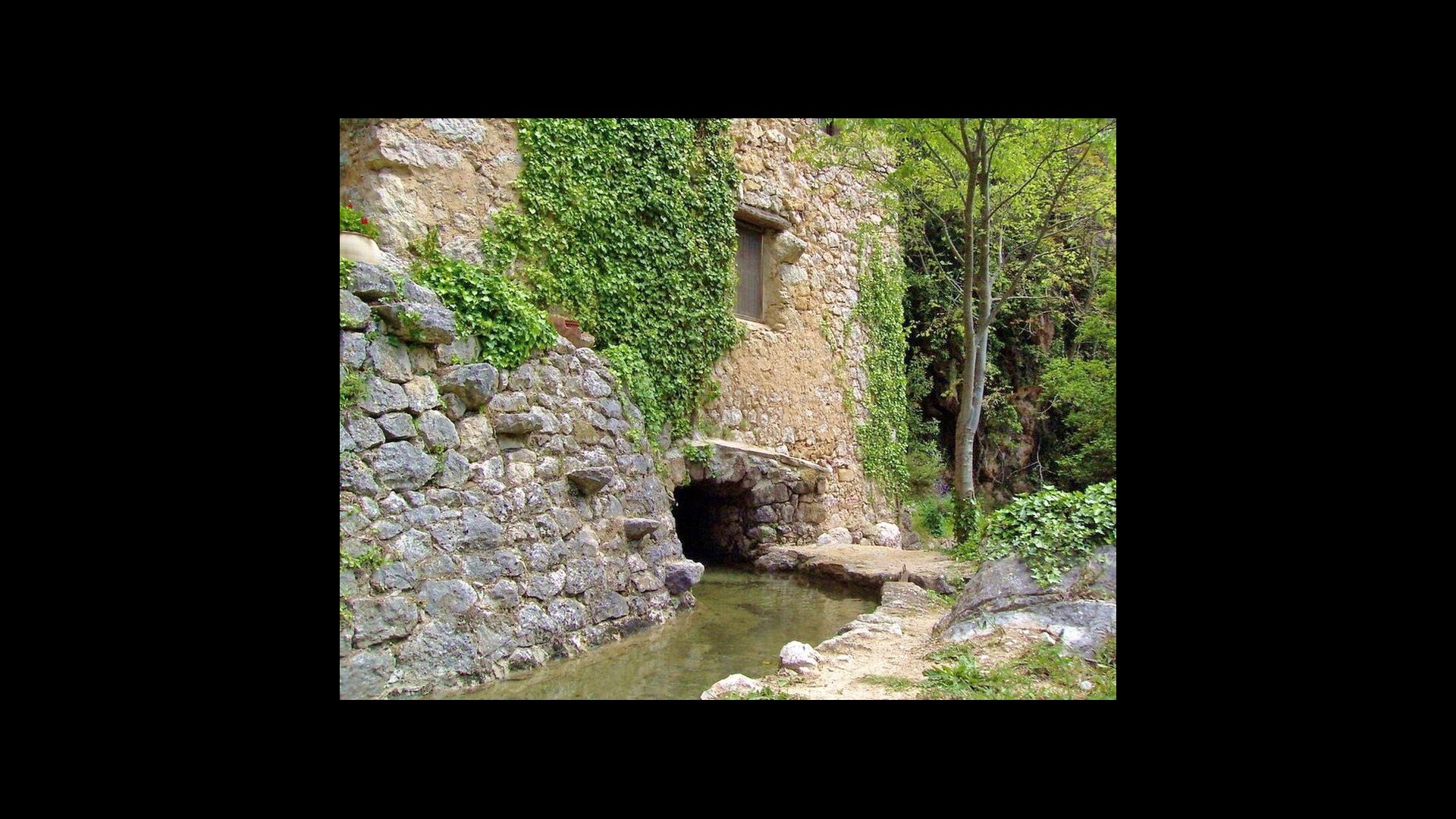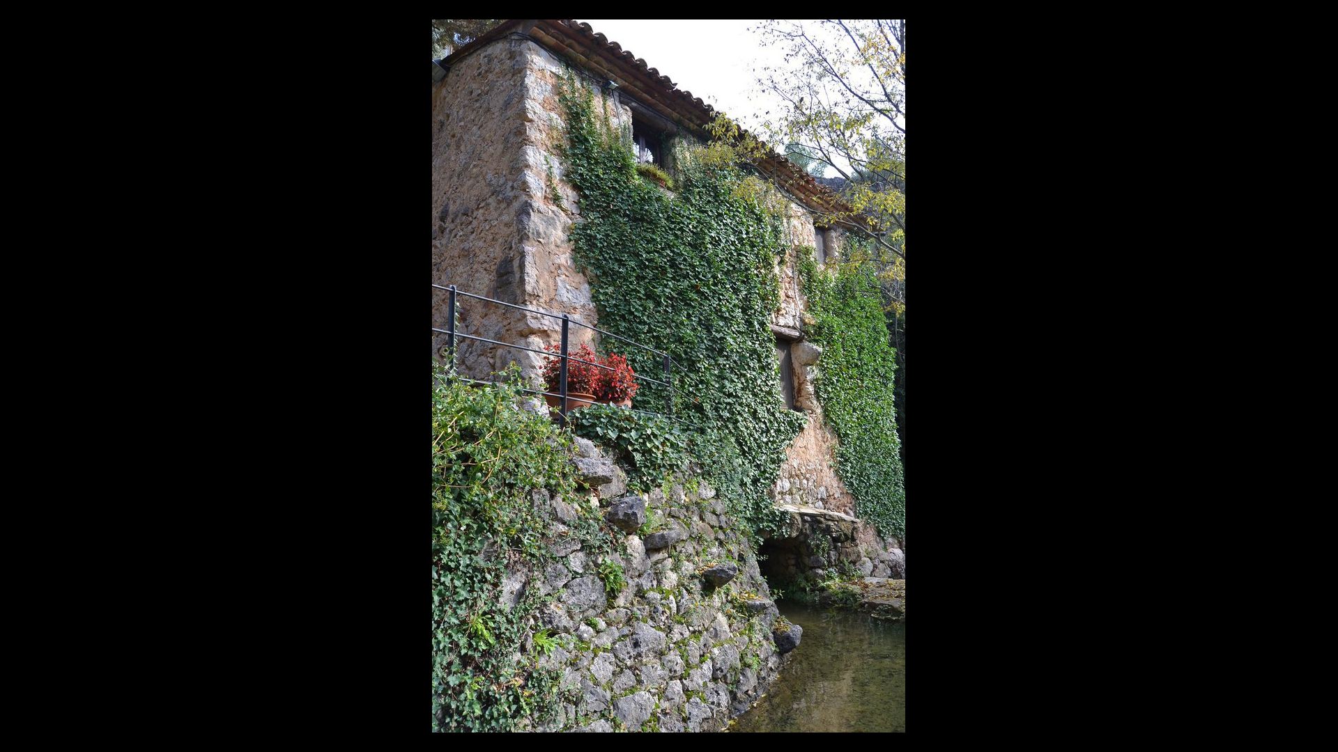 L'ambient exterior és difícil de descriure amb paraules, ja que la ubicació és molt especial. La cascada aporta frescor i les roques que l'envolten donen molts racons ombrívols i una sensació de ser un amb la natura. Els sistemes de canals utilitzats per dirigir l'aigua per crear l'energia per al molí d'aigua, s'han conduït de manera intel·ligent a piscina, on aquesta aigua neta, just de la fonta pocs quilòmetres de la casa, passa per la piscina de 45m de llargada, i després cap al riu de nou a l'altre extrem. També pots nedar sota la cascada i diferents llocs del riu.
