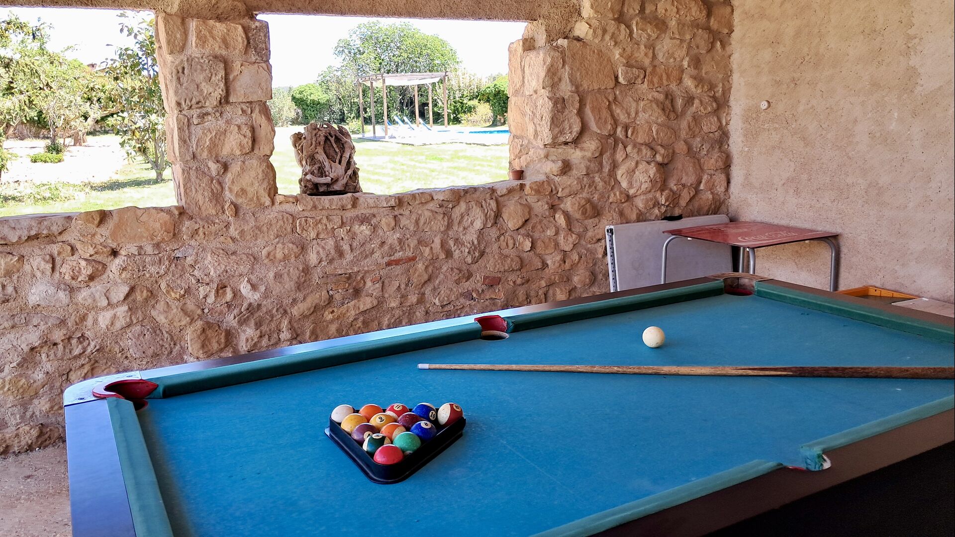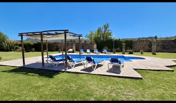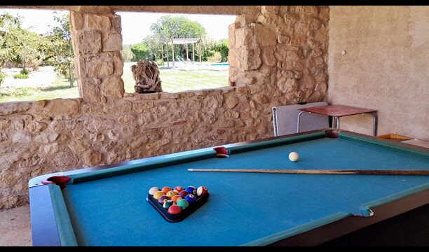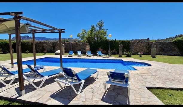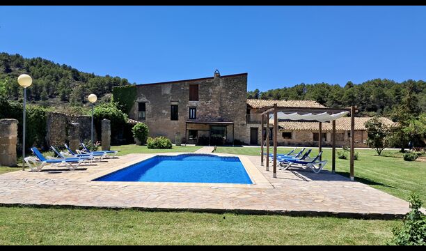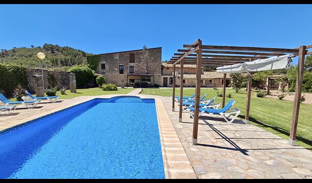 Mas de Rei Pedro is an authentic Catalan holiday home for 11 + 2 persons - very suitable for large or multiple families and groups. The house has a lovely garden with 50 m2 large swimming pool and an outdoor barbecue and a roofed pool table. The house possesses additionally 5 bedrooms and a terrace on the first floor. From the terrace you will have a wonderful view of the garden and the cosy town Horta de Sant Joan, which is within walking distance from Mas de Rei Pedro. Pablo Picasso lived in the little town and, among other things, he painted his first cubist painting here (a very good and unique Picasso museum is also located in the town).