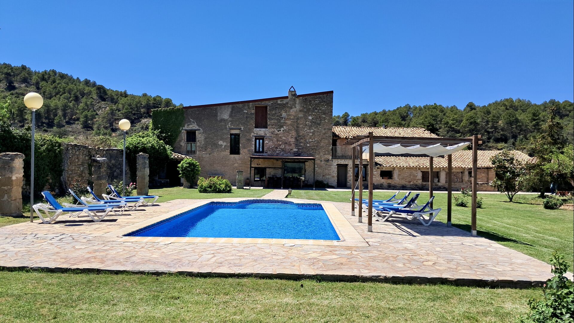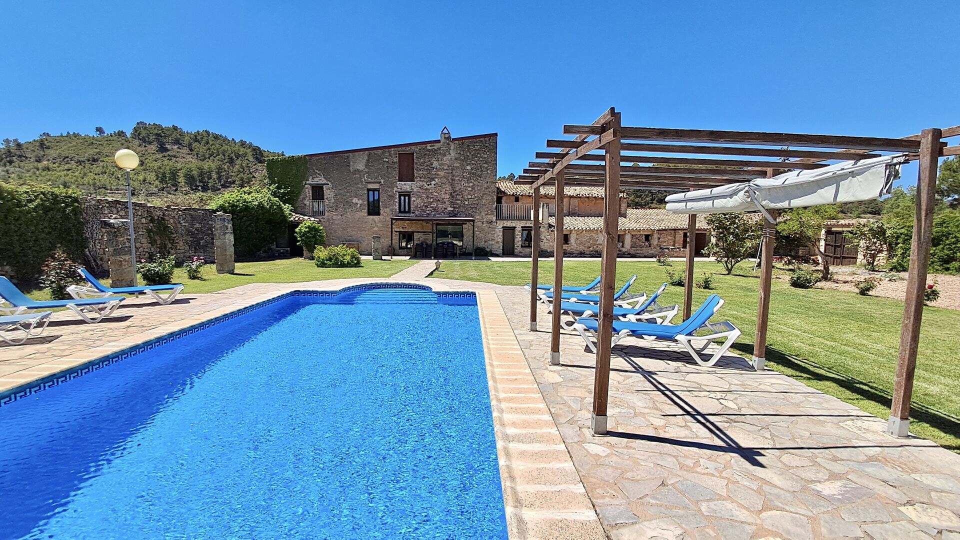 Furthermore, you can play a game of pool on the roofed outdoor pool table or enjoy a homemade dinner during the Spanish summer at the outdoor tables on the terrace. There are plenty of opportunities for self-catering, as the classic Catalan kitchen is complemented by an outdoor open grill.