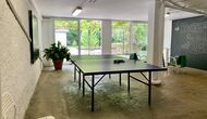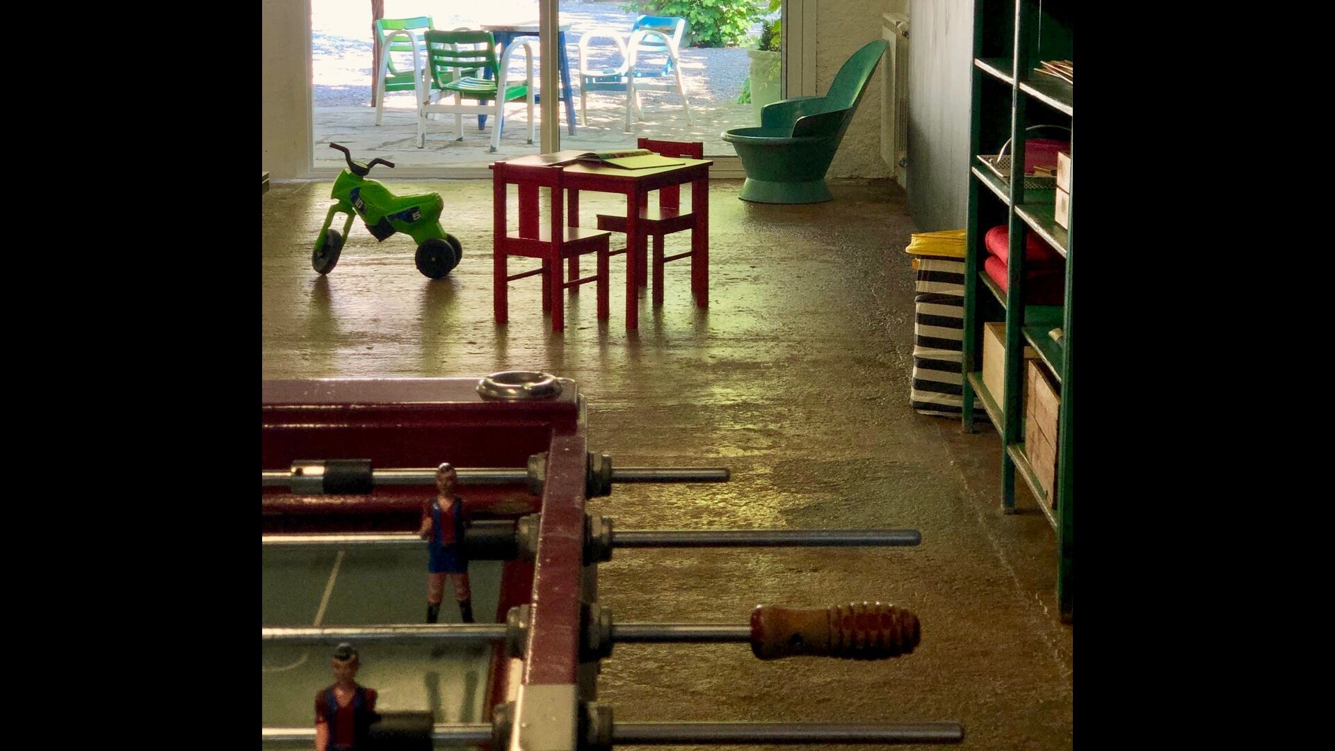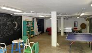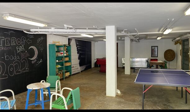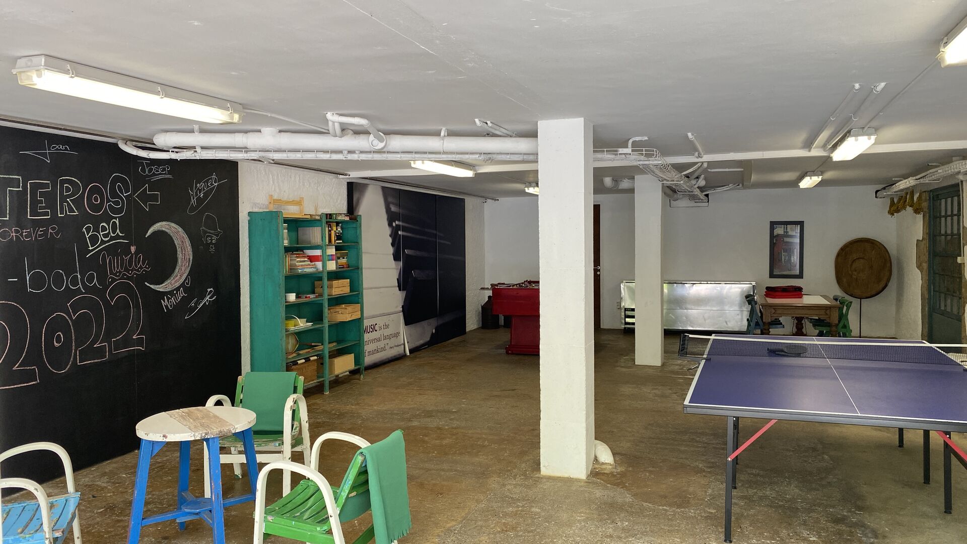 La planta baixa amb 200m2 , original rebedor, dues espaioses habitacions amb bany, una sala de jocs amb ping-pong, futbolí, gran pissarra, jocs per a tots i una singular taula amb rodes perquè la facis servir on vulguis.