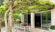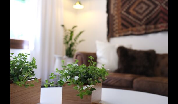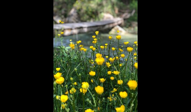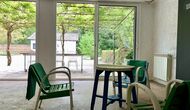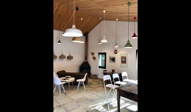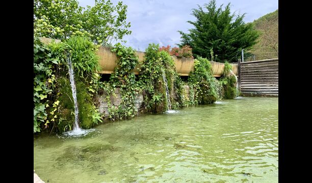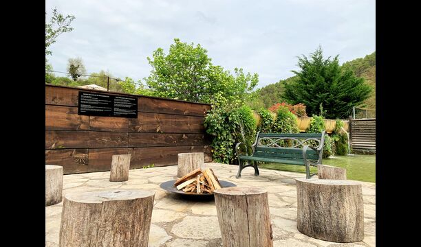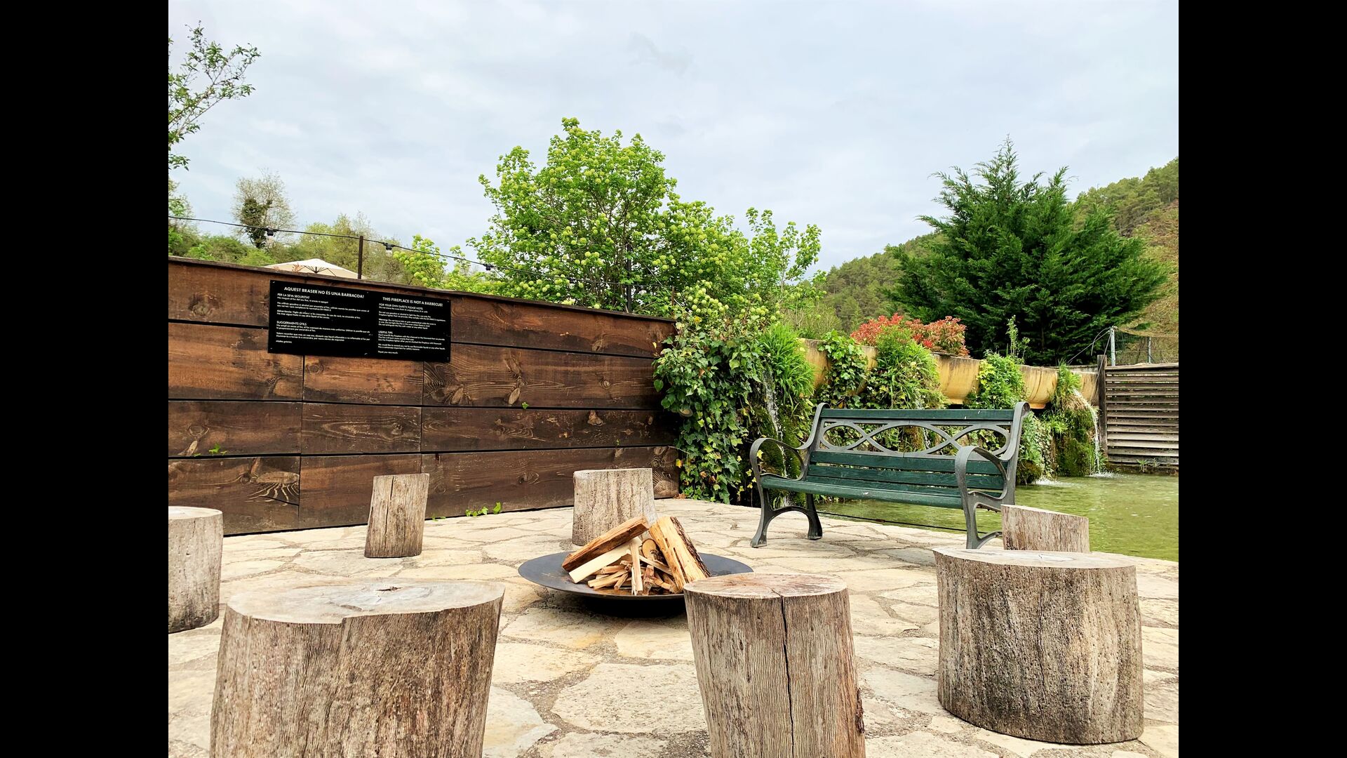 A l'exterior el llac artificial, tancat per a la seguretat dels més petits, convida a la relaxació amb sofàs per veure nedar a les truites o xerrar amb els teus.
