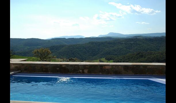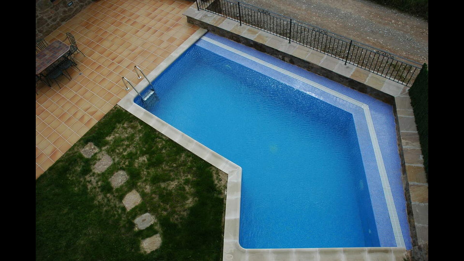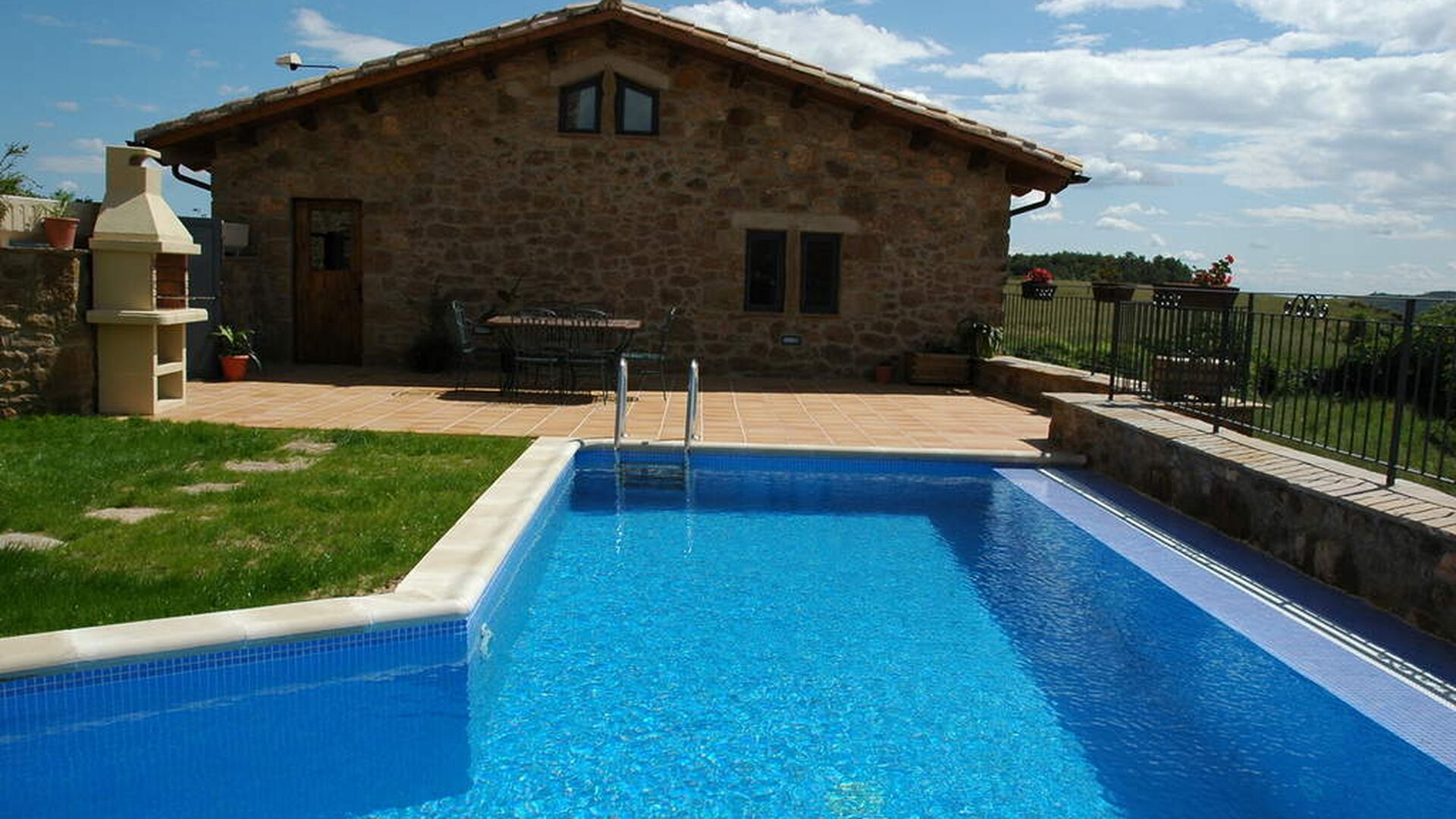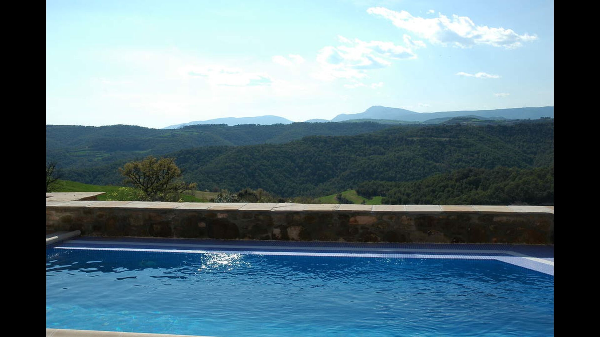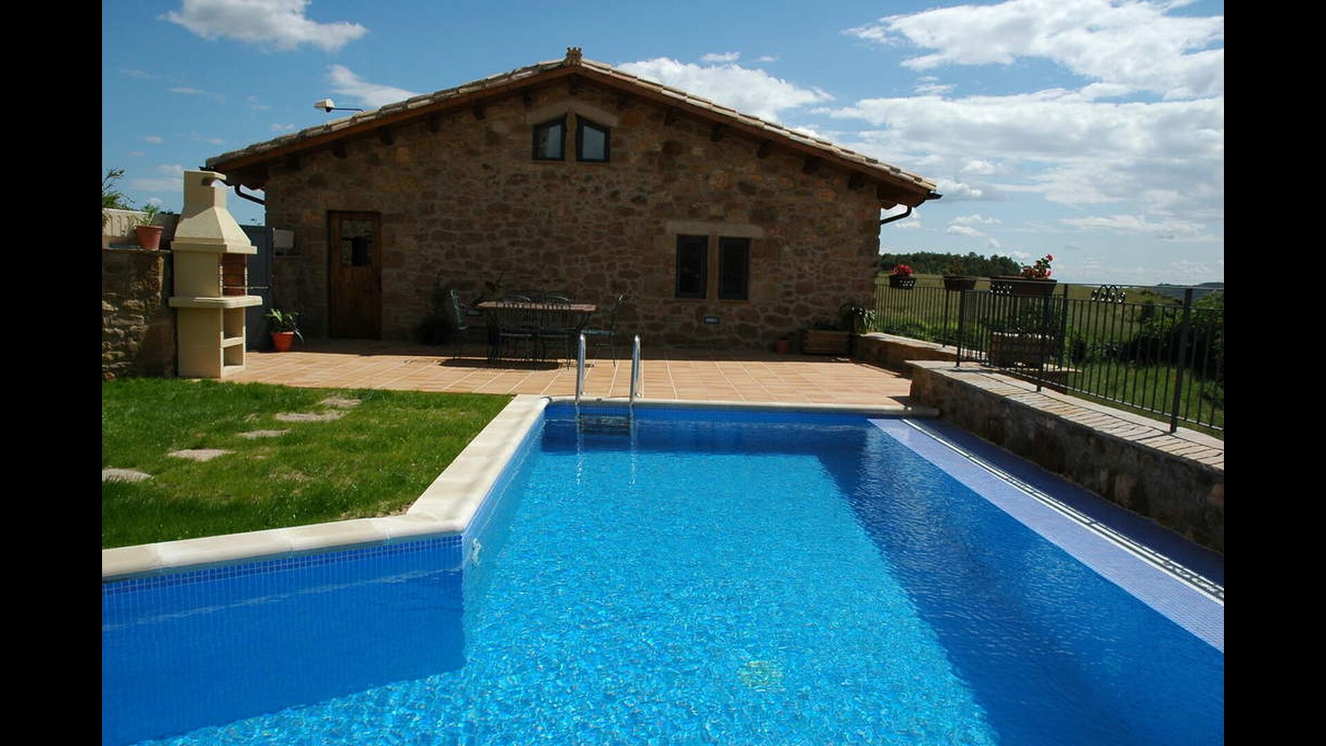 A l'exterior, la casa té una petita terrassa amb jardí i piscina. Aquesta zona, des d'on es té una excel·lent vista del paisatge, és perfecta per sopar a l'aire lliure en els càlids estius catalans. També hi ha una barbacoa i una taula de ping pong.
