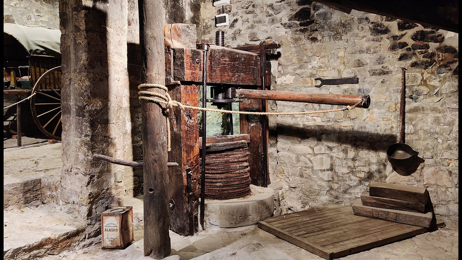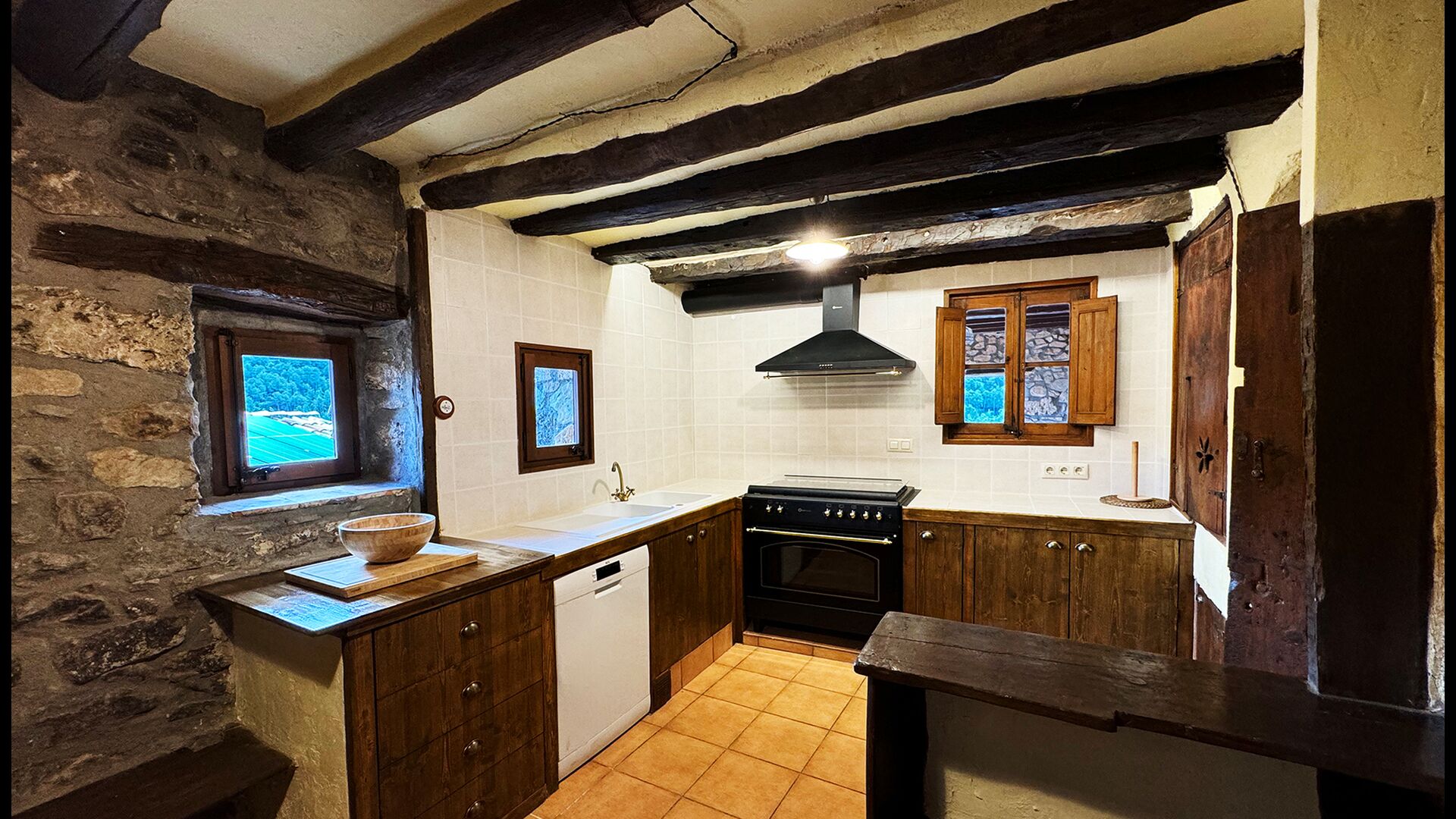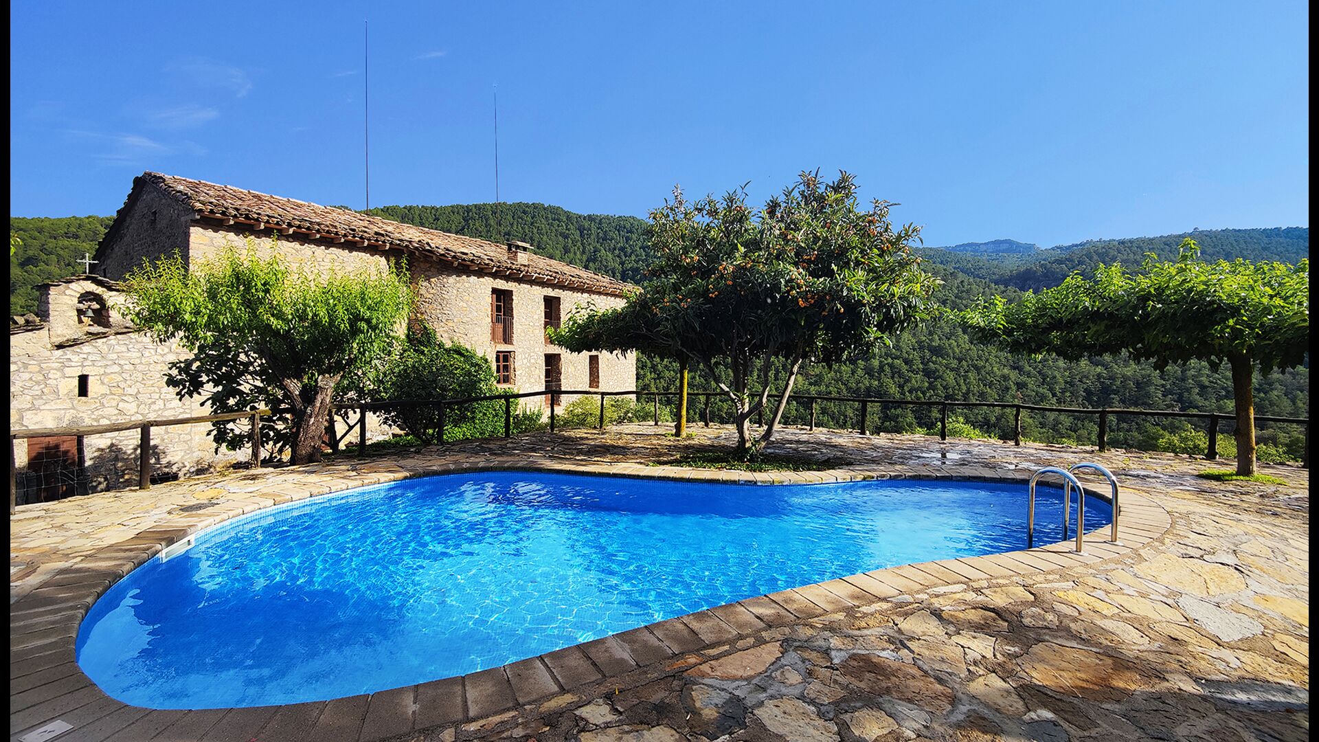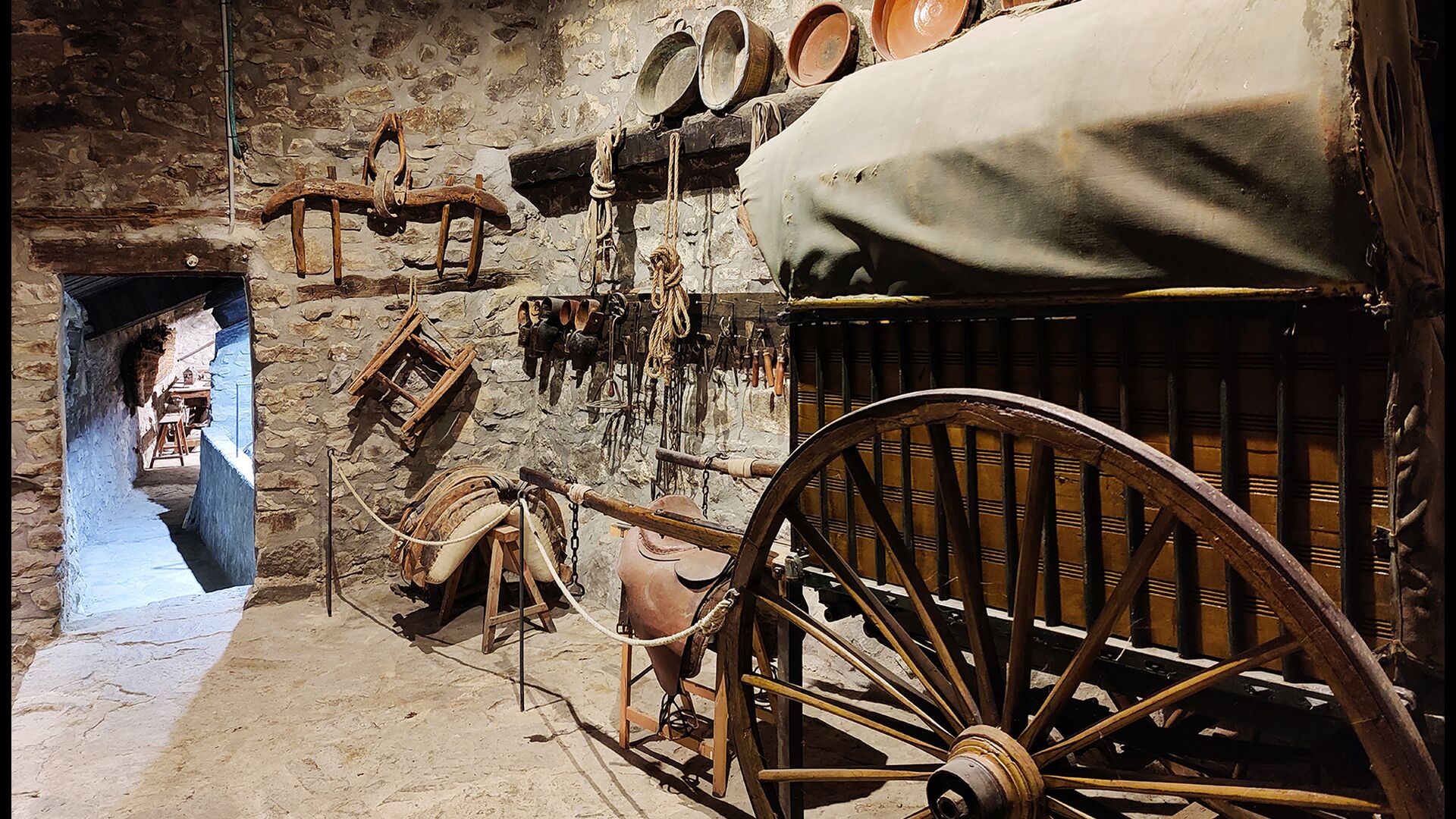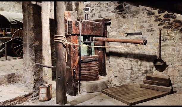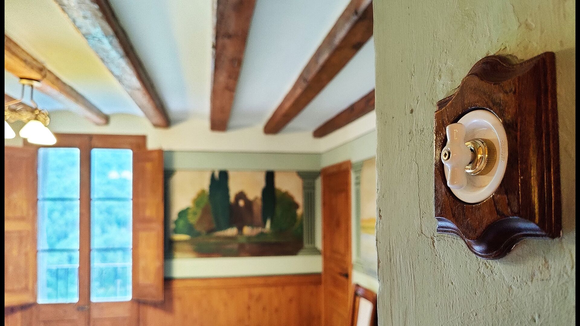 La propietat compta amb gruixuts murs de pedra, una sòlida porta d’entrada de fusta i fins i tot frescos del segle XVIII conservats, que reflecteixen la llarga història d’aquesta finca rural tradicional. Una petita capella i un museu connectats amb la casa mostren eines i espais que il·lustren la vida quotidiana d’una antiga explotació agrícola de muntanya autosuficient.