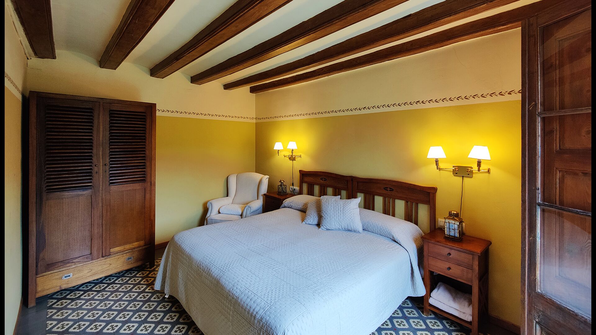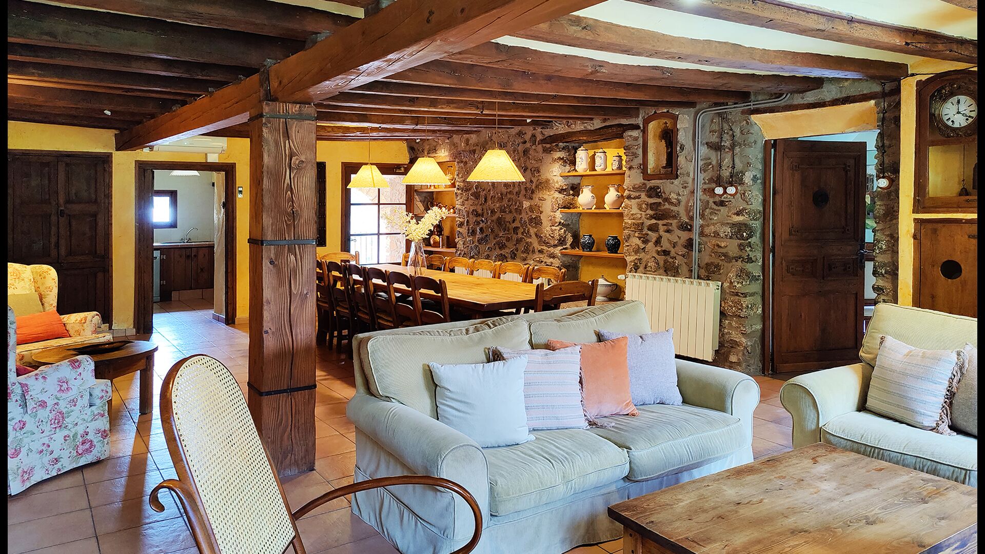 La casa disposa de 7 habitacions dobles i 10 banys, garantint comoditat i privacitat per a grups que viatgen junts. Algunes habitacions tenen bany privat, mentre que altres es troben a prop de banys compartits.