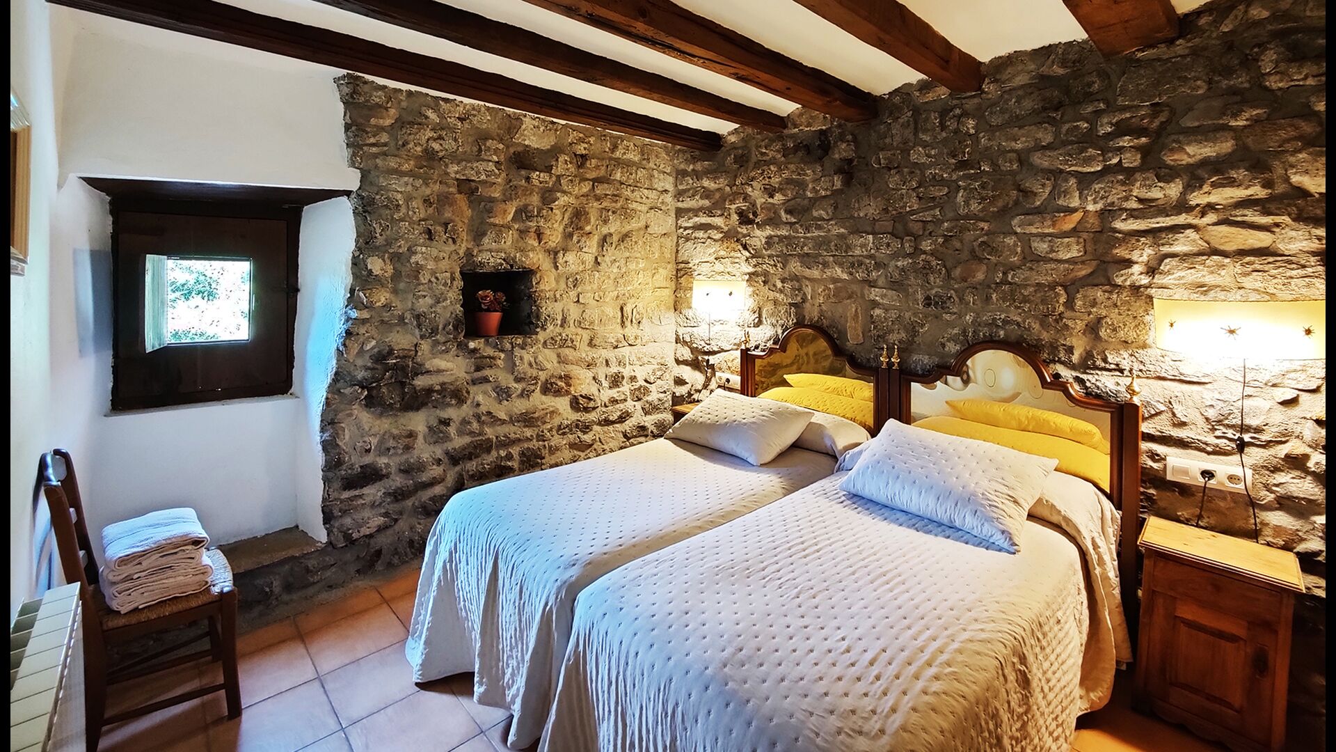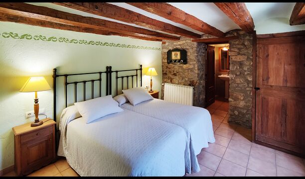 Can de Toriña pot allotjar fins a 14 persones, amb la possibilitat d’afegir dos llits supletoris per a infants. La casa disposa de set habitacions dobles confortables, tres de les quals són àmplies suites amb bany privat.