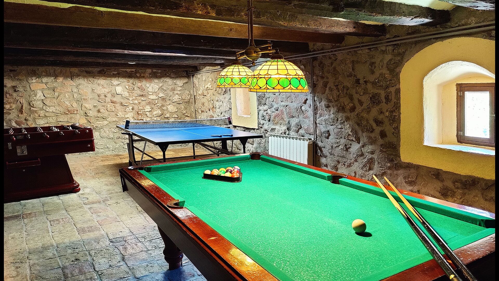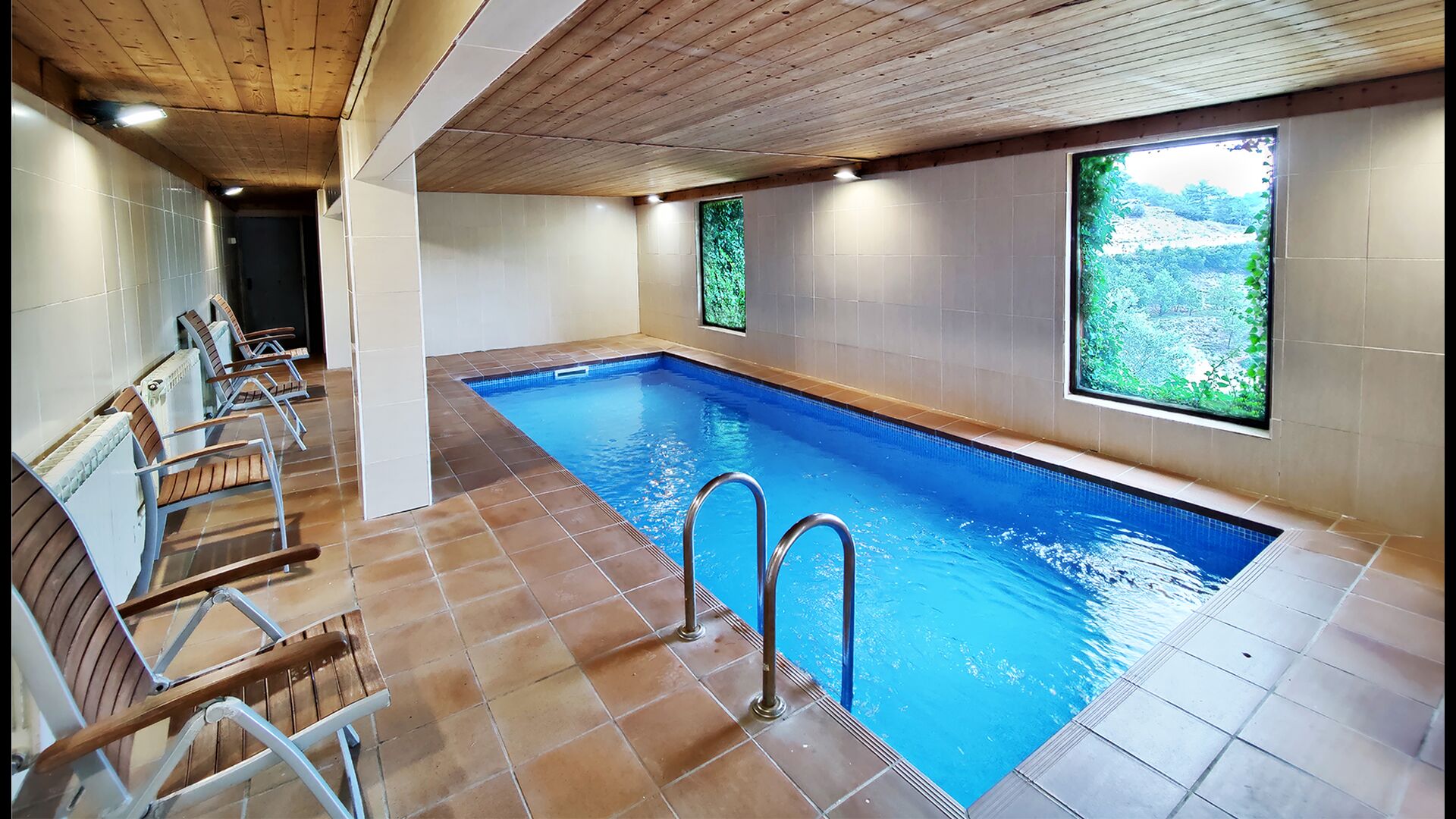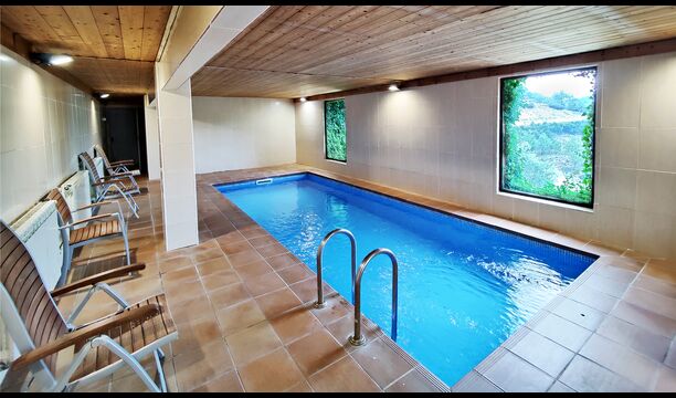 La propietat inclou una piscina privada exterior amb gandules i un jardí amb gronxadors per als nens. En un edifici adjacent els hostes també trobaran una piscina interior climatitzada i una terrassa coberta amb barbacoa, cosa que permet nedar i menjar a l’aire lliure durant tot l’any.