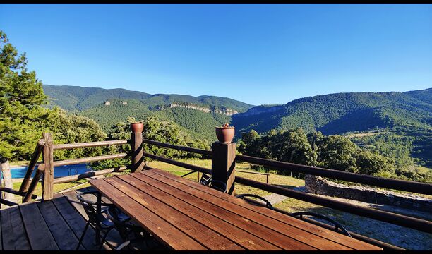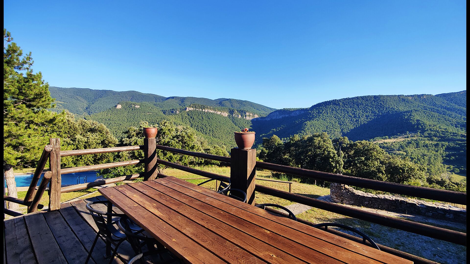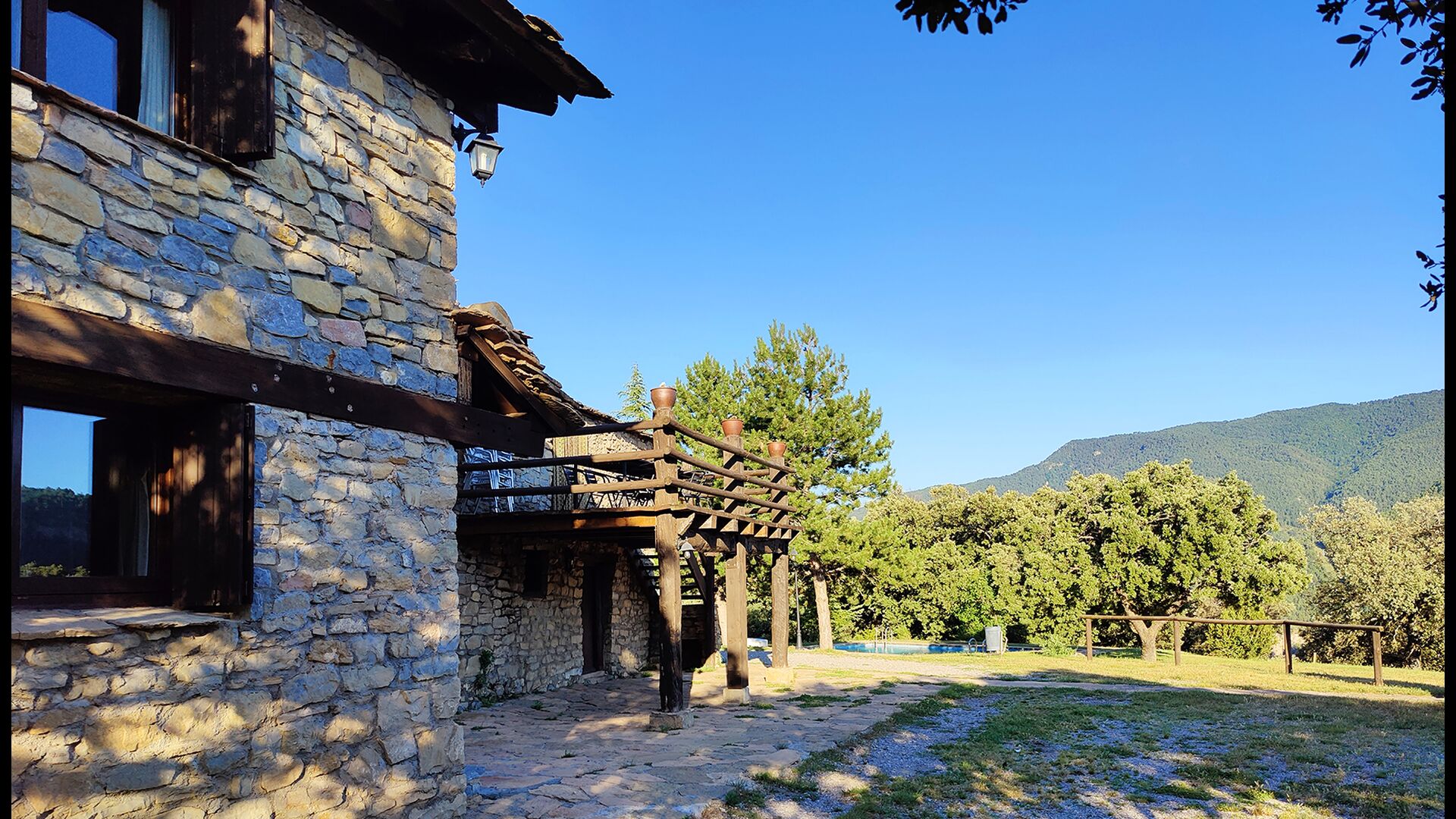 La propietat combina l’arquitectura tradicional pirinenca —murs de pedra, elements de fusta i materials naturals— amb el confort modern. Els amplis espais comuns i les terrasses exteriors permeten gaudir dels llargs dies d’estiu i de les espectaculars vistes panoràmiques de les muntanyes que envolten la casa.
