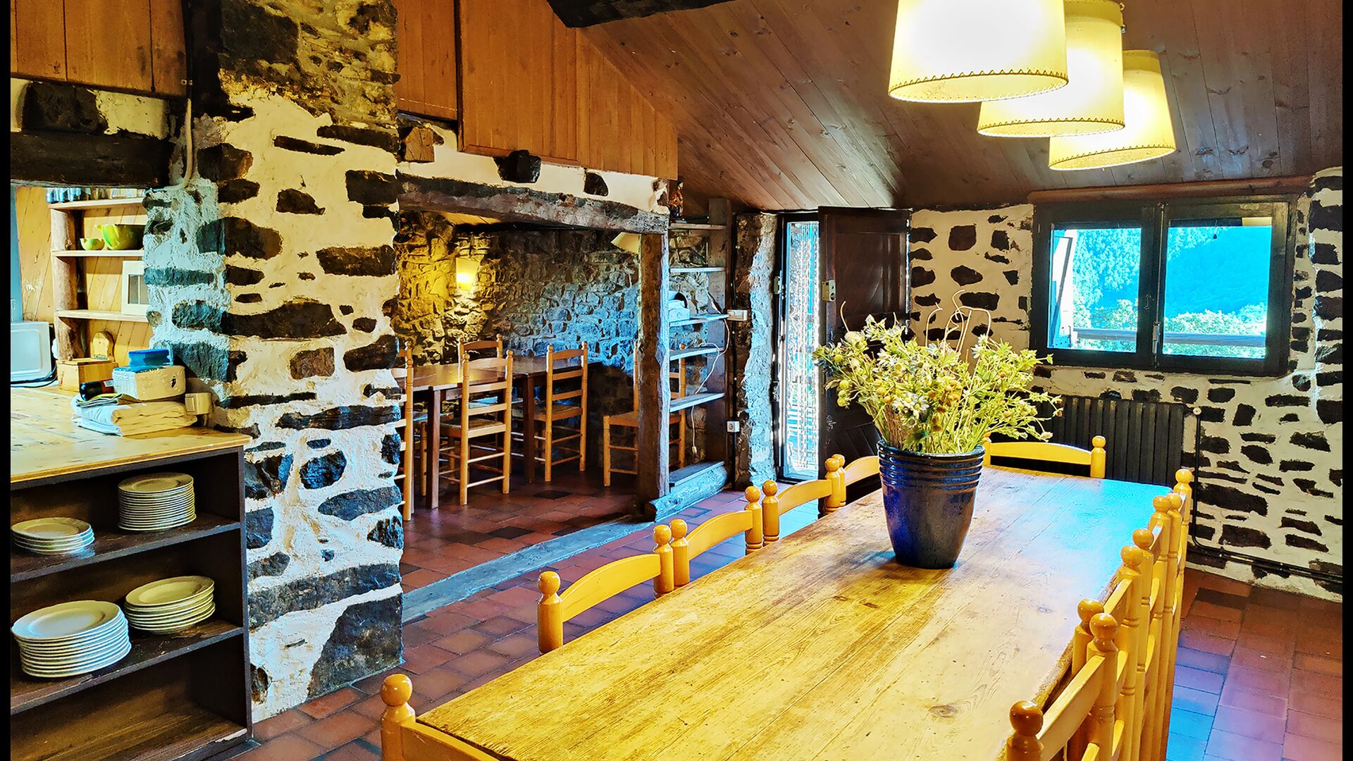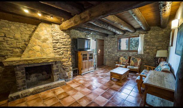 La casa ofereix espais còmodes per relaxar-se i compartir moments junts, incloent sales d’estar acollidores i àmplies zones de menjador. Les llars de foc creen una atmosfera càlida, mentre que les terrasses i espais exteriors conviden a gaudir de la natura i del paisatge de muntanya.