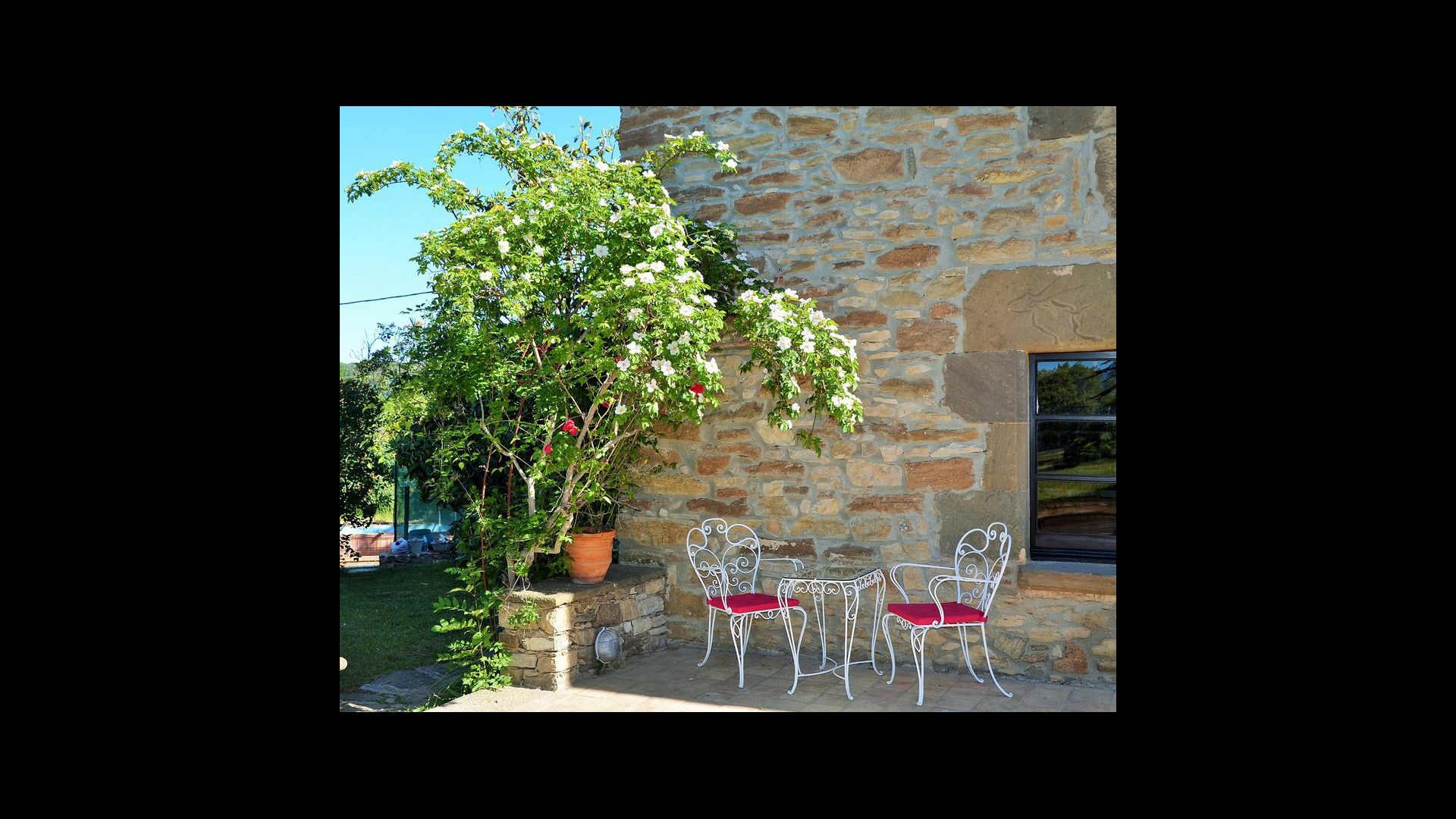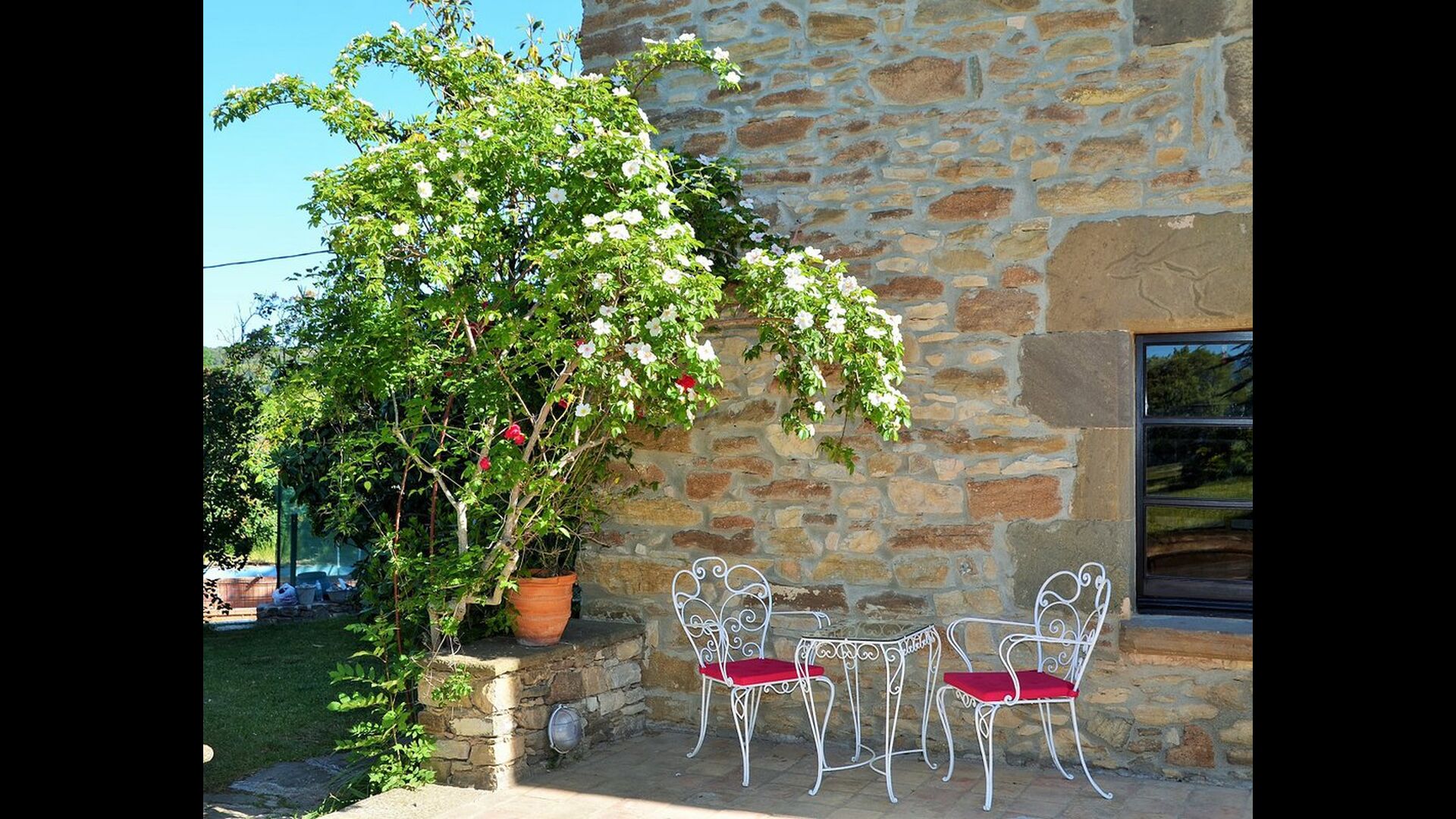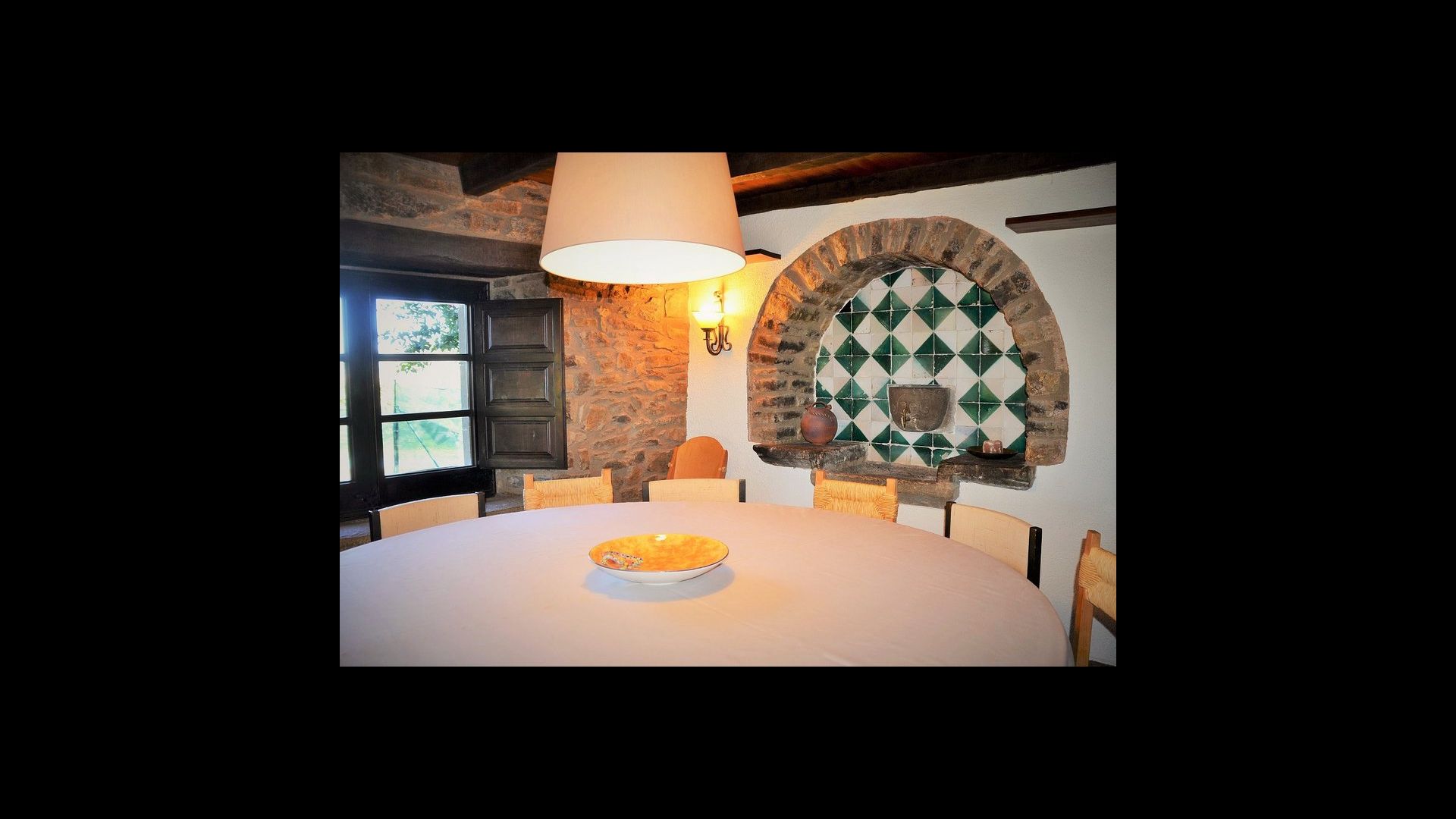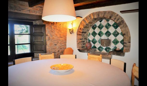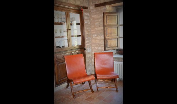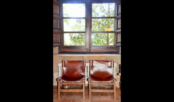 It is easy to imagine, how the father of the present owner, who was a famous Catalan author and philosopher got his inspiration. Inside the house, the careful restoration has preserved a touch of this, especially the cosy sitting room with beautiful chairs in the ground floor and the very large master bedroom on the first floor, where the desk with garden and valley view is still there.