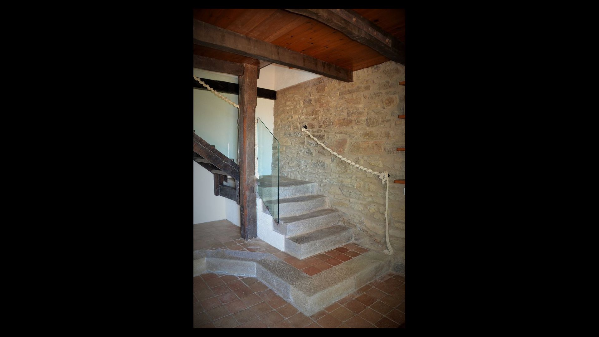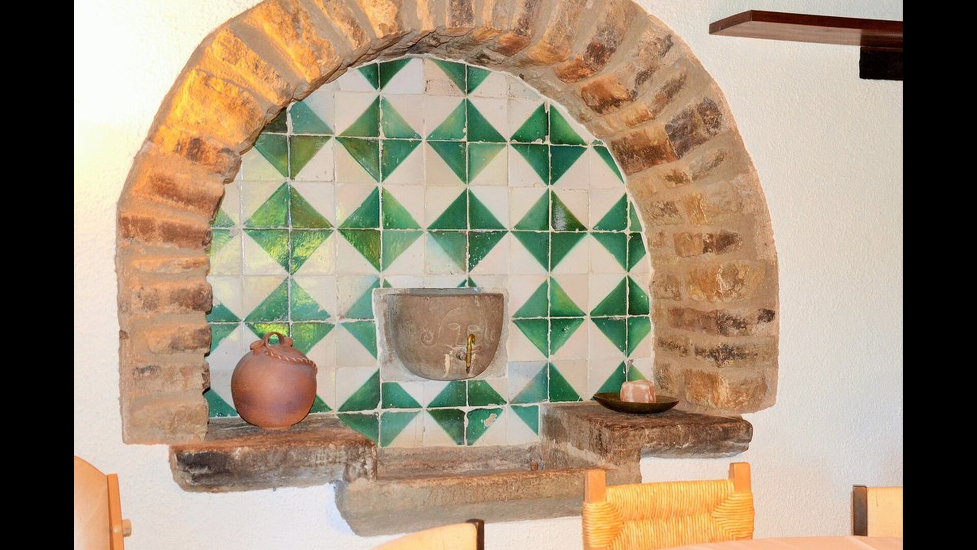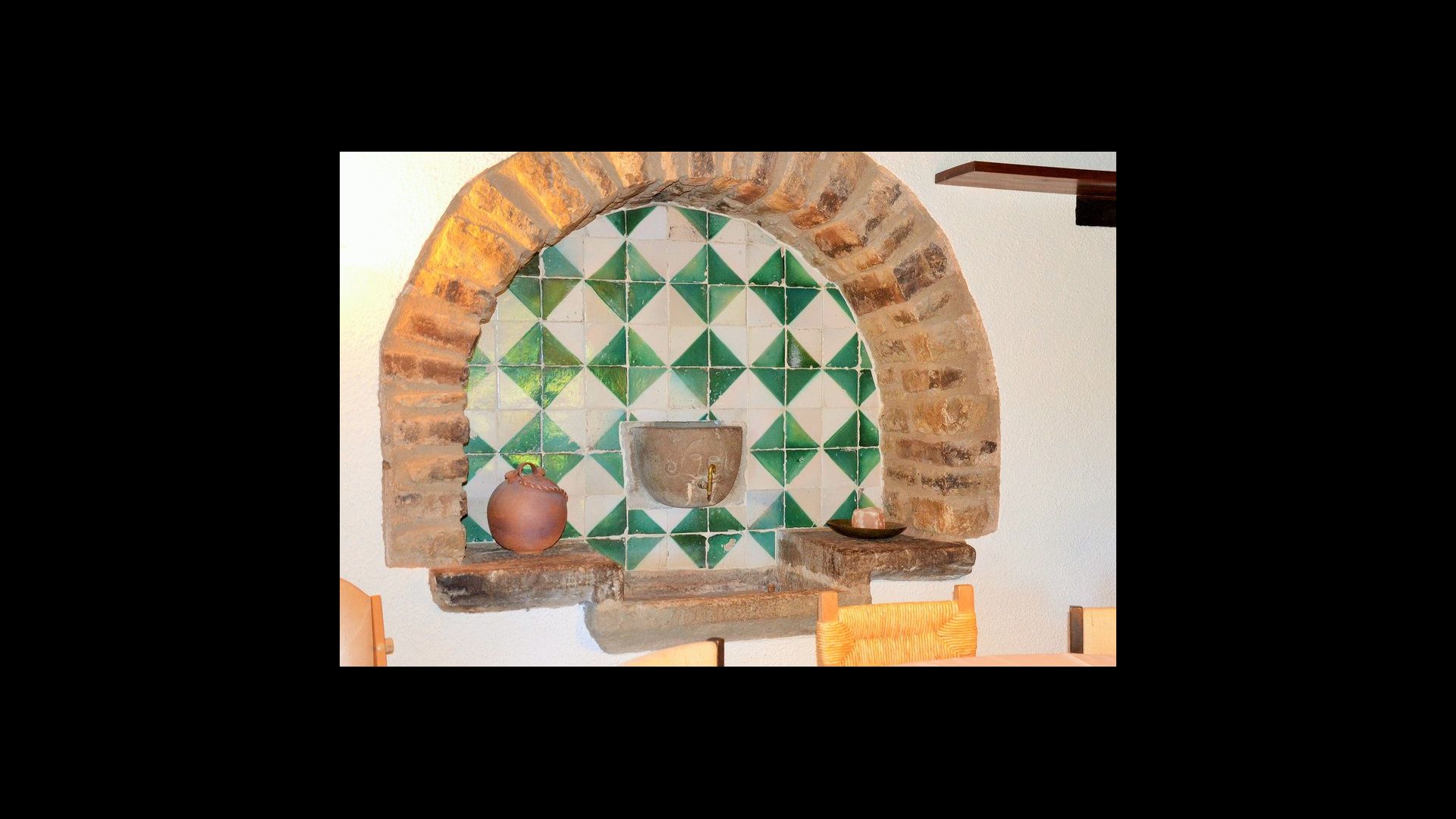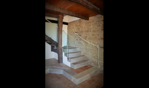 It is easy to imagine, how the father of the present owner, who was a famous Catalan author and philosopher got his inspiration. Inside the house, the careful restoration has preserved a touch of this, especially the cosy sitting room with beautiful chairs in the ground floor and the very large master bedroom on the first floor, where the desk with garden and valley view is still there.