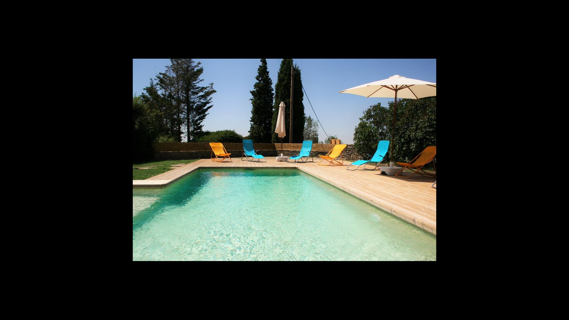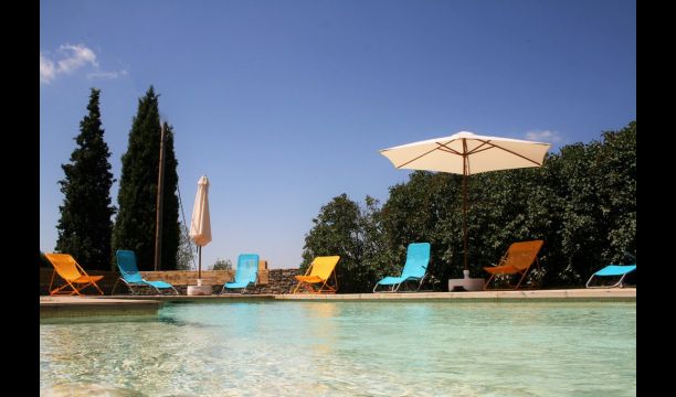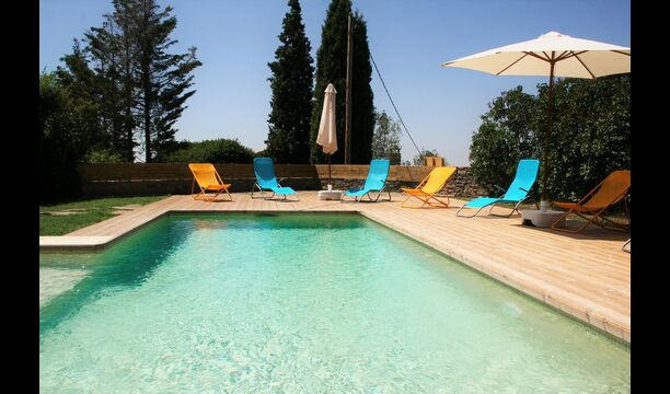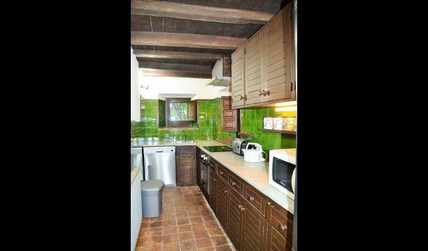 Outside, the pool area is the perfect base in the warm Catalan summer. It is designed to welcome small children, as an angle has been attached with steps and low water for small children. The main part is 8 x 4 meters and perfect for a small swim. The wooden deck with sun loungers is perfect for sunbathing, or you can choose a shady corner if it gets too hot.