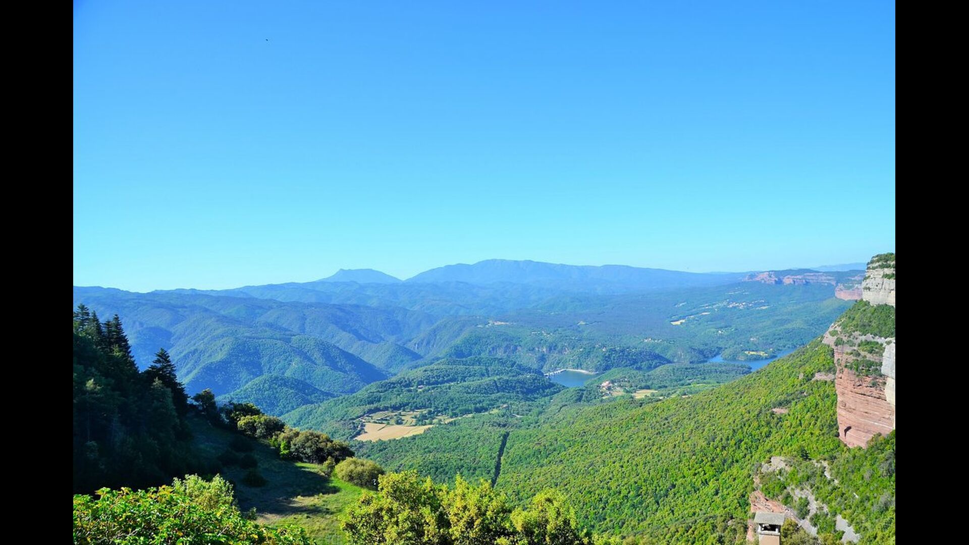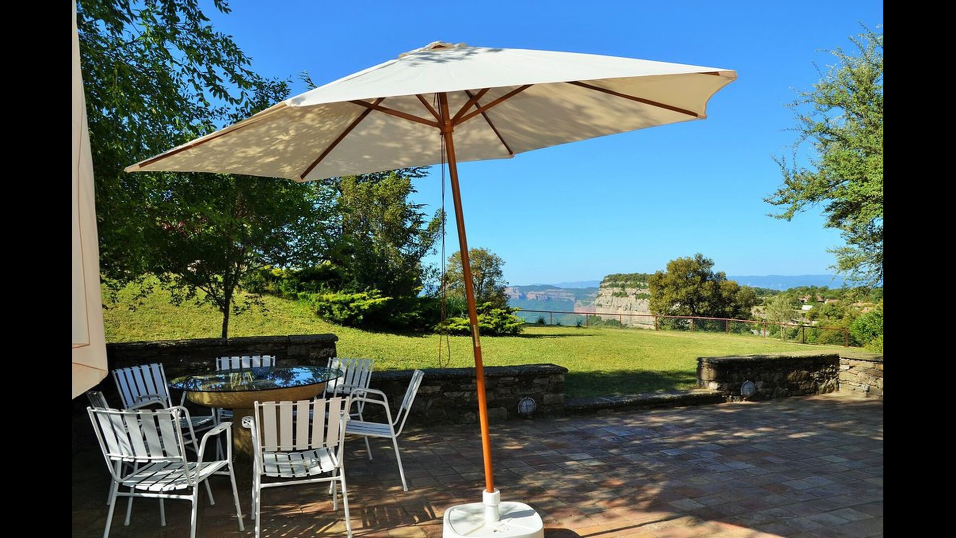 Mas Felér Vista is a house with the most beautiful view we have ever seen. At the end of the very big lawn, you have an incredible panoramic view over the valley with the lake of Sau in the bottom and to the right, the village on the top of the hill as the house. All this is surrounded by beautiful and colourful mountain formation, and if you are lucky, you can see soaring eagle.